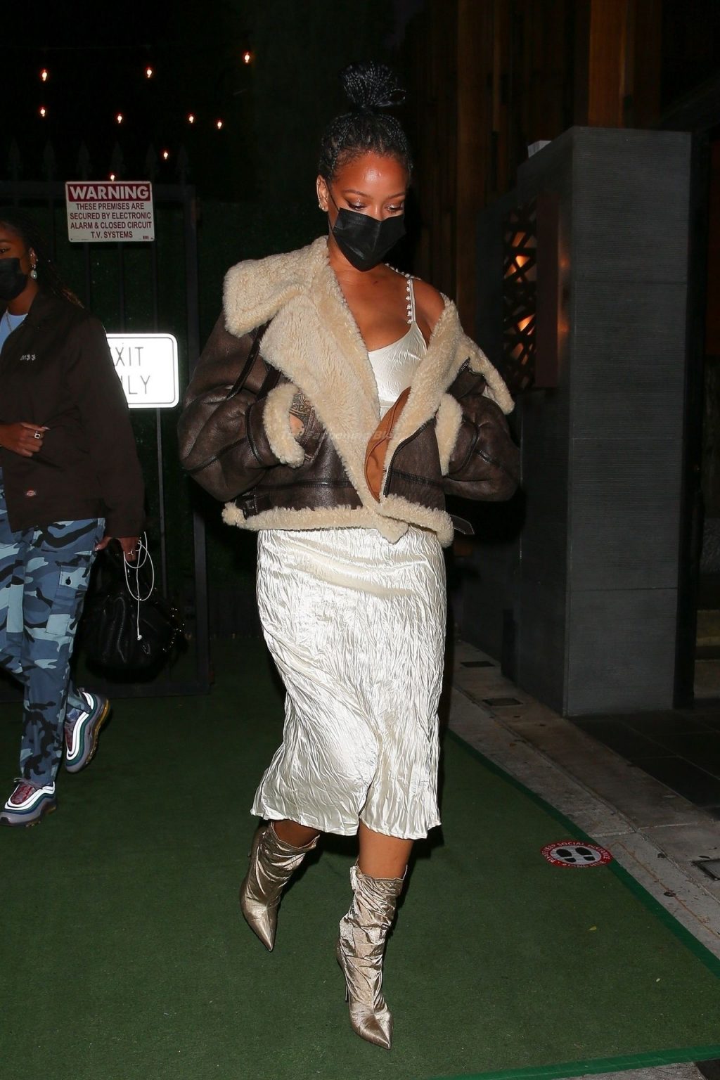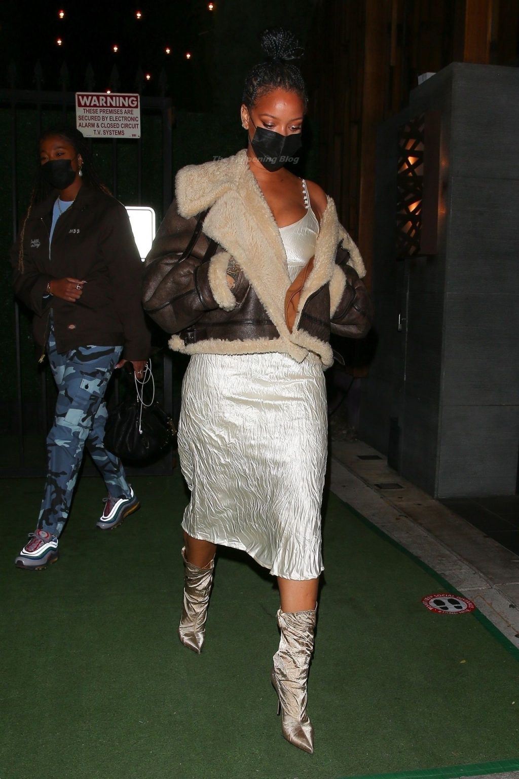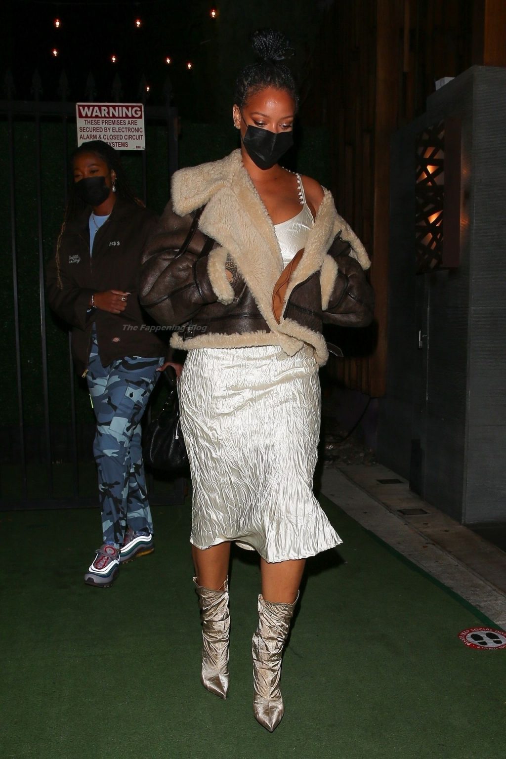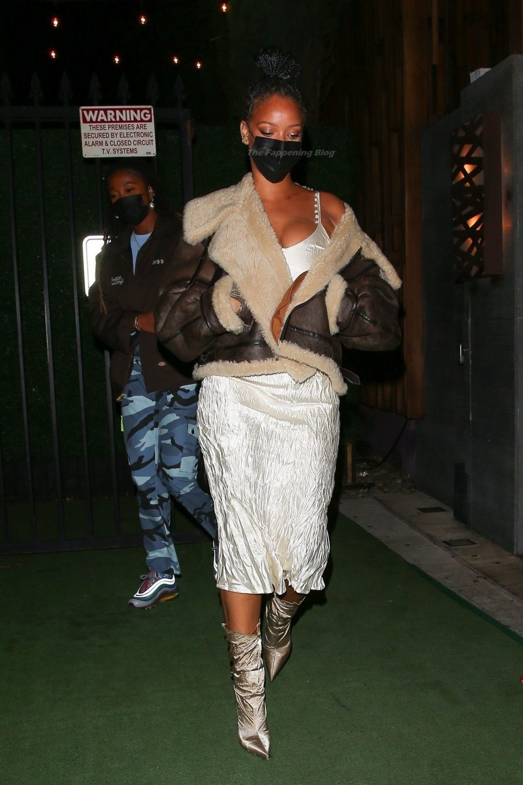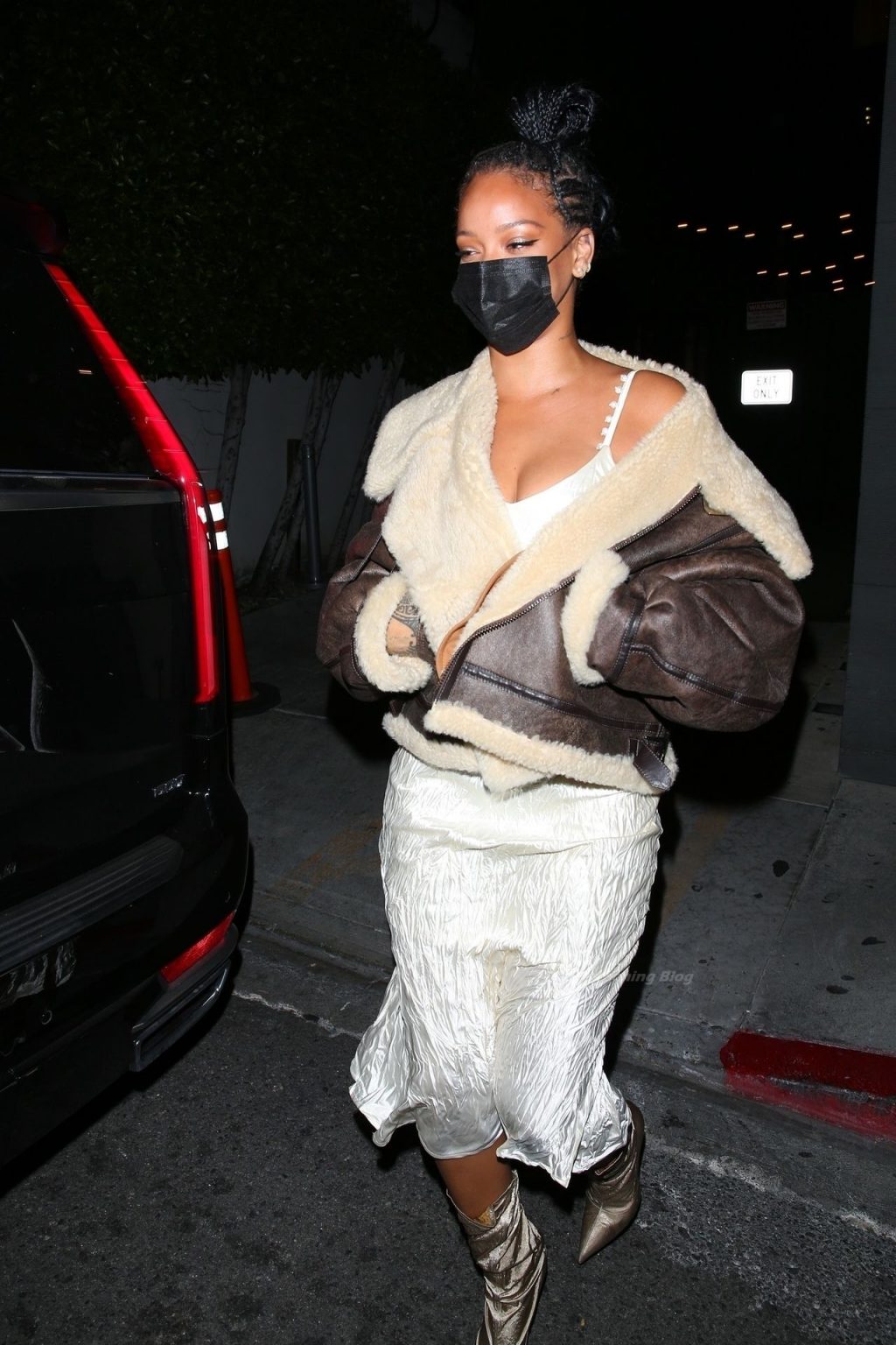 Певица и звезда The Fappening Рианна была замечена, покидая ресторан Nobu в Вест-Голливуде после ужина в белом платье и ботинках, также позируя и делая фотографии через плечо.