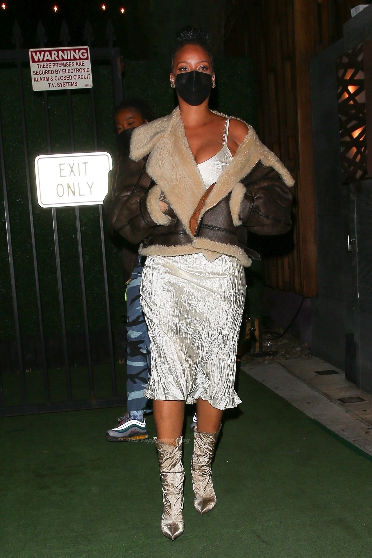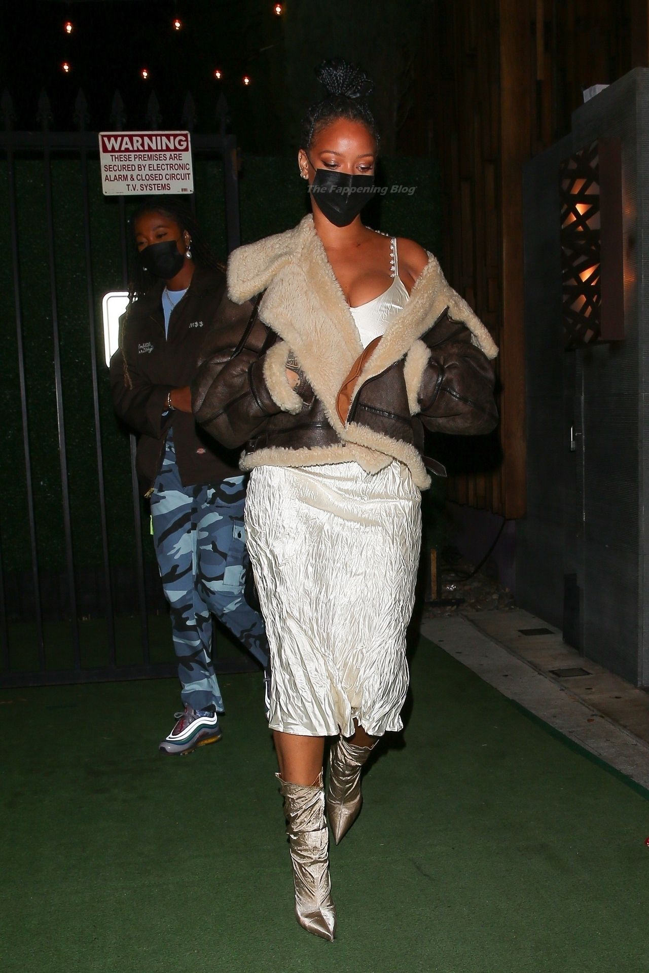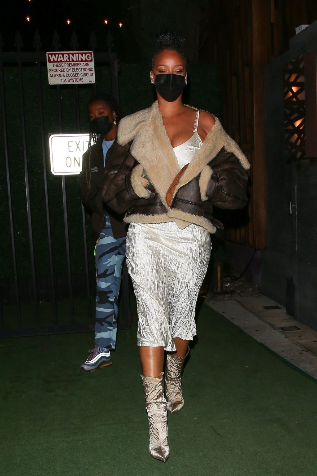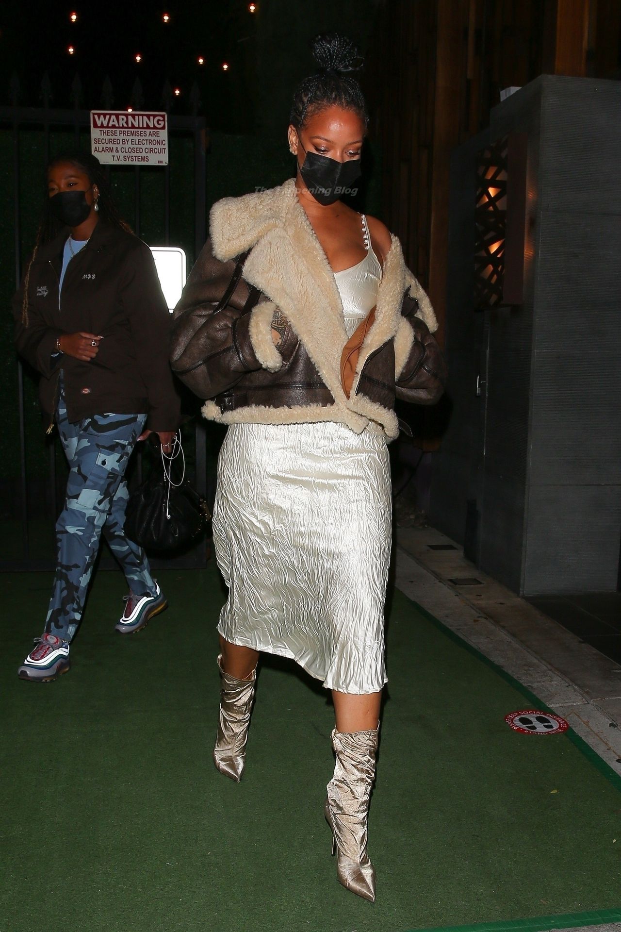 Певица и звезда The Fappening Рианна была замечена, покидая ресторан Nobu в Вест-Голливуде после ужина в белом платье и ботинках, также позируя и делая фотографии через плечо.