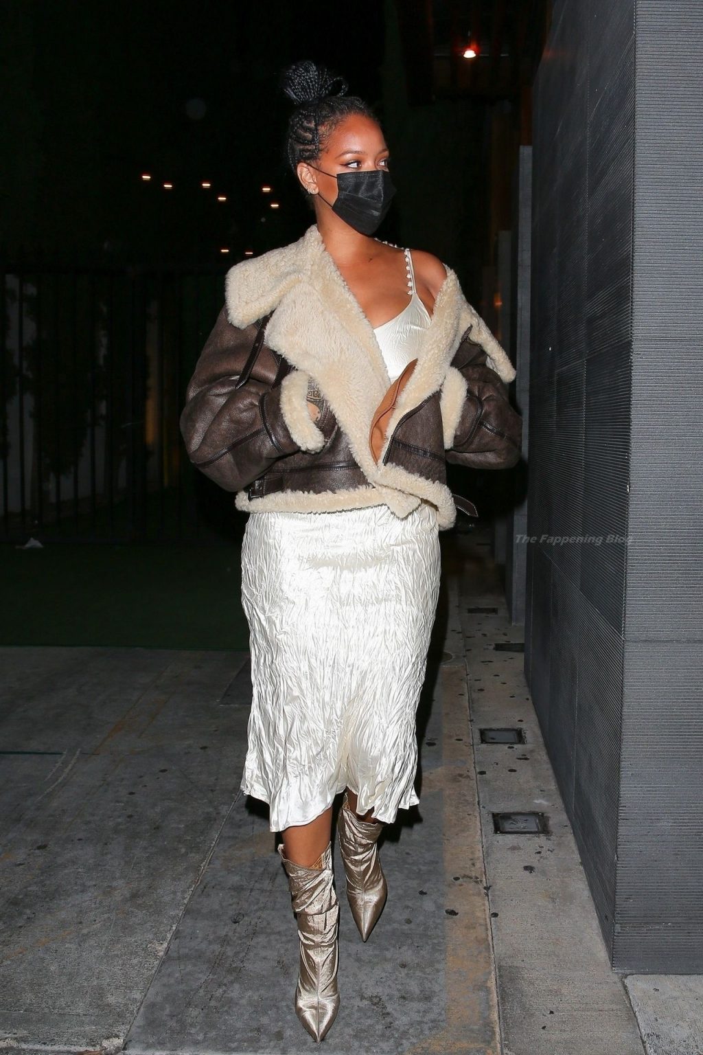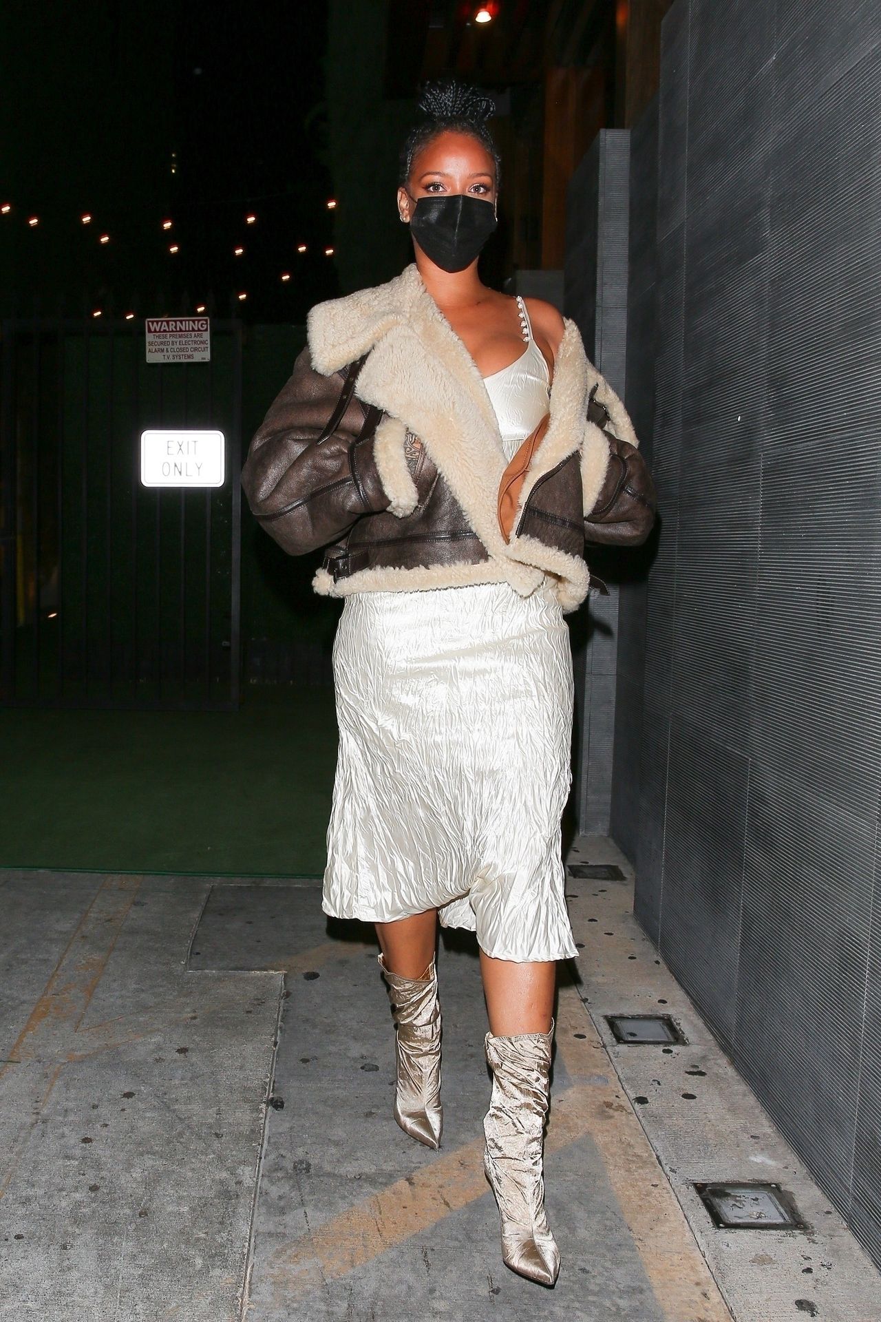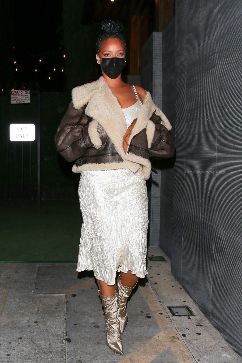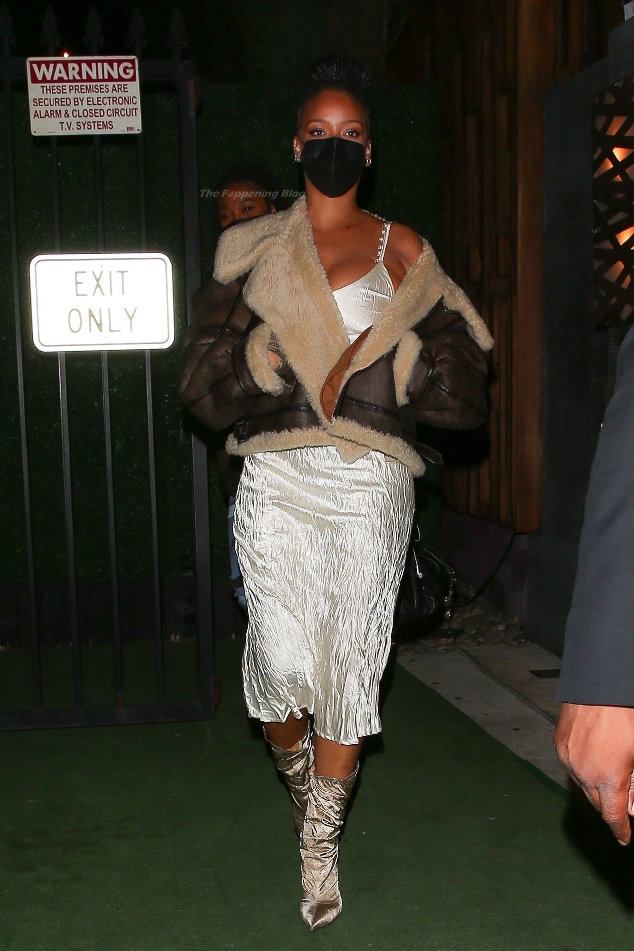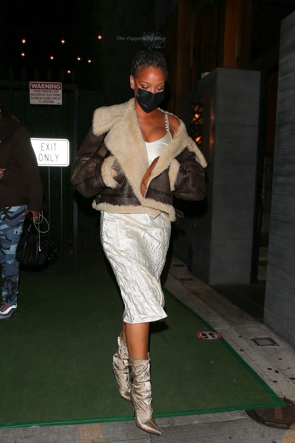 Певица и звезда The Fappening Рианна была замечена, покидая ресторан Nobu в Вест-Голливуде после ужина в белом платье и ботинках, также позируя и делая фотографии через плечо.