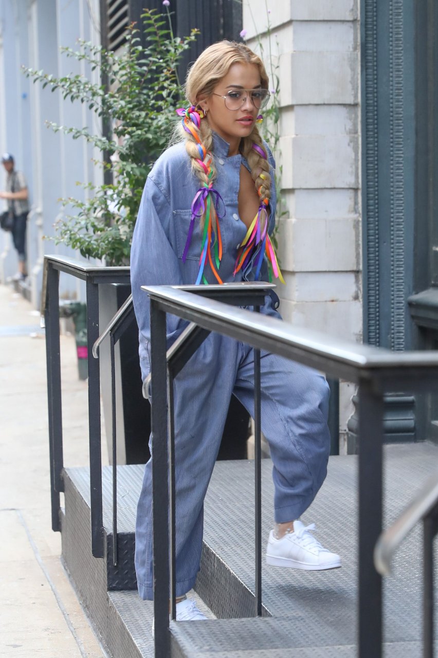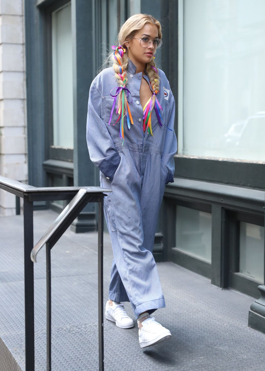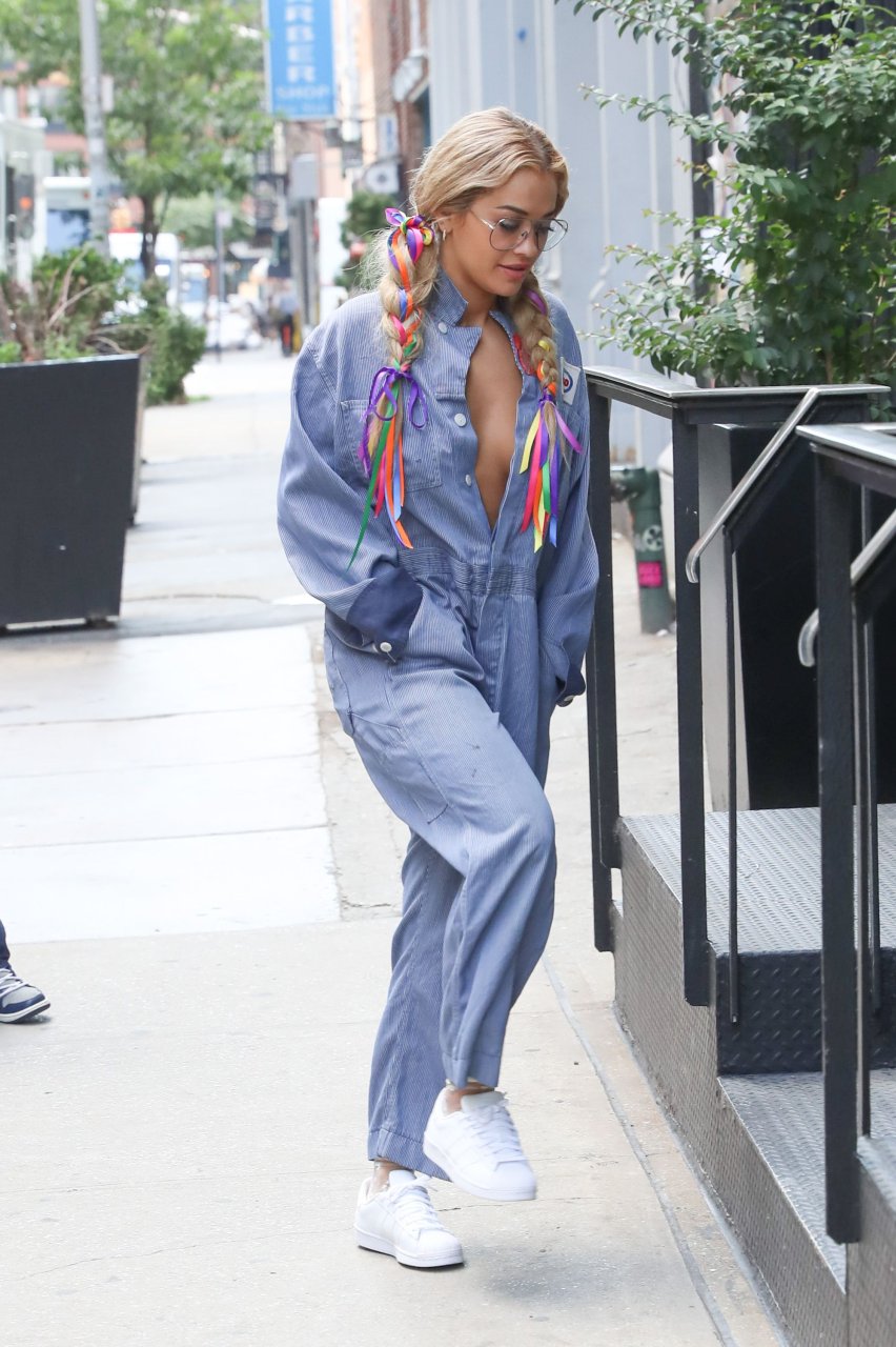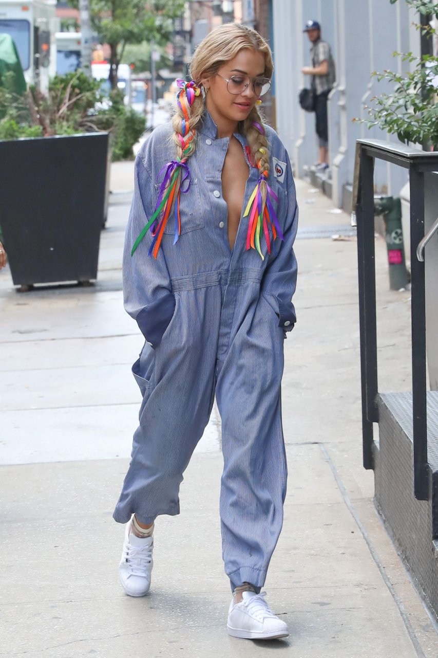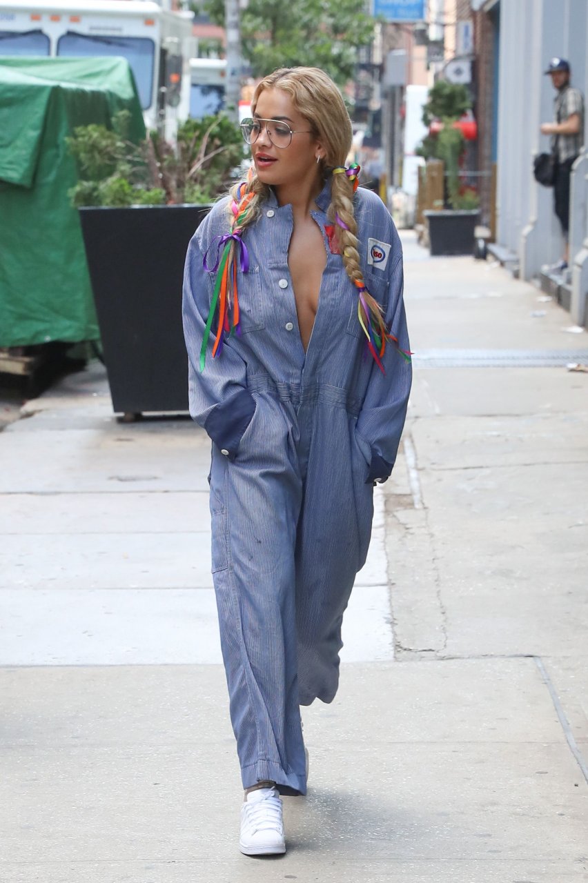 Rita Ora замечена без бюстгальтера в комбинезоне во время прогулки по Нью-Йорку, 17.07.2016. Как Gadget Hackwrench! Рита Ора — британская певица, автор песен и актриса. Возраст: 25 лет (26 ноября 1990).