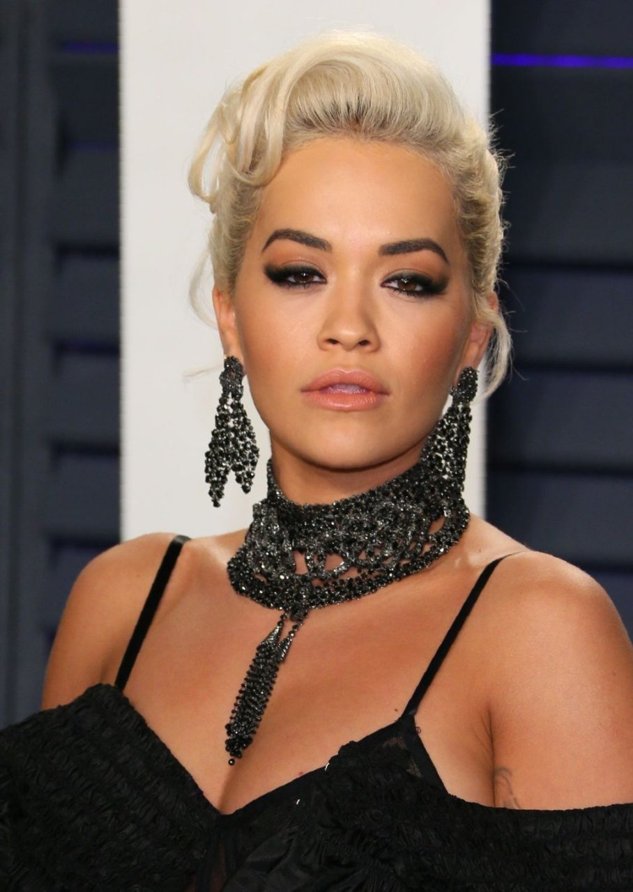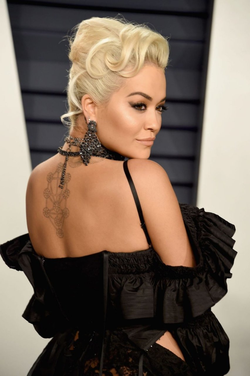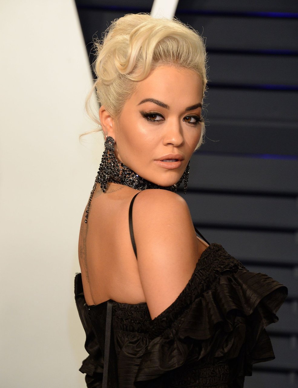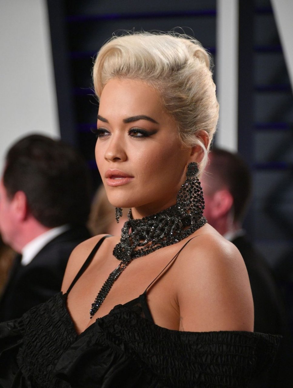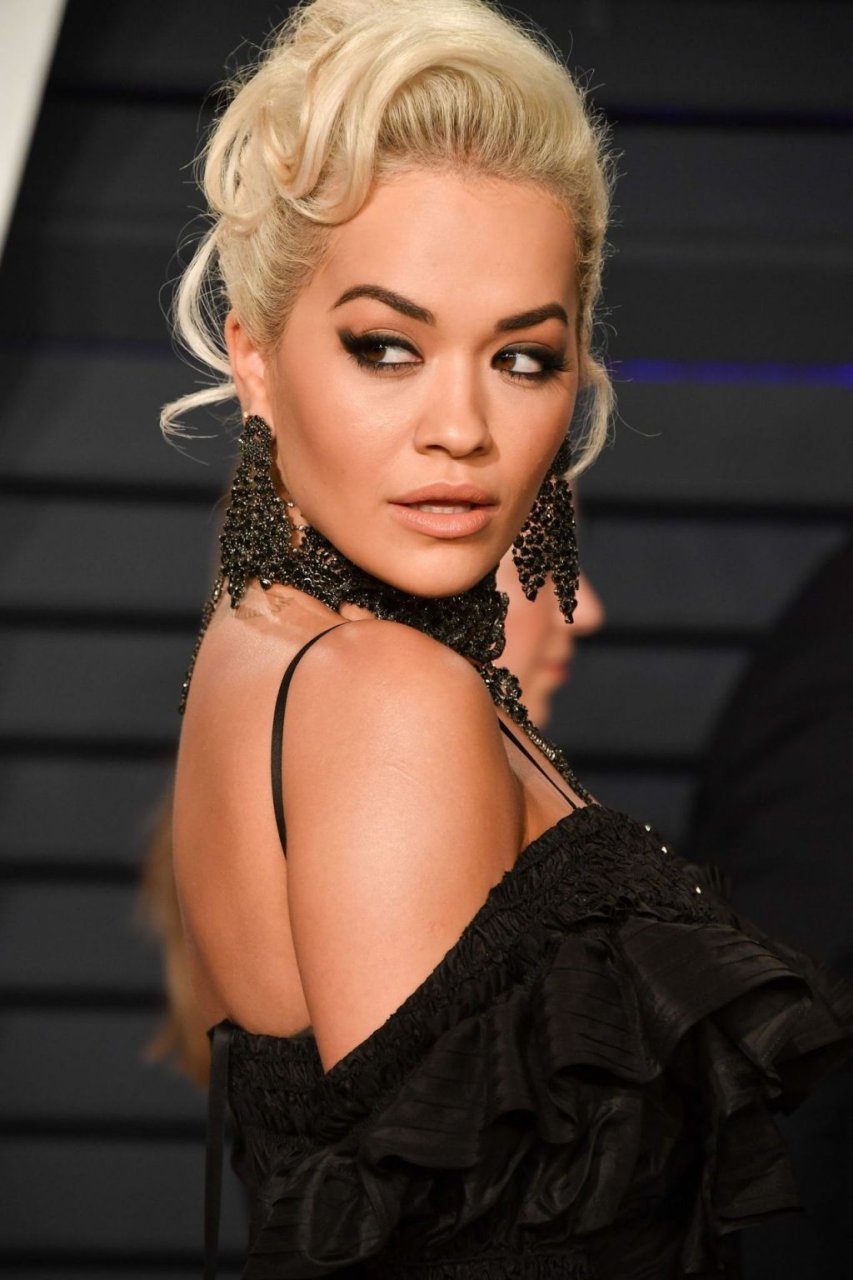 Суперзвезда Рита Ора демонстрирует декольте и ягодицы в черном платье с кружевным нижним бельем на вечеринке Vanity Fair Oscar 2019 в Беверли-Хиллз, 24.02.2019.