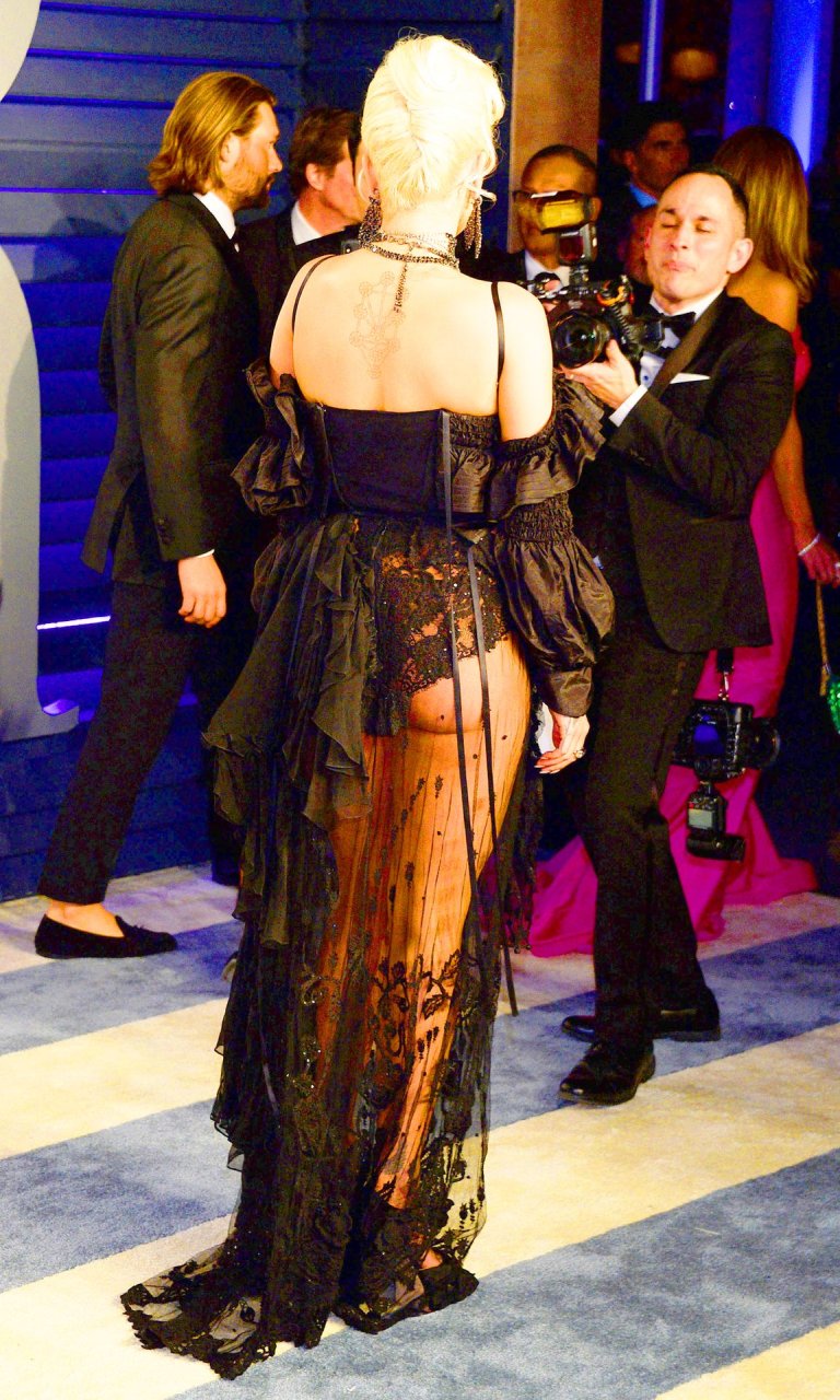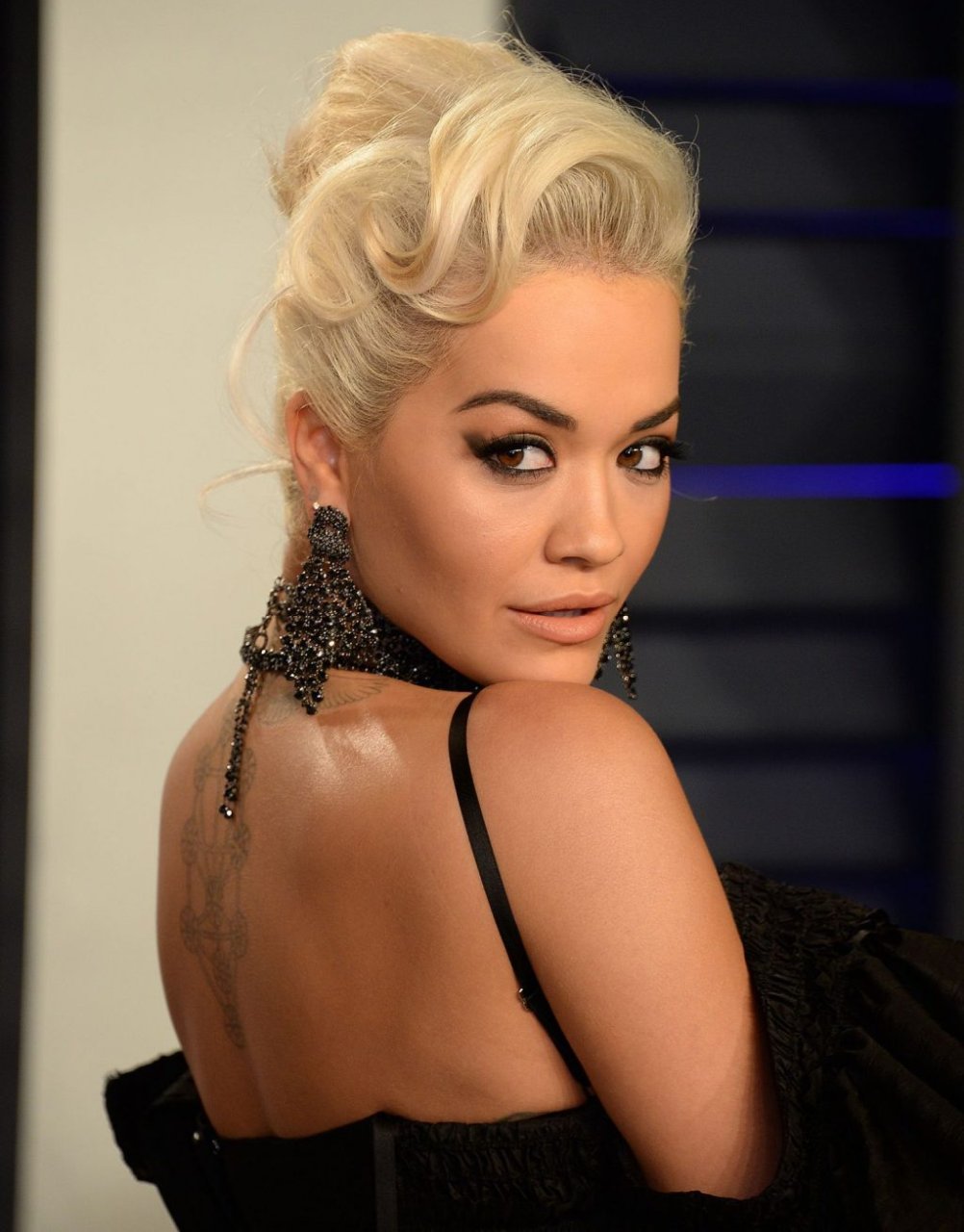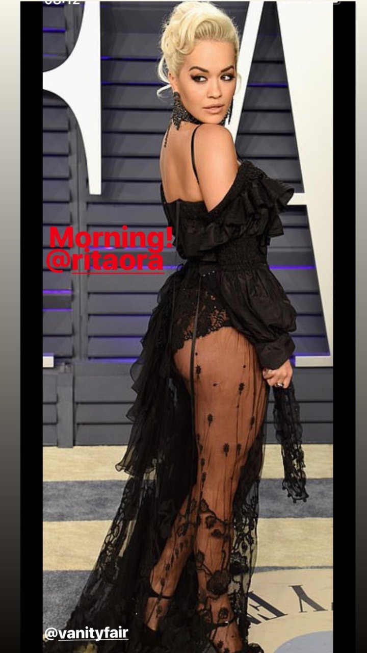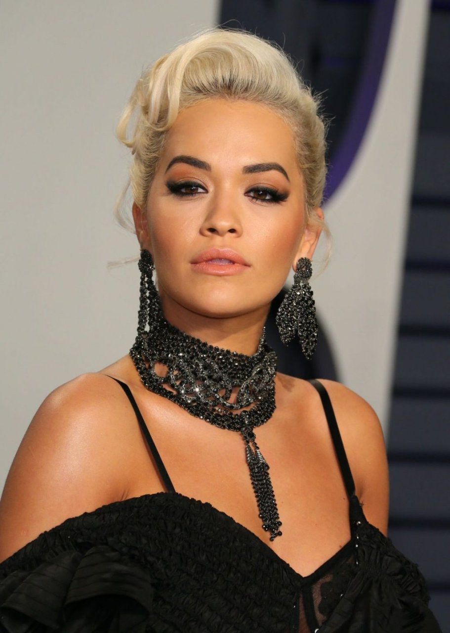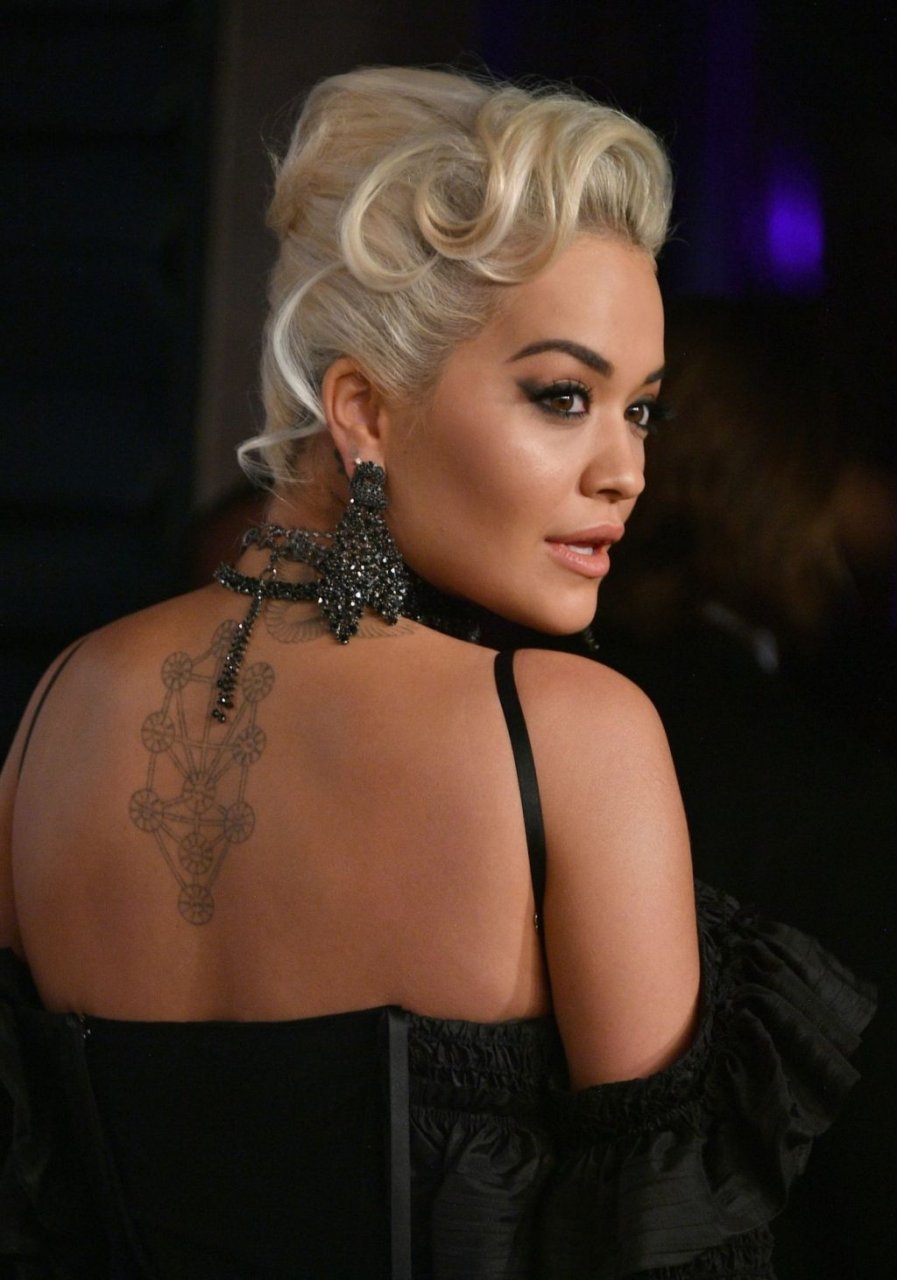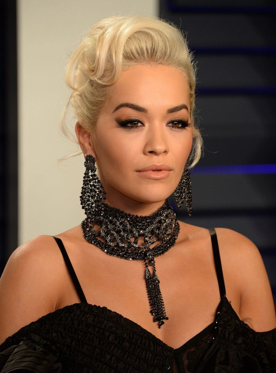 Суперзвезда Рита Ора демонстрирует декольте и ягодицы в черном платье с кружевным нижним бельем на вечеринке Vanity Fair Oscar 2019 в Беверли-Хиллз, 24.02.2019.