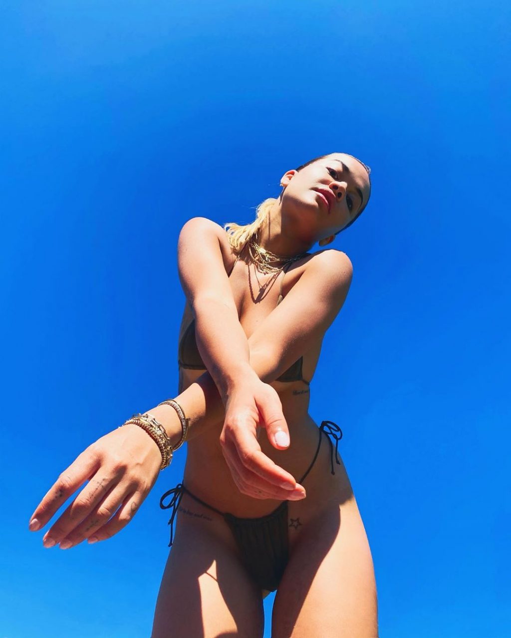 Певица Рита Ора демонстрирует свои груди, позируя в крошечном бикини Inamorata для своих 16,2 млн подписчиков в Instagram, 19.05.2020.