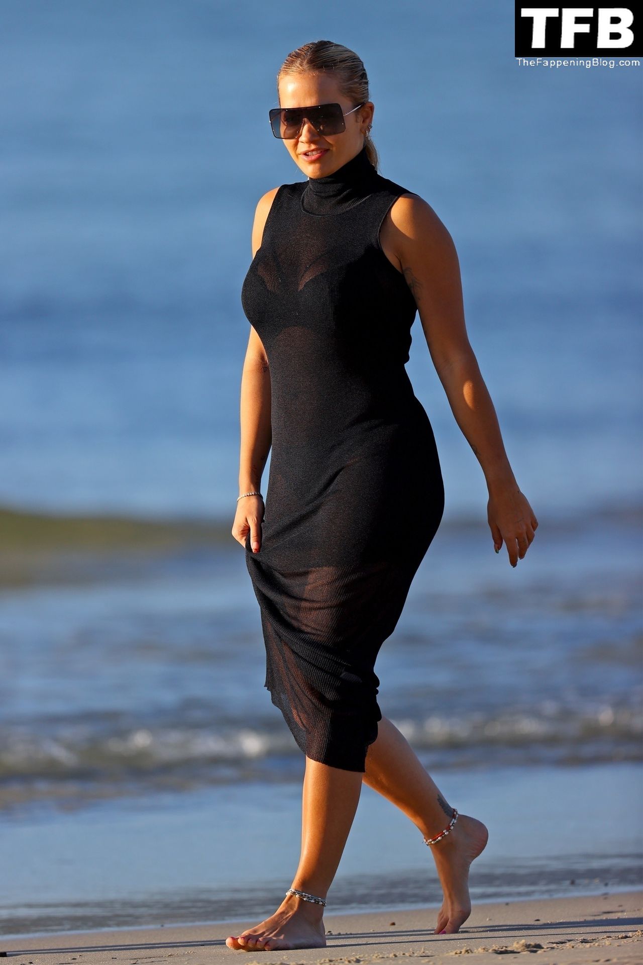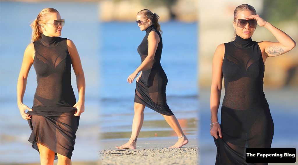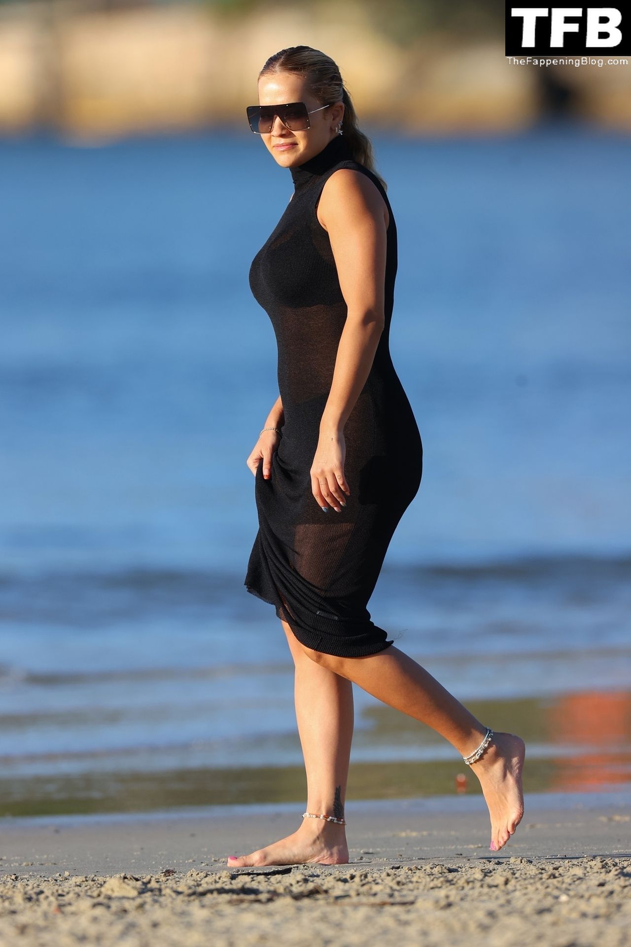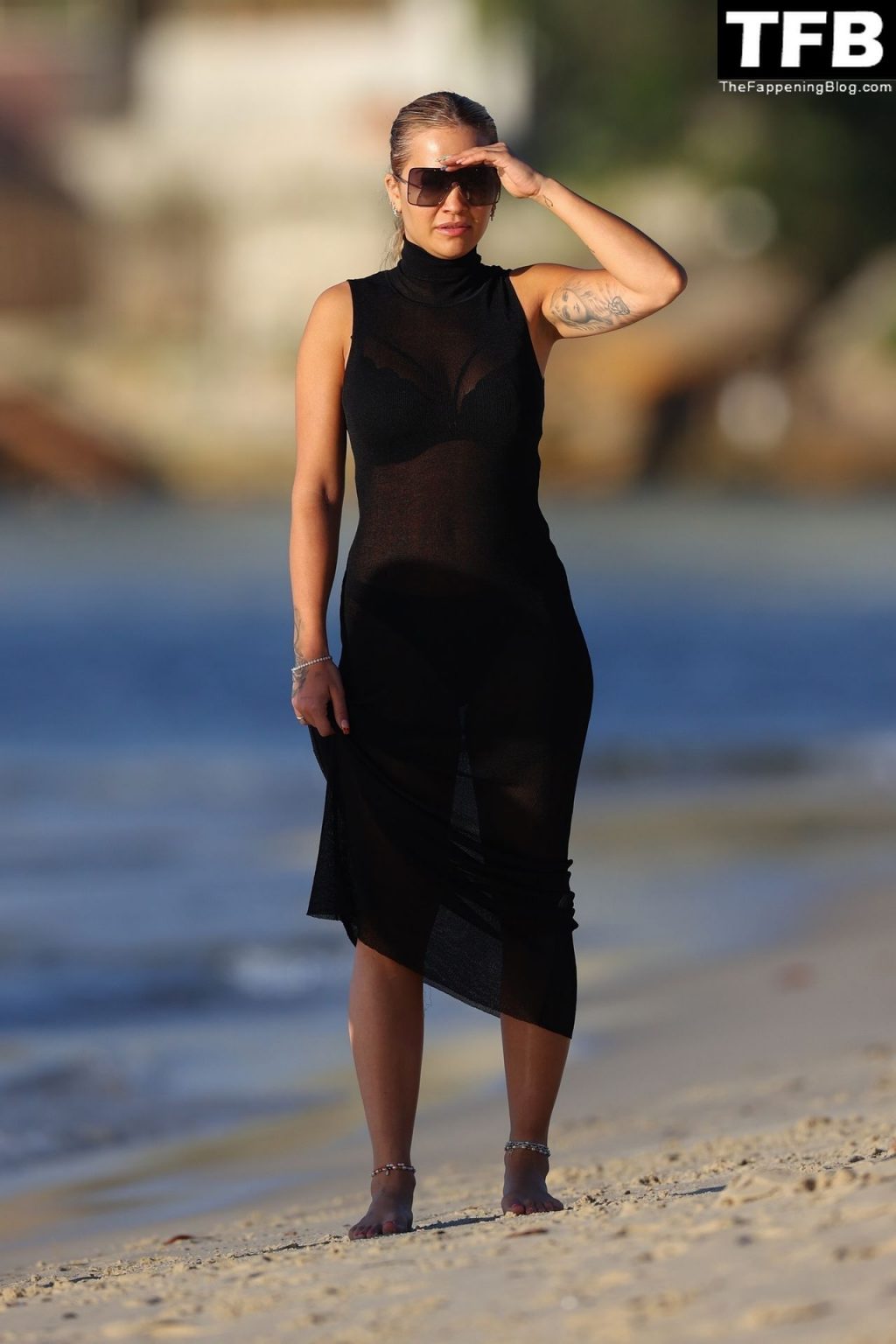 Певица Рита Ора запечатлена вместе со своей сестрой Еленой, когда она носит черное прозрачное платье, прогуливаясь по пляжу, а затем совершает покупки в продуктовом магазине во время пребывания в Сиднее для съемок сезона шоу Voice Australia 2022.