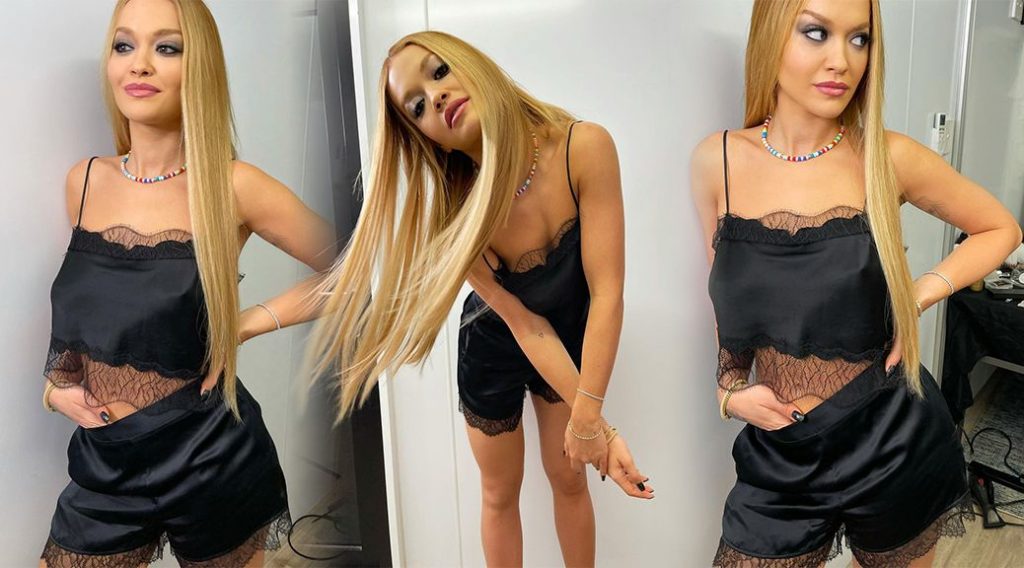 Певица Рита Ора демонстрирует свое сексуальное тело, позируя в черной двухкомпонентной пижаме – Instagram, 28.03.2021.
