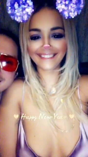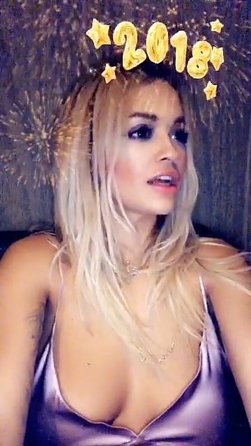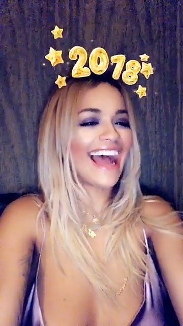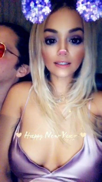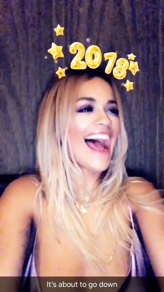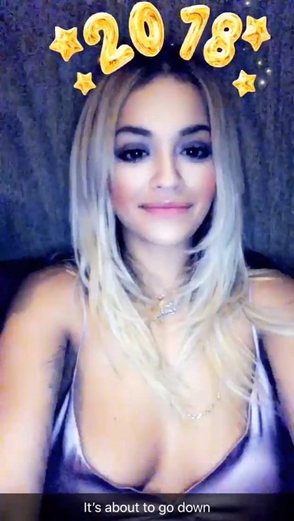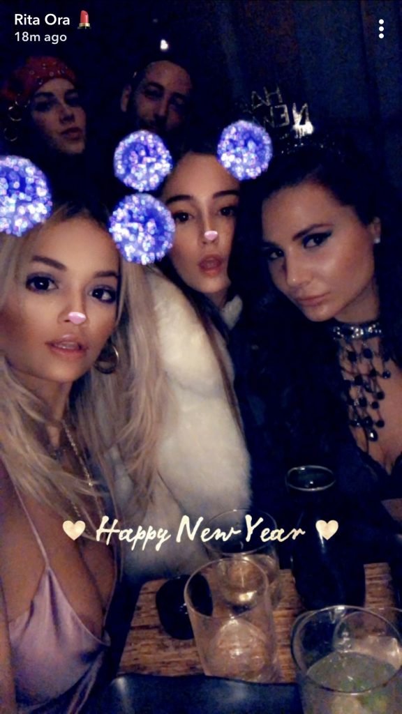 Певица Рита Ора (27) демонстрирует глубокое декольте на вечеринке с друзьями – Instagram, Snapchat, 31.12.2017.