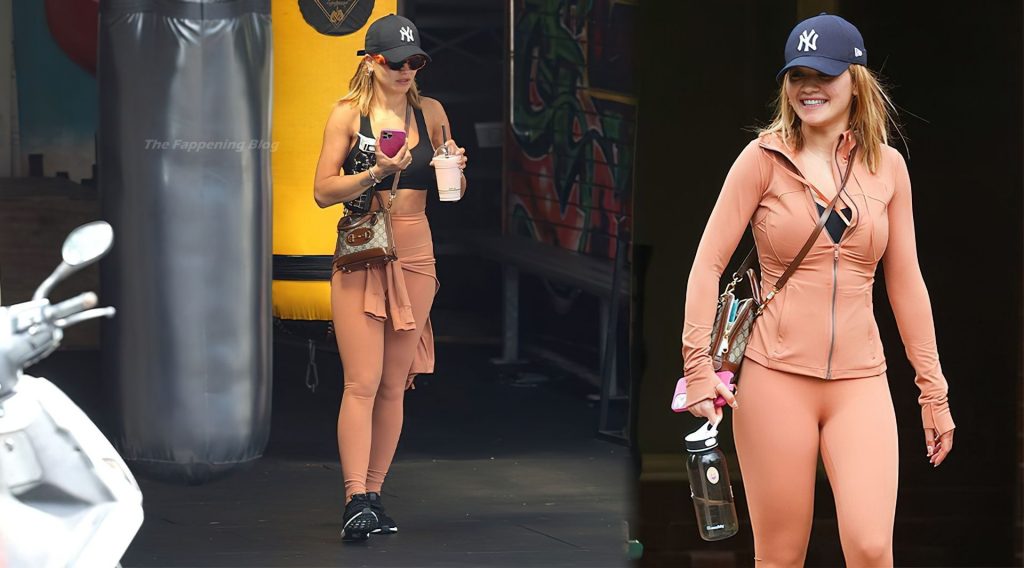 Певица Рита Ора демонстрирует свой подтянутый животик в спортивном бюстгальтере и обтягивающей нюдовой спортивной одежде, когда она занимается в спортзале в Сиднее.