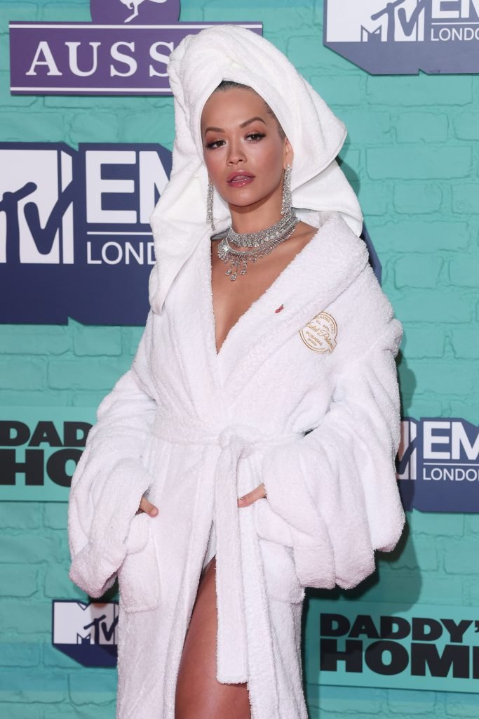 Певица и актриса Рита Ора, 26 лет, посещает MTV EMAs 2017, проходившие в The SSE Arena в Лондоне, 11/12/2017.