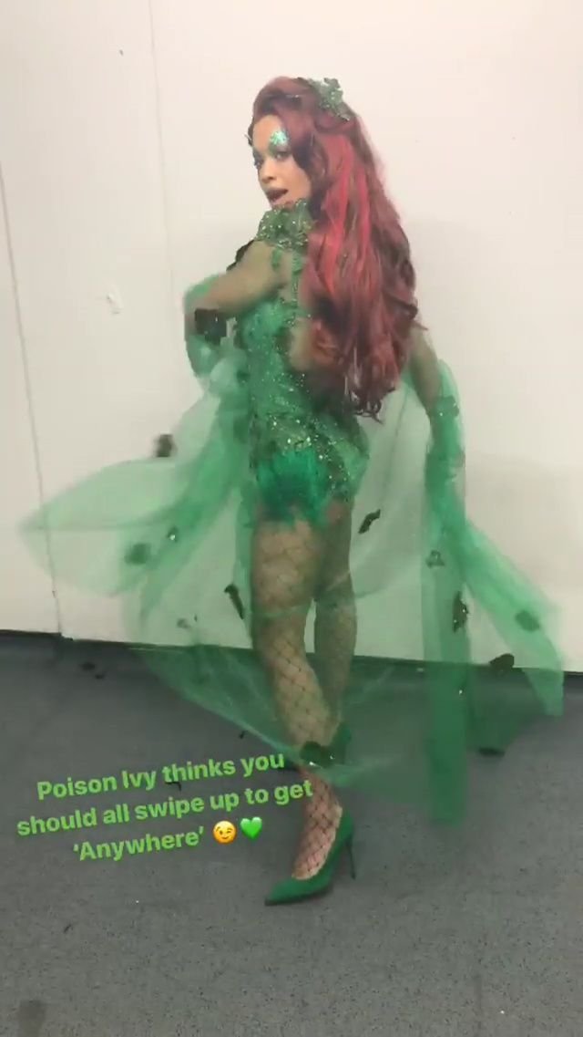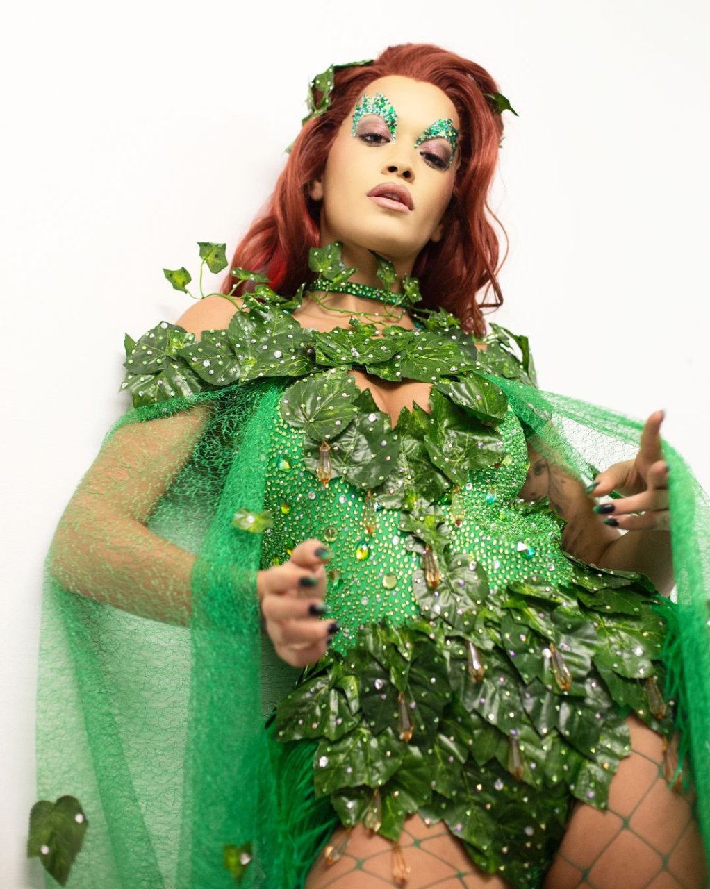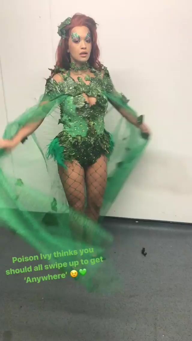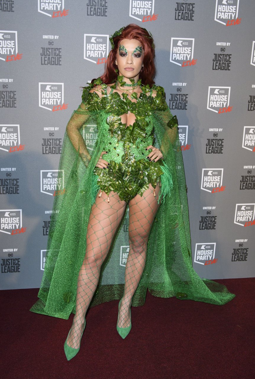 Певица Рита Ора посещает вечеринку KISS House Party в костюме Ядовитого Плюща на мероприятии, проходившем в SSE Arena в Лондоне, 26.10.2017.