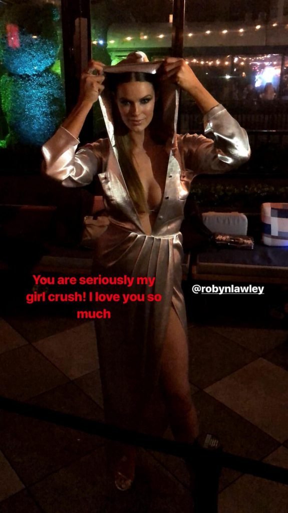 Робин Лоули в серебристом топе на вечеринке по случаю запуска выпуска Sports Illustrated Swimsuit 2018 в Нью-Йорке, 14.02.2018. Робин Лоули — модель из Австралии. Дата рождения: 13 июня 1989 года.