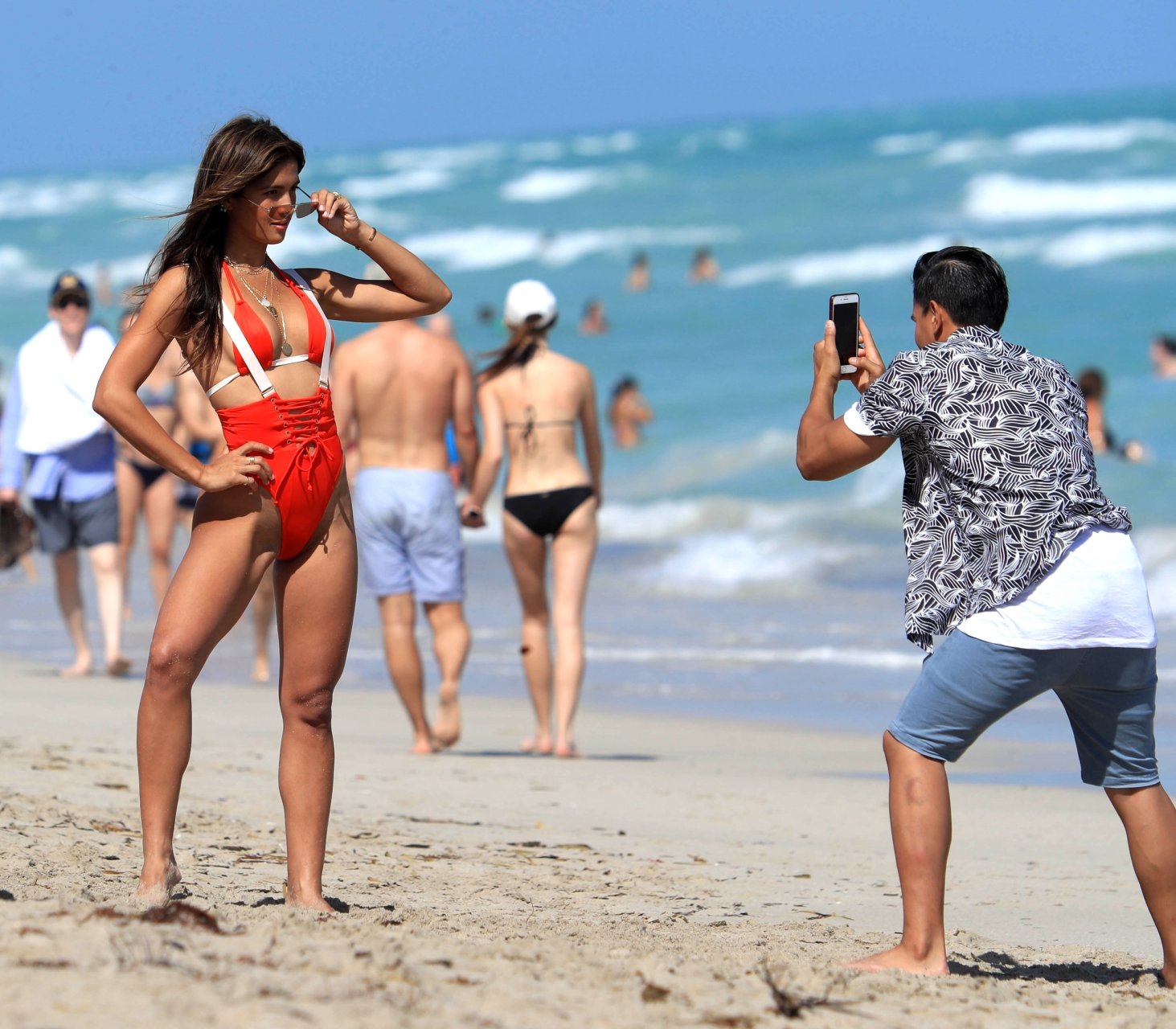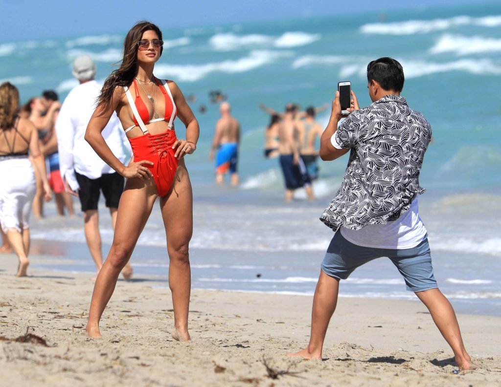 Модель Рэйчел «Рокки» Барнс выходит на пляж для новой фотосессии на пляже в Майами, 20.02.2018.