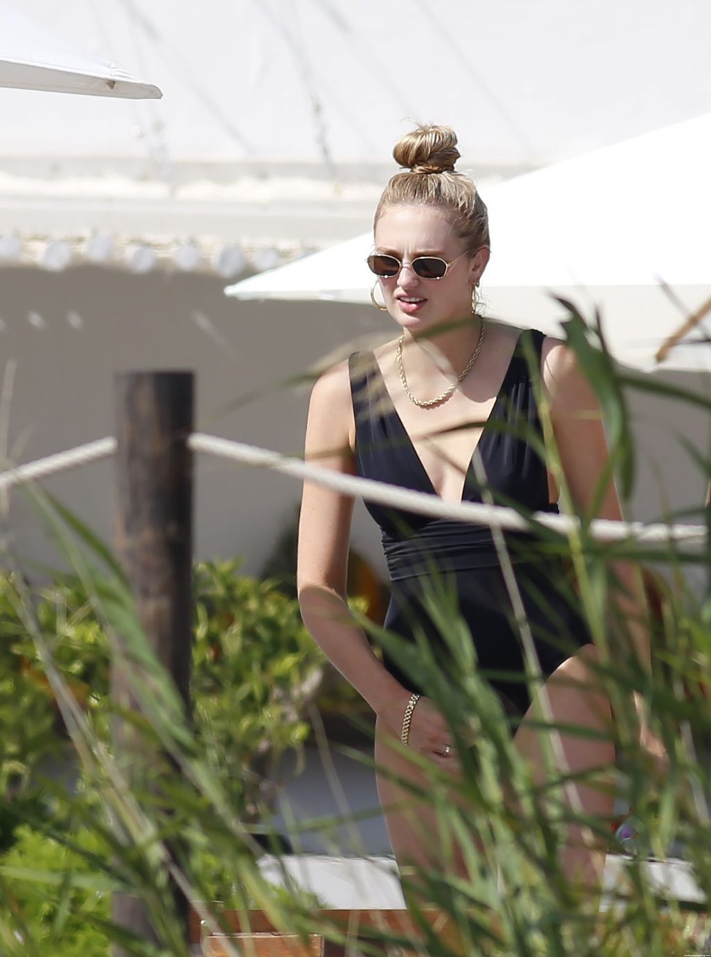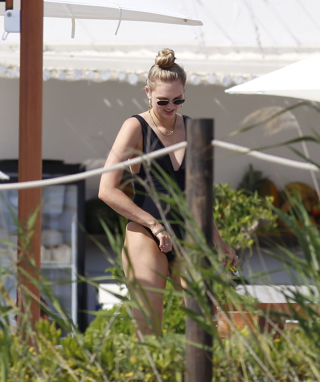 Ангел Victoria’s Secret Роми Стрейд демонстрирует свою невероятную фигуру после родов в черном цельном купальнике во время семейного отпуска на Ибице в субботу в компании своего малыша и мужа, Лауренса Ван Леувена.