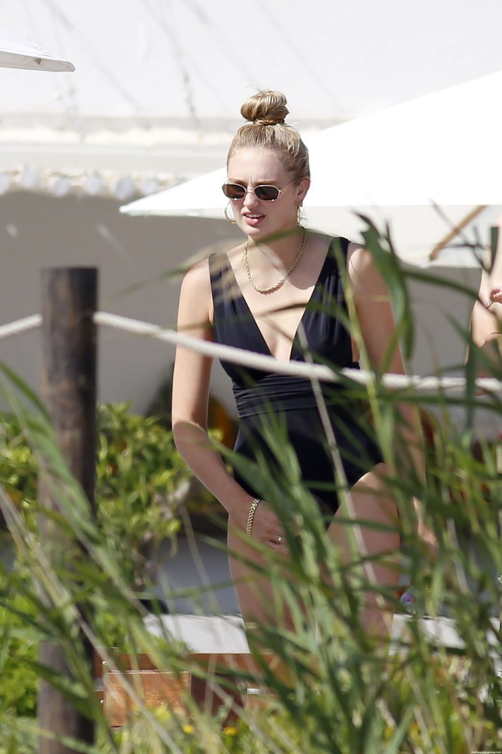 ОНА НЕ НОСИТ БИКИНИ!!!! Это классический цельный купальник. Ё-моё. Учитесь, что такое бикини!!