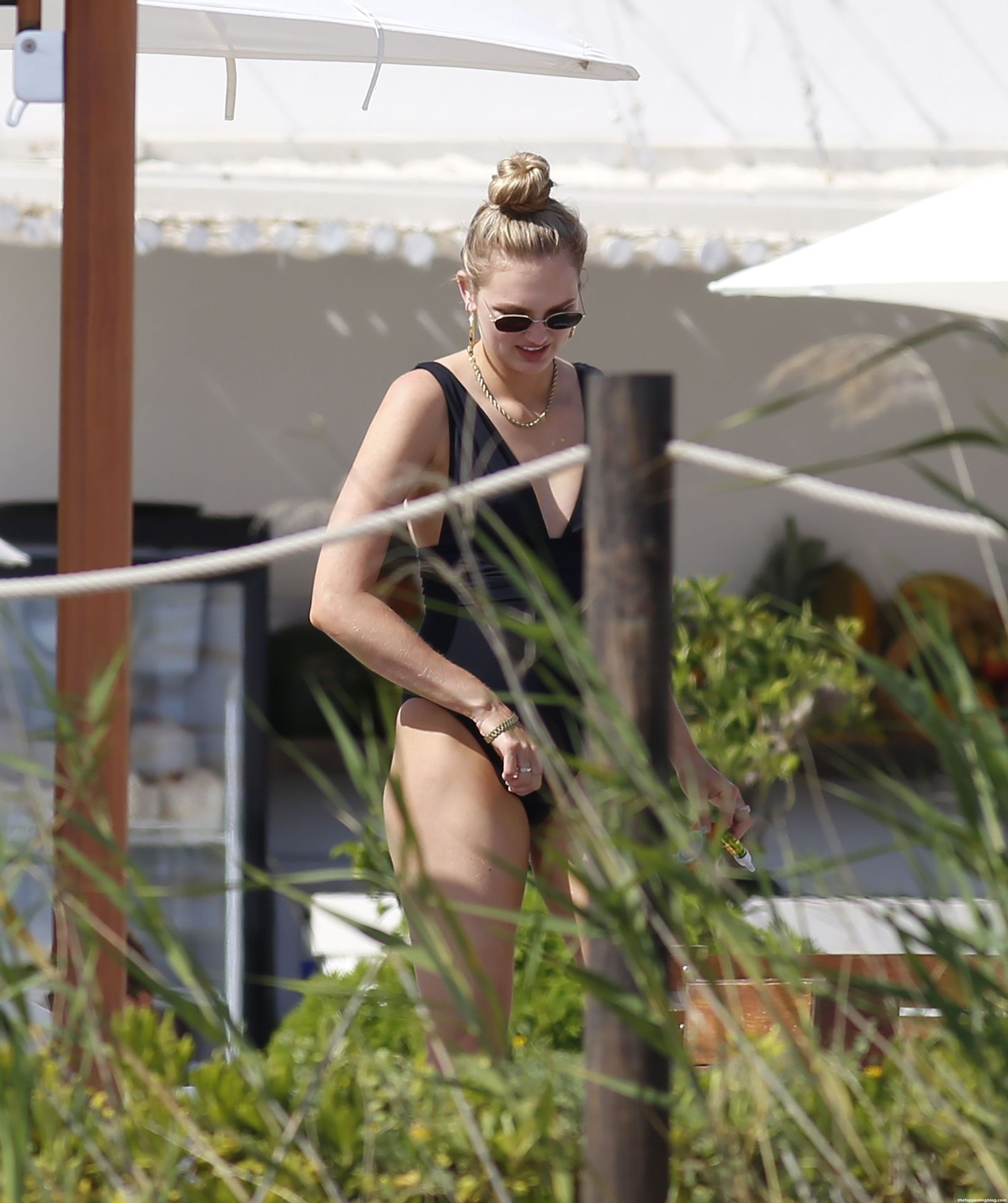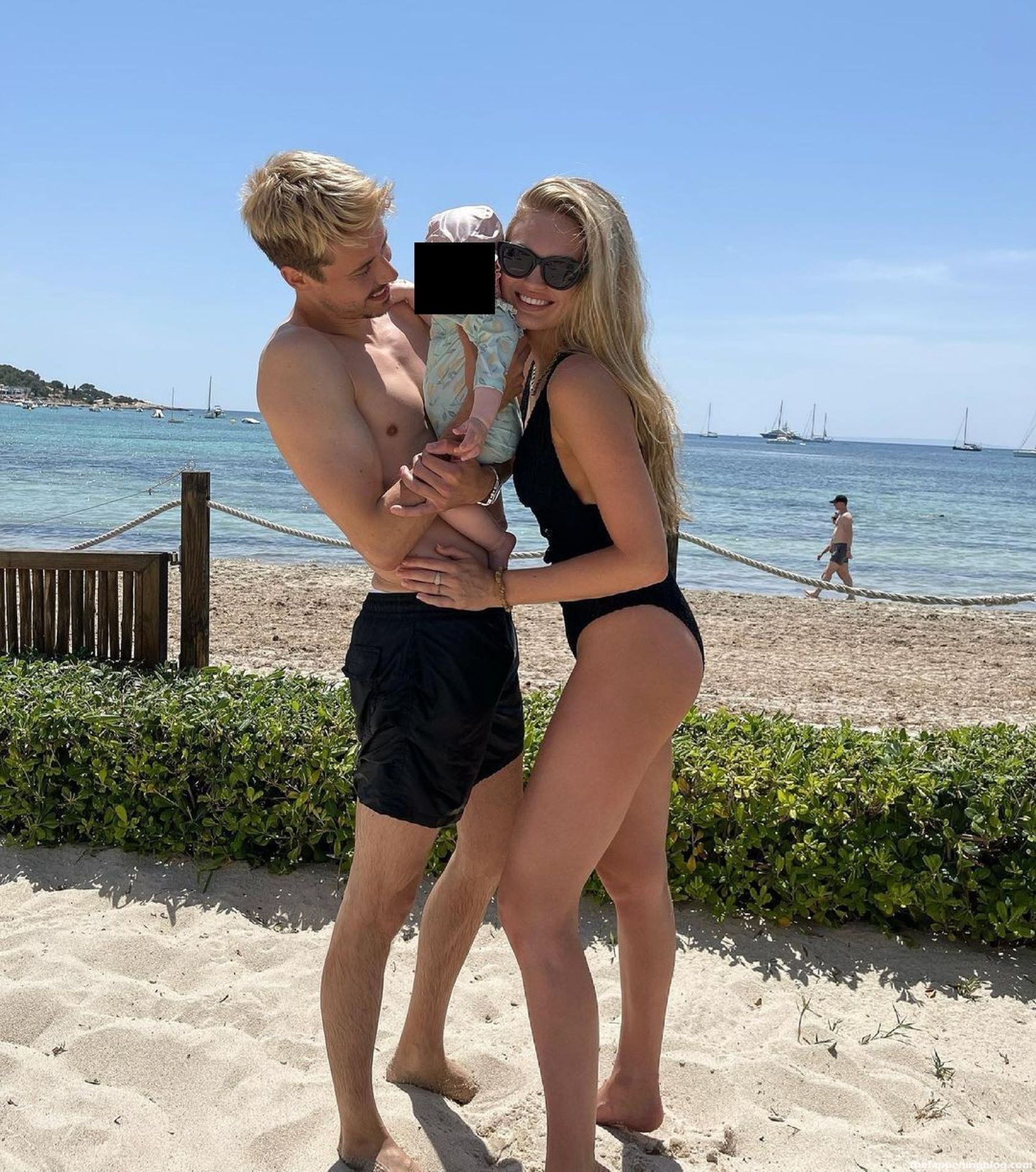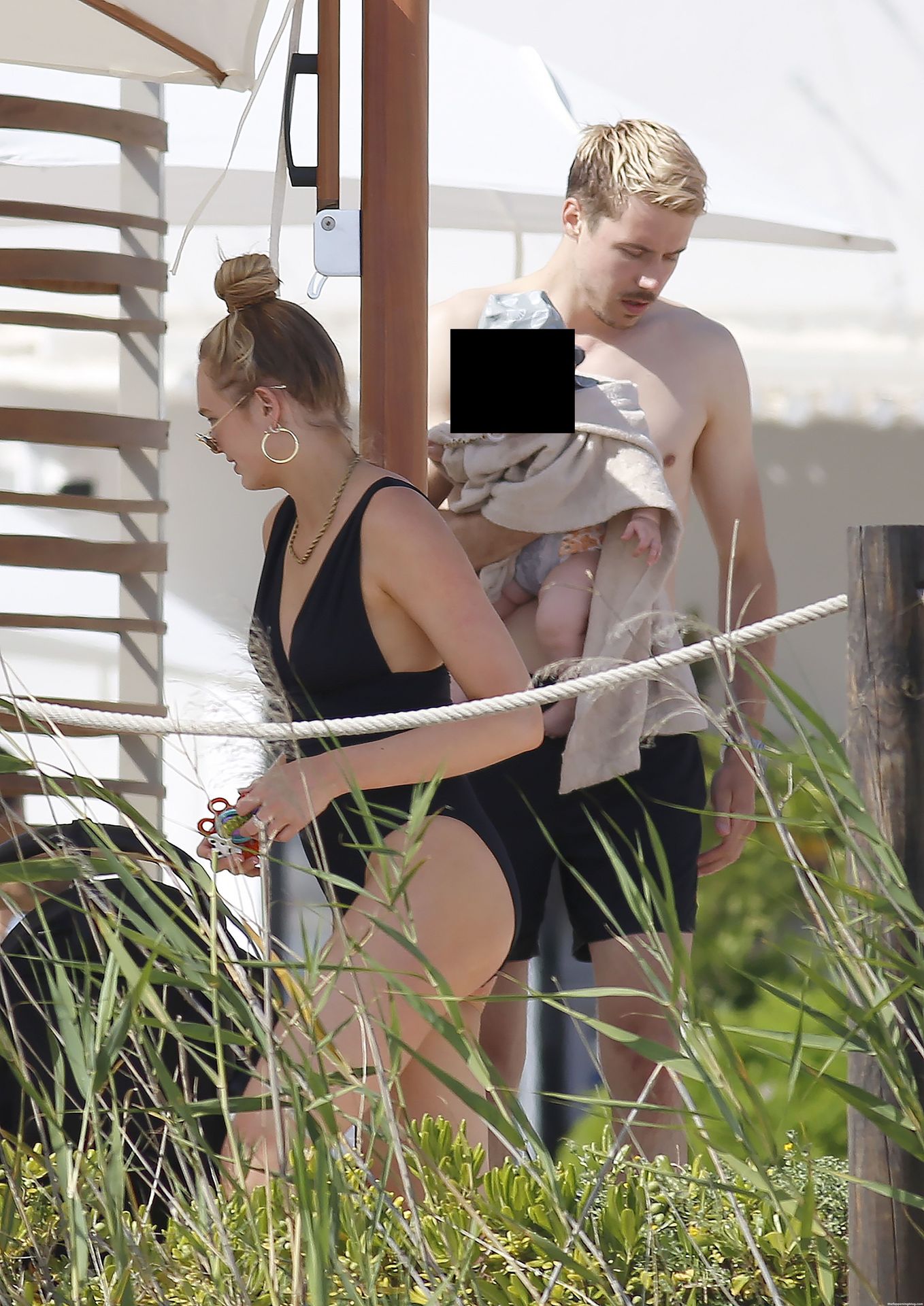 Ангел Victoria’s Secret Роми Стрейд демонстрирует свою невероятную фигуру после родов в черном цельном купальнике во время семейного отпуска на Ибице в субботу в компании своего малыша и мужа, Лауренса Ван Леувена.