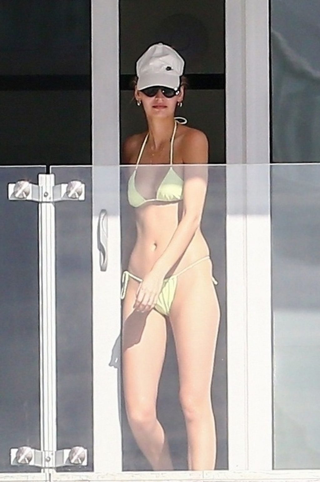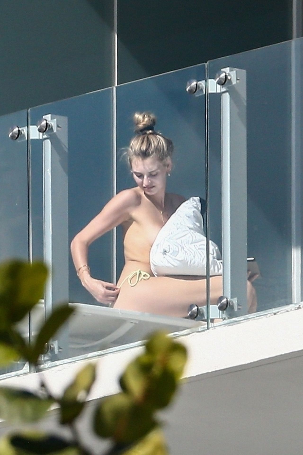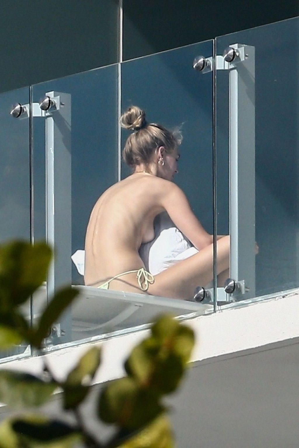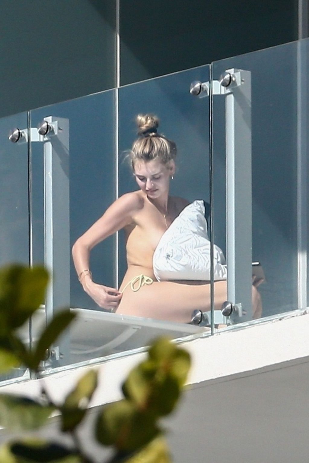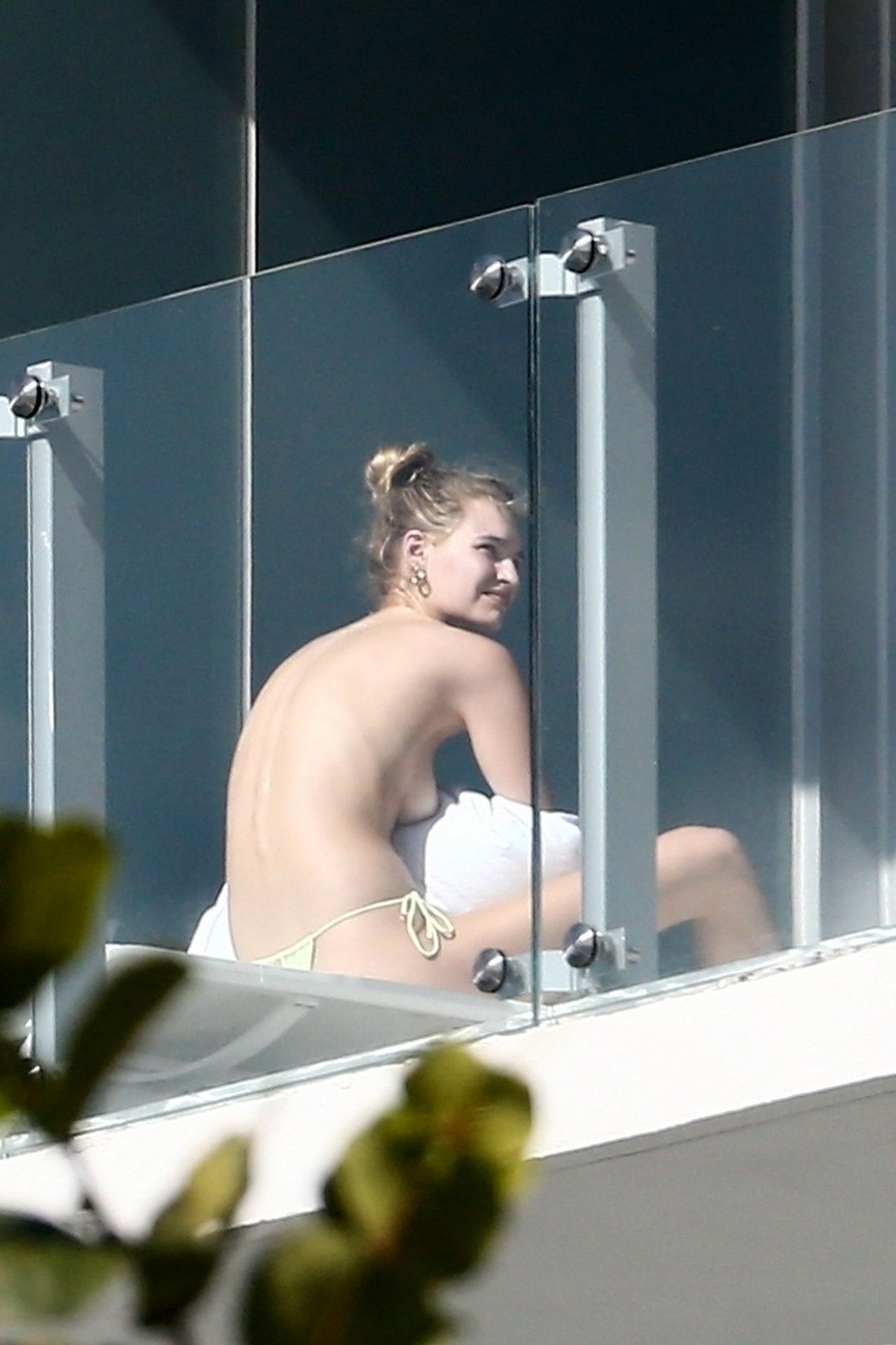 Голландская модель Роосмарийн де Кок использует время изоляции и солнечную погоду, загорая на балконе в Майами, 04/02/2020.