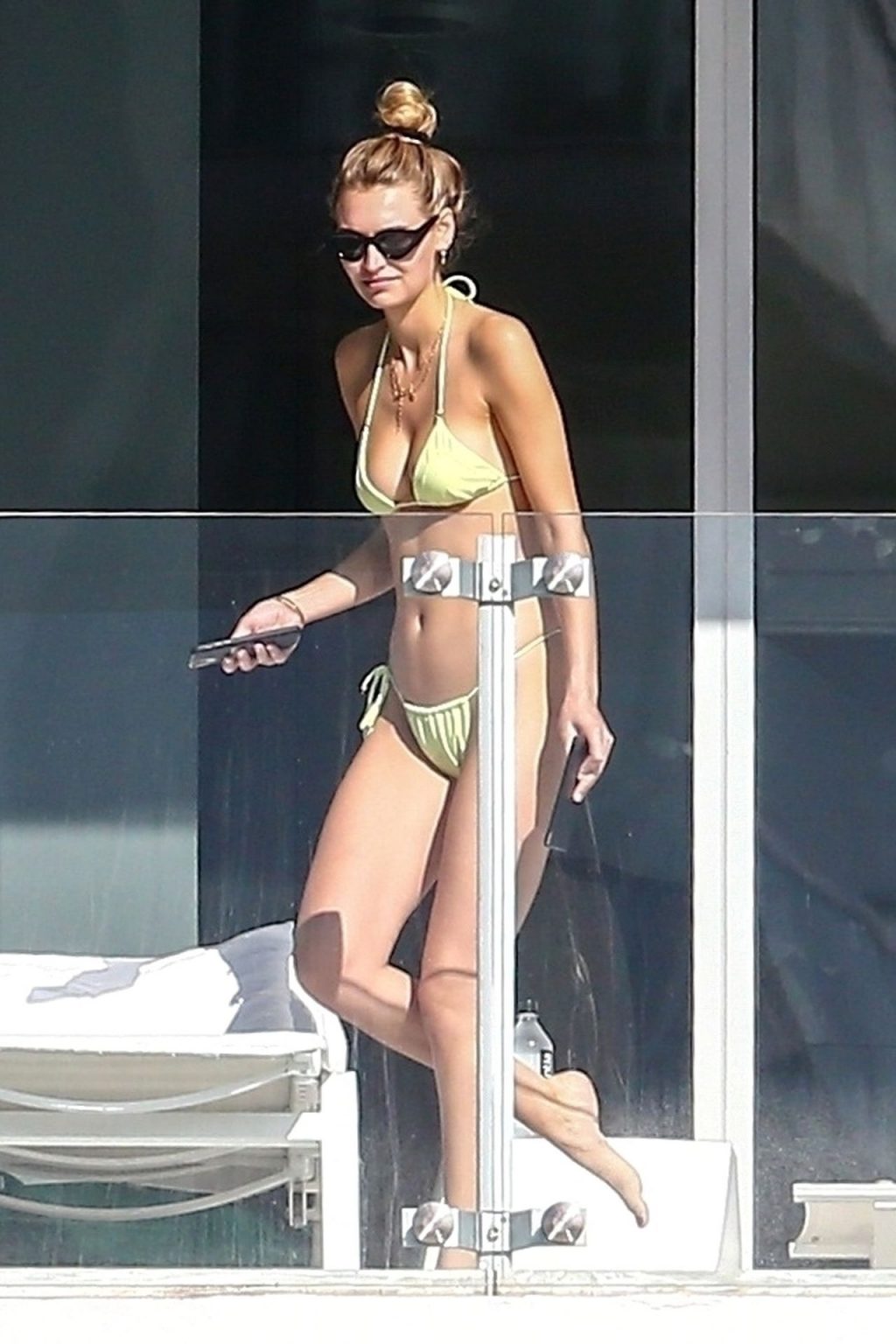 Блондинка была в маленьком жёлтом бикини и решила снять верх, чтобы избежать некрасивых следов от лямок.