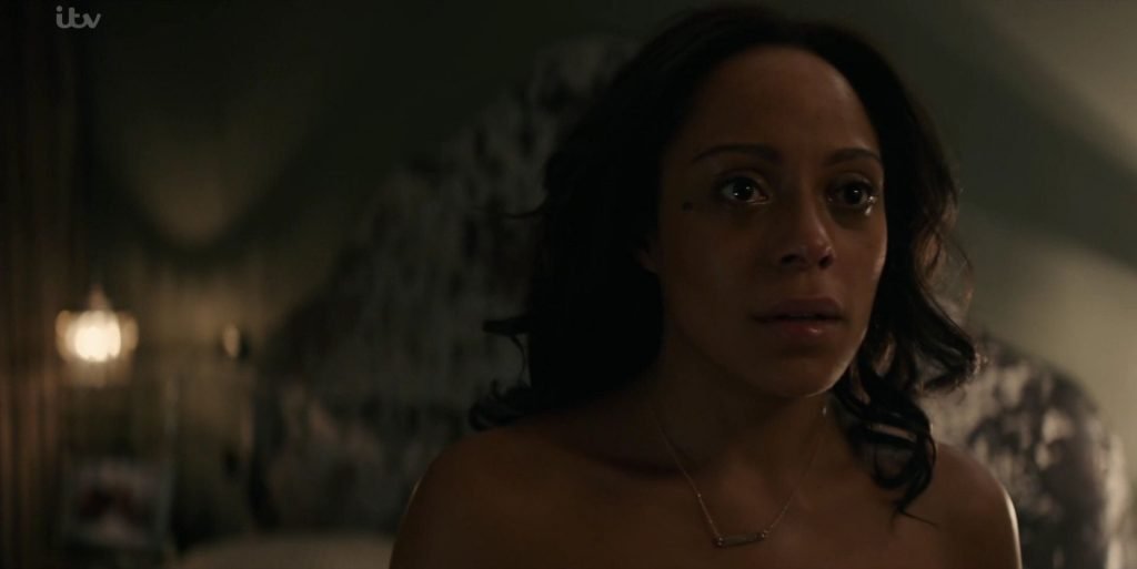 Смотрите голую сцену Розалинд Элеазар из “Глубокая вода” (2019) Сезон 1 Эпизод 2, где вы можете увидеть эту MILF полностью голой, когда она снимает халат и стоит рядом с кроватью, показывая свою попу крупным планом, разговаривая с парнем, который зашел в спальню. Затем вы видите её обвисшую грудь сбоку.