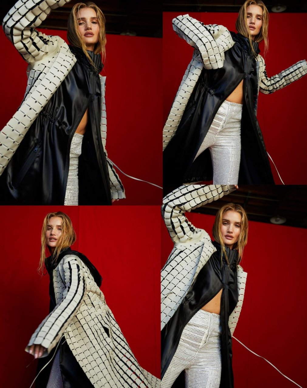 Рози Хантингтон-Уайтли одета в кожу для обложки Harper’s Bazaar Taiwan за август 2019 года. Фотограф Амар Давед запечатлел блондинку в кожаной куртке, брюках и ботинках от Bottega Veneta. Сопровождающие изображения показывают Рози в элегантных нарядах, стилизованных Сарой Гоар Ривз. От верхней одежды до обуви, дизайнер Autograph демонстрирует полный гардероб, включая Bottega Veneta.