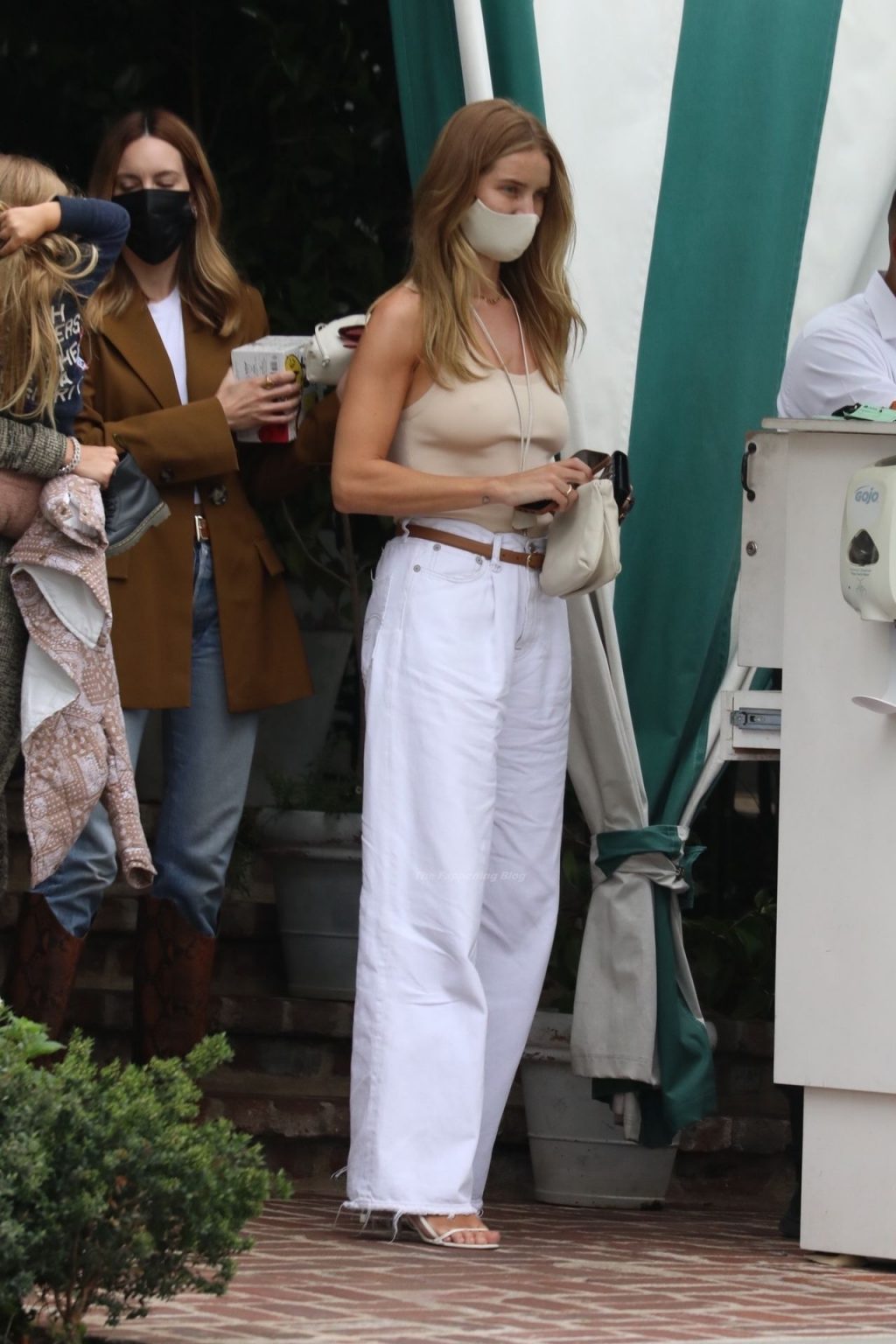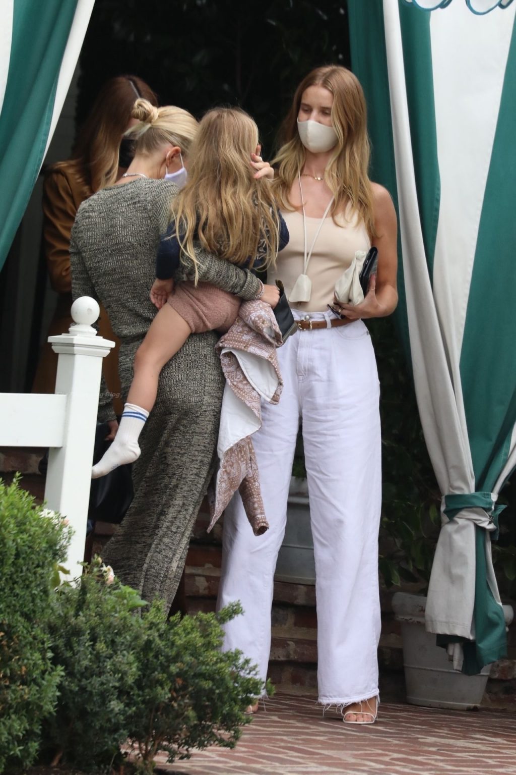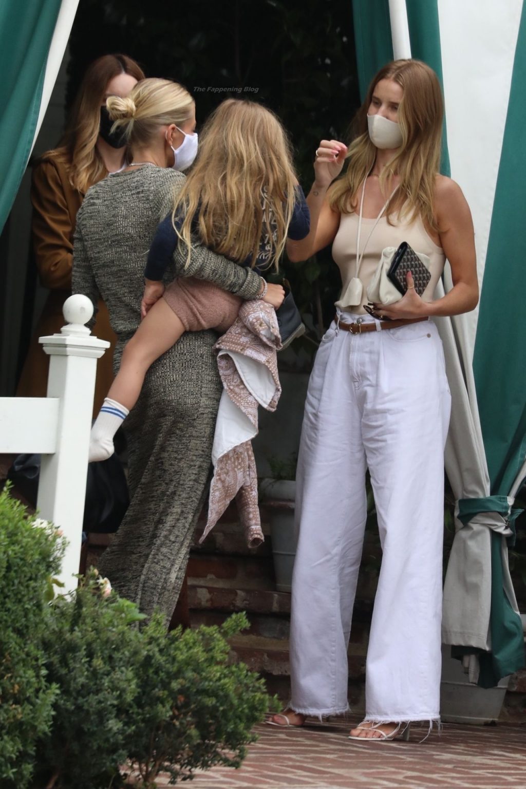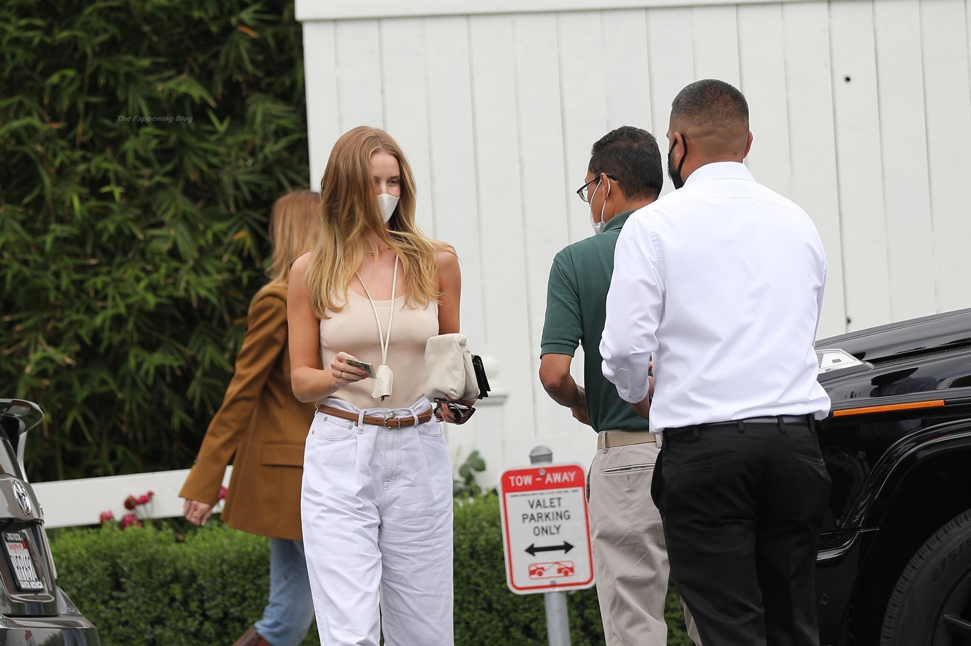 Модель Рози Хантингтон-Уайтли общается с друзьями, ожидая свою машину возле San Vicente Bungalows после посещения частного мероприятия в Уэст-Голливуде, 15.05.2021.