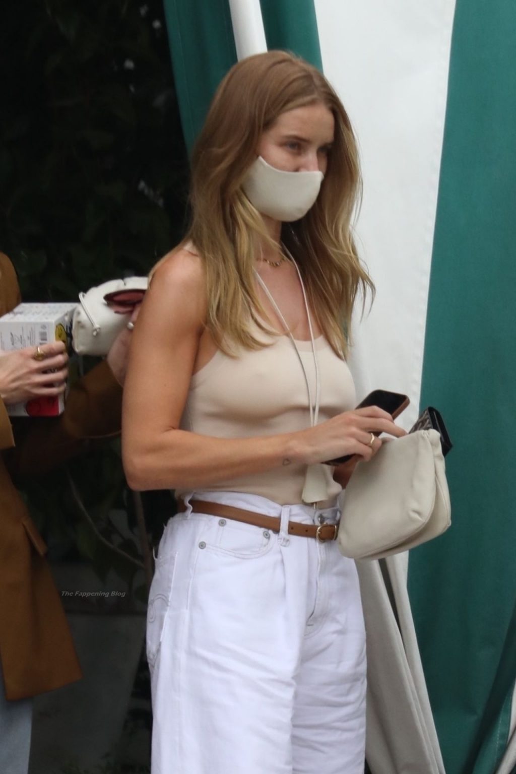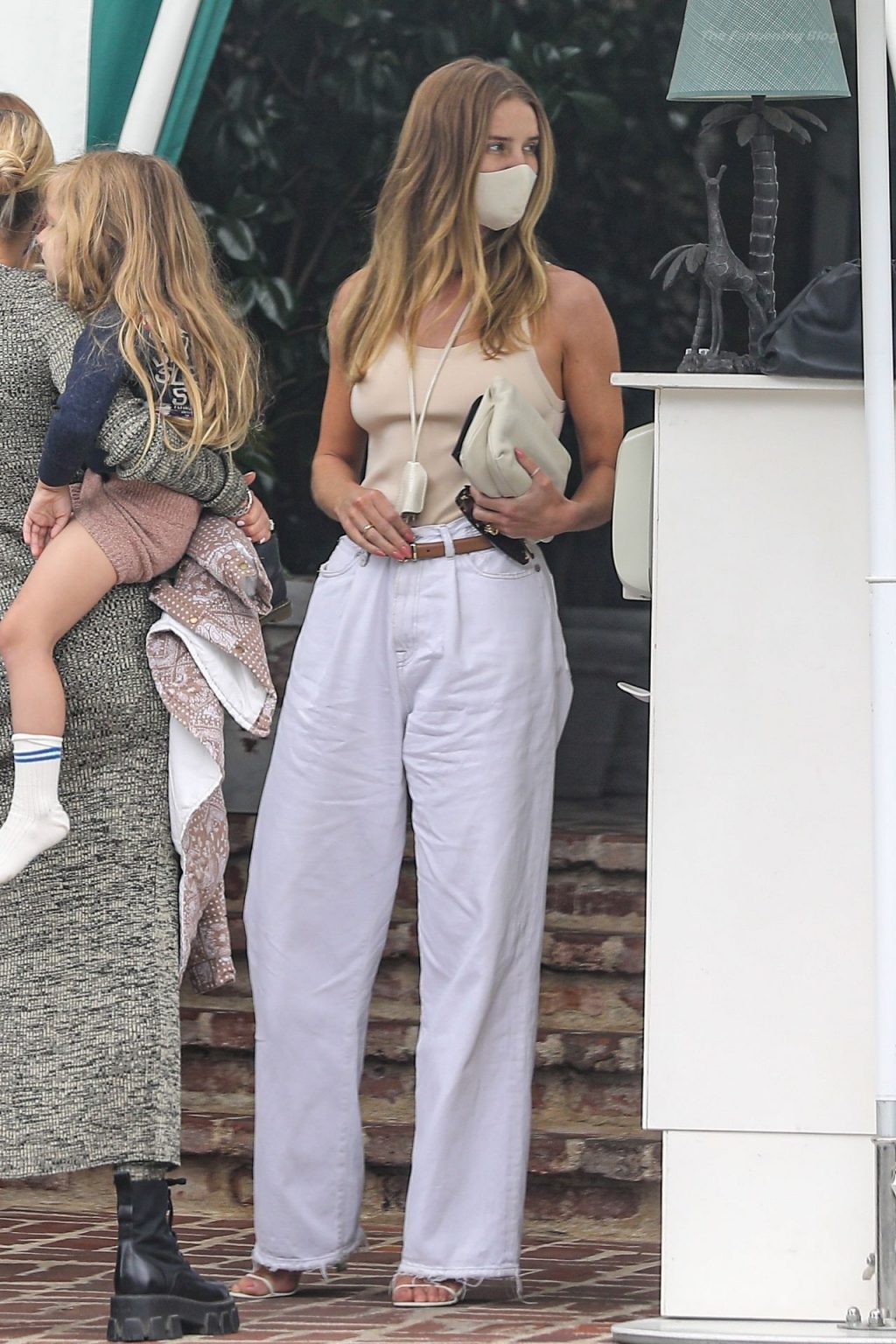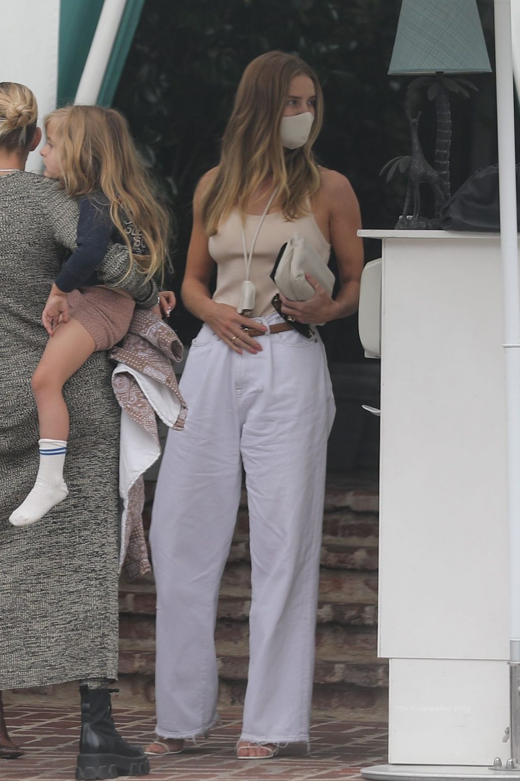Модель Рози Хантингтон-Уайтли общается с друзьями, ожидая свою машину возле San Vicente Bungalows после посещения частного мероприятия в Уэст-Голливуде, 15.05.2021.