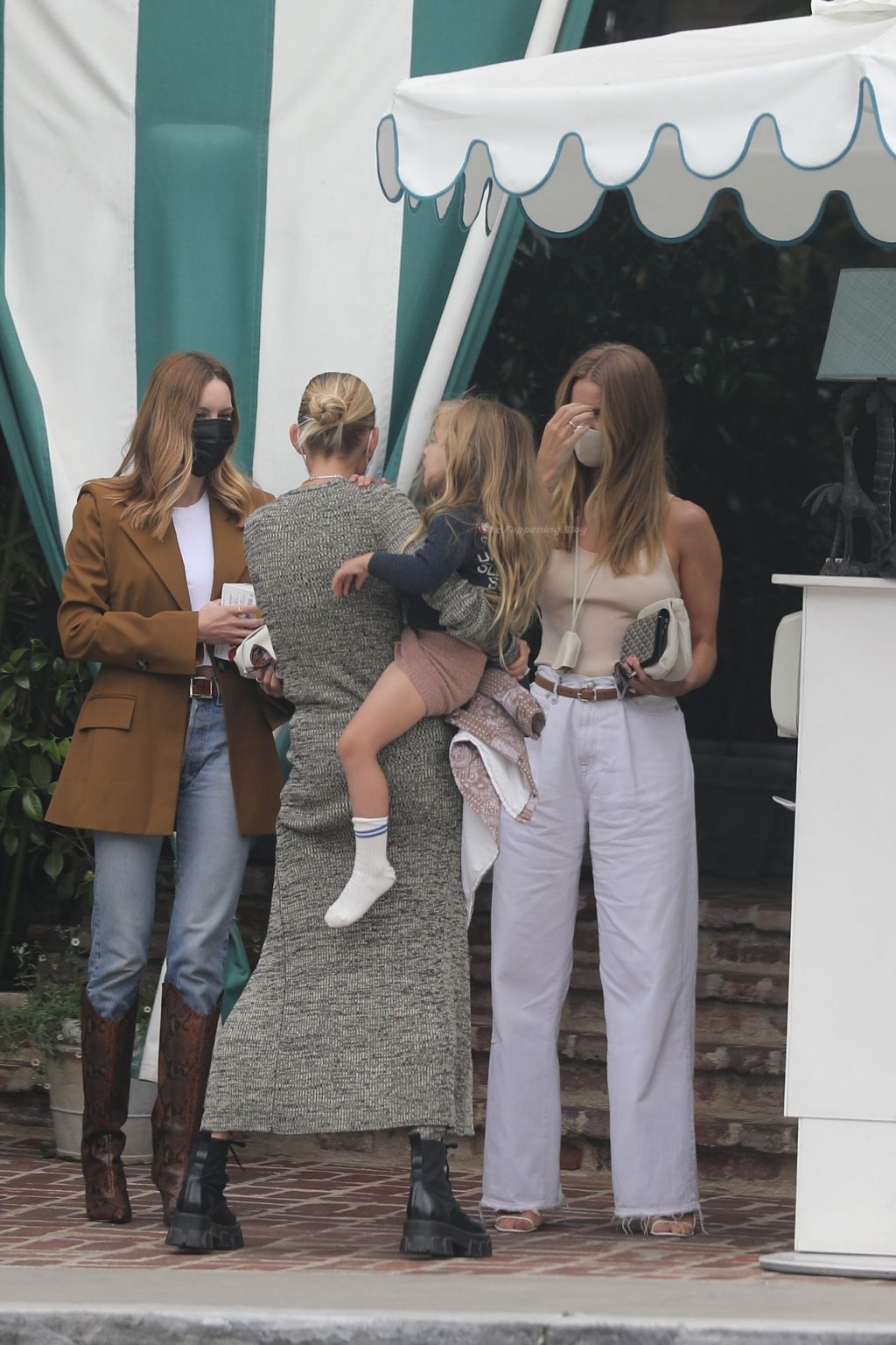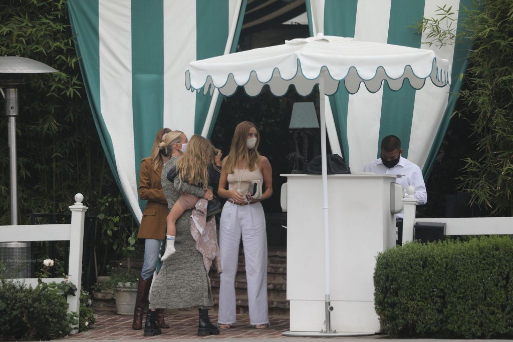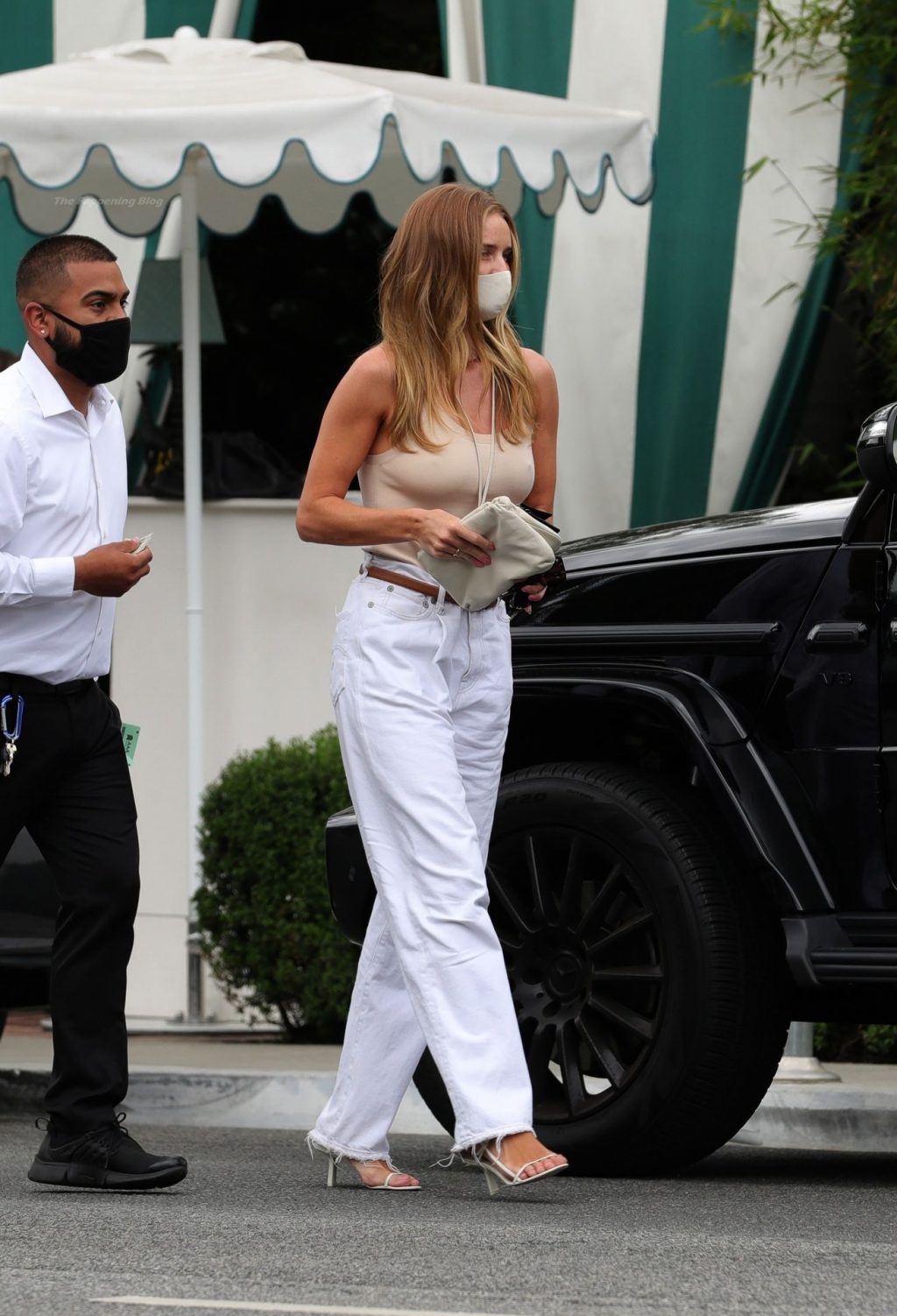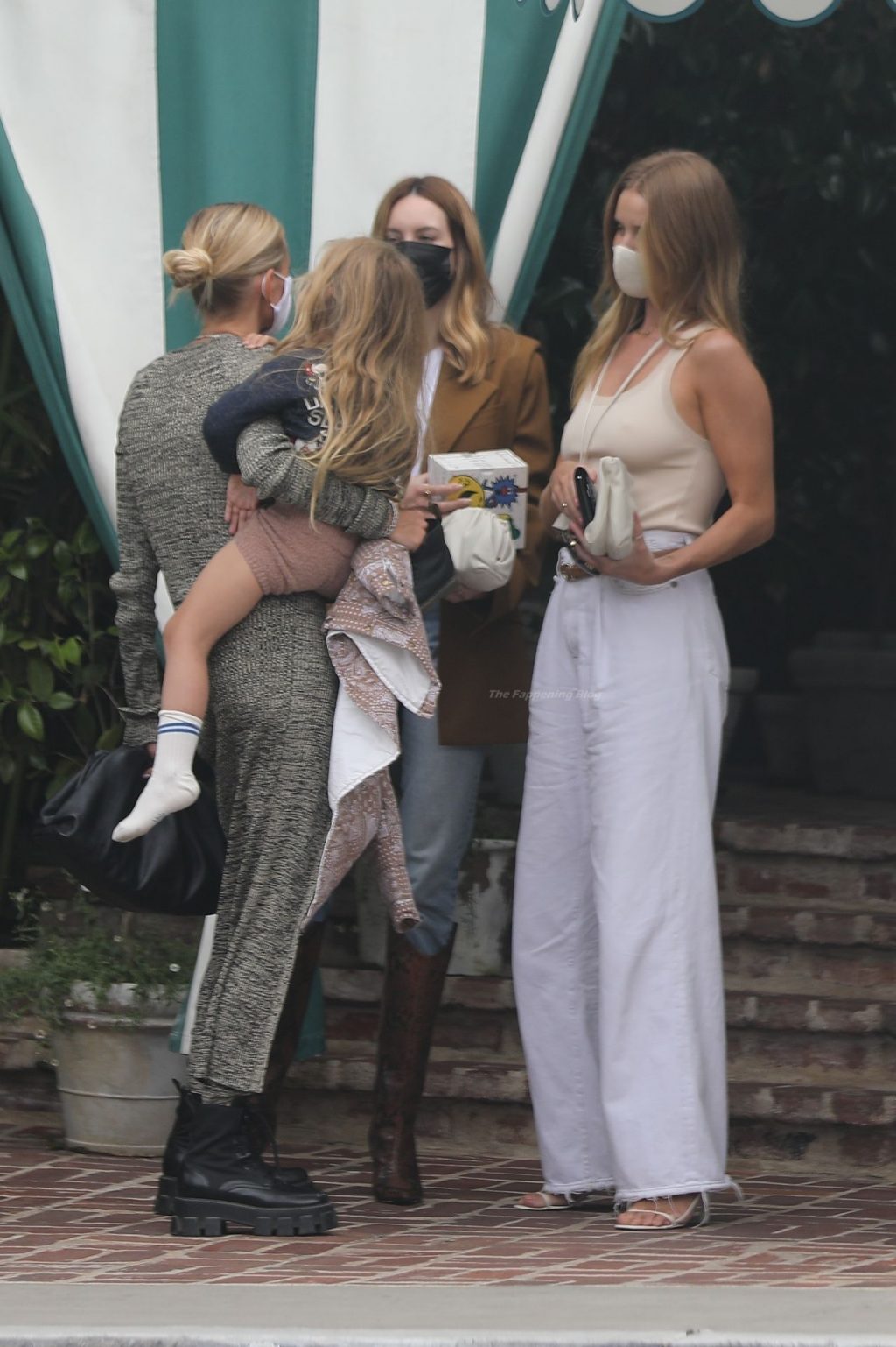 Модель Рози Хантингтон-Уайтли общается с друзьями, ожидая свою машину возле San Vicente Bungalows после посещения частного мероприятия в Уэст-Голливуде, 15.05.2021.