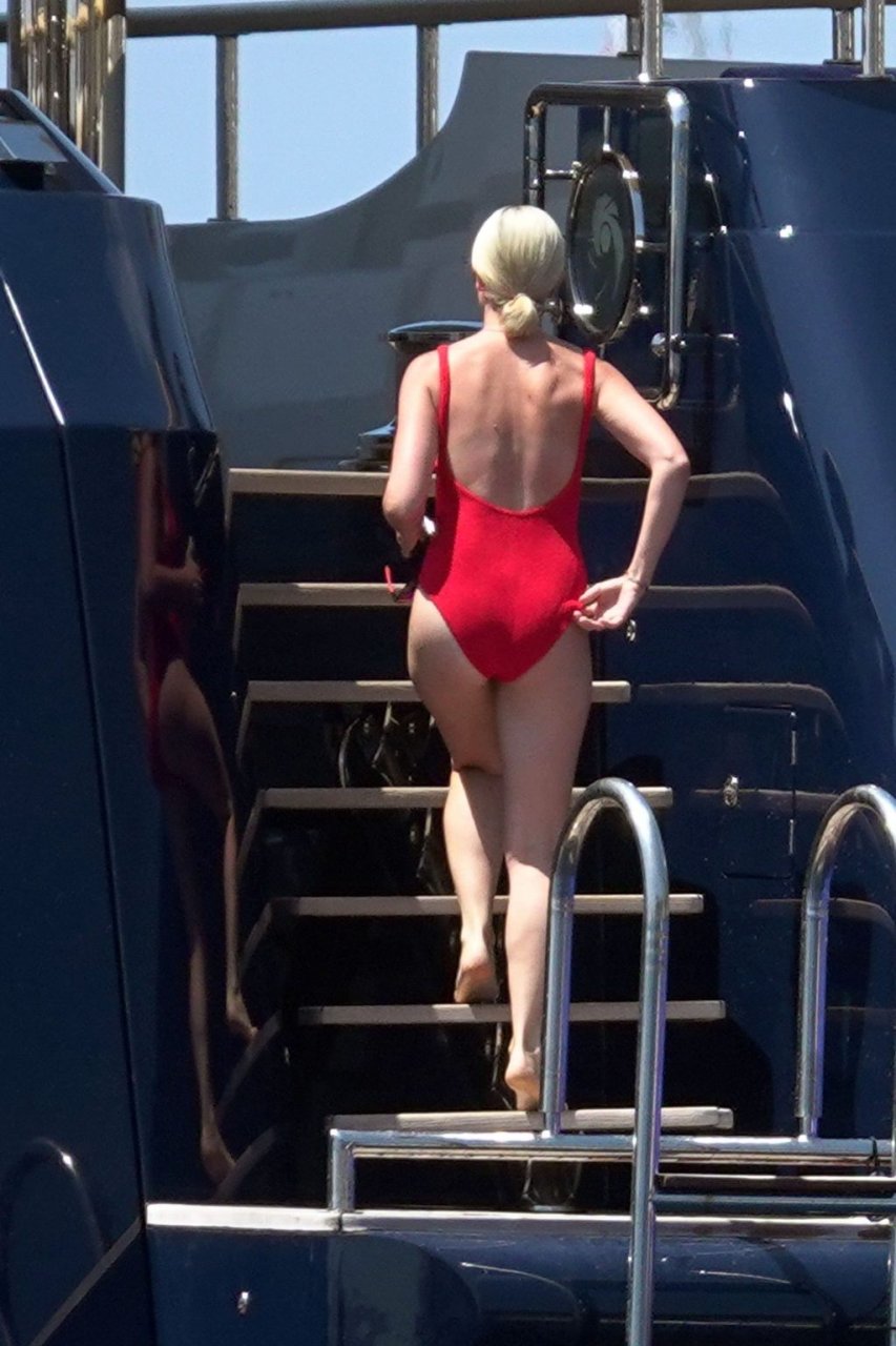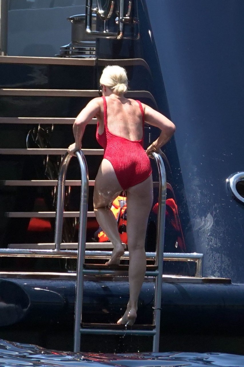 Roxy Jacenko и её муж Оливер Кёртис наслаждаются днем на море во время отпуска на Капри, 20.07.2018. Блондинка продемонстрировала своё тело MILF в красном купальнике.