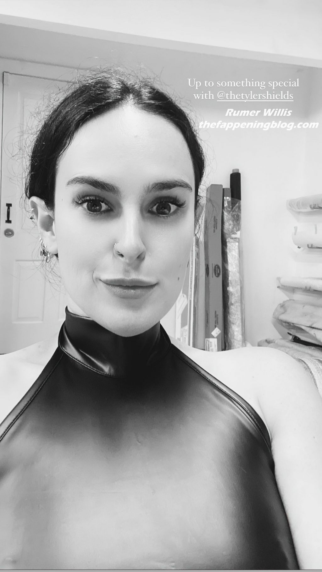 Вот несколько голых и соблазнительных черно-белых и цветных фотографий Румер Уиллис + селфи за кадром с ее фотосессии в стиле БДСМ от Тайлера Шилдса. Актриса позирует обнаженной и в черном латексном боди в образе госпожи.