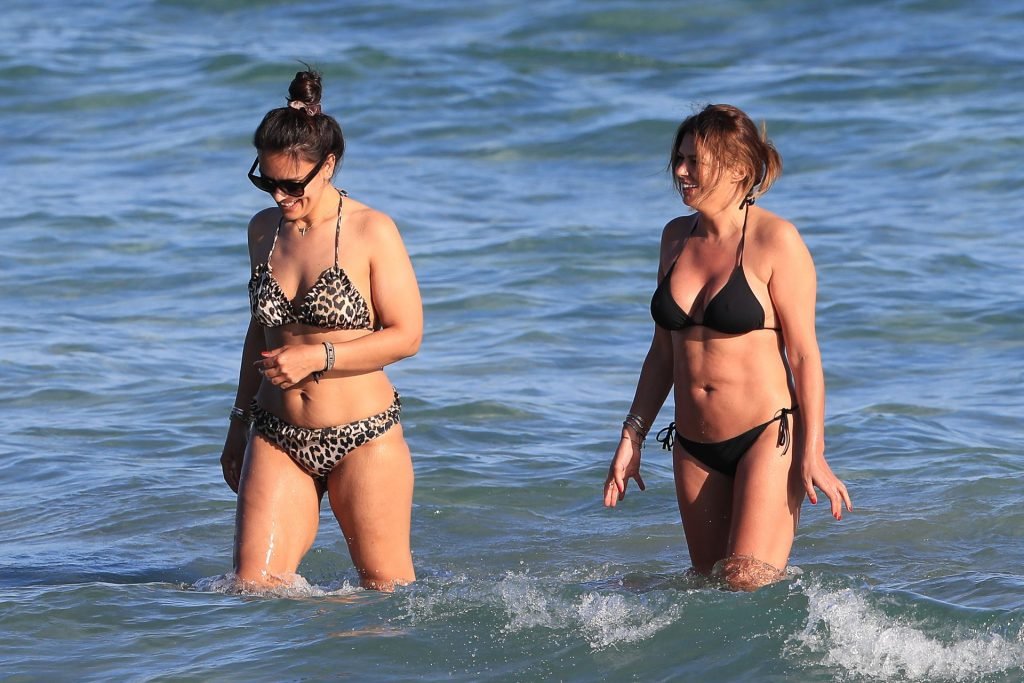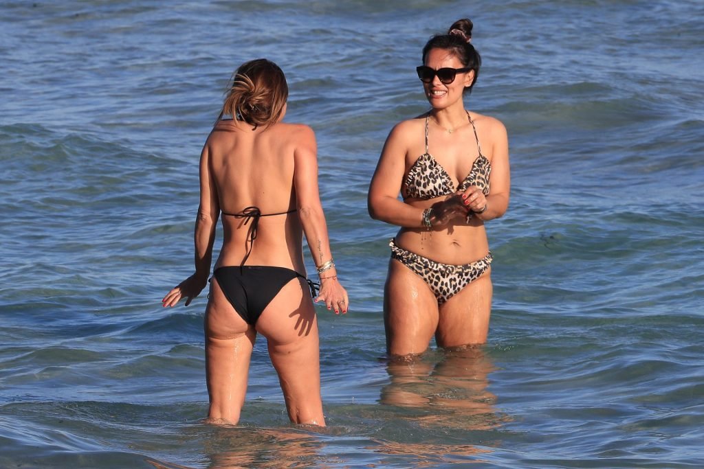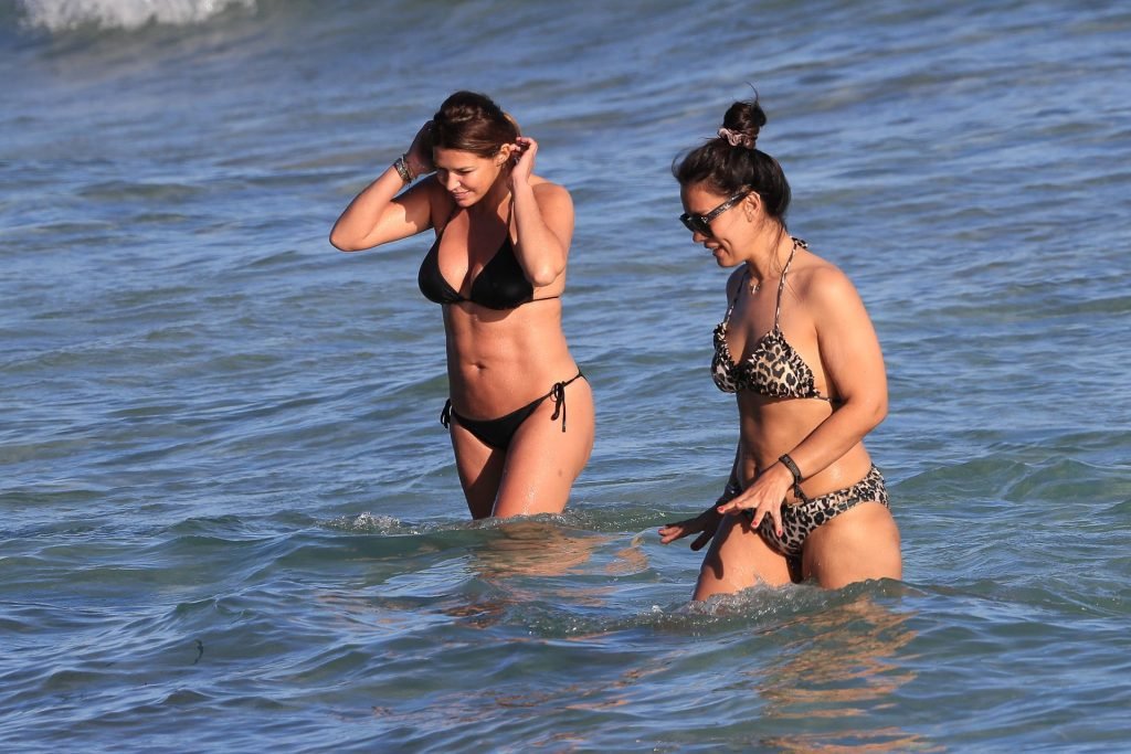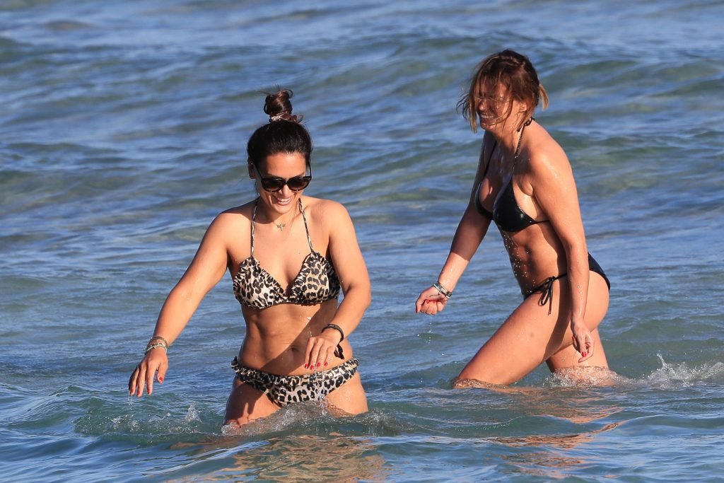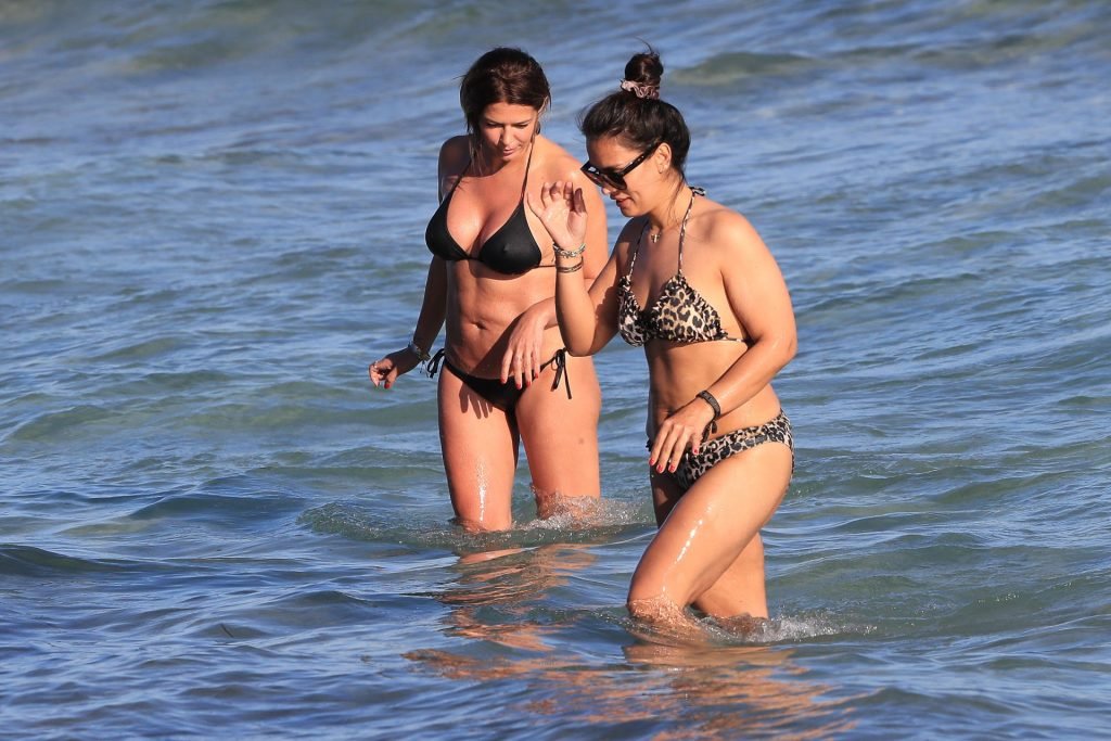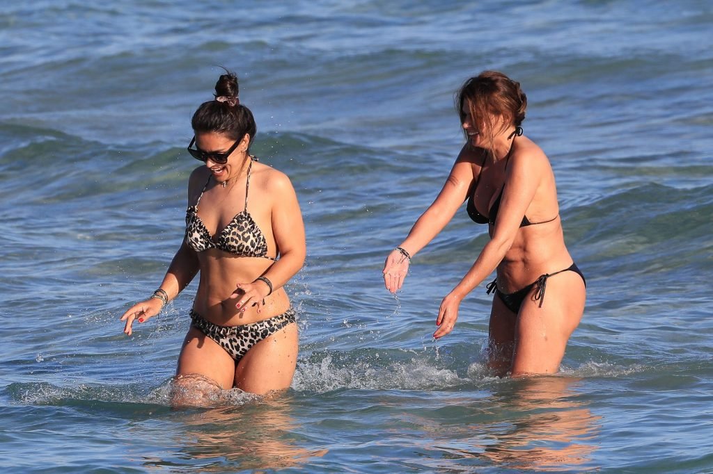 Sabia Boulahrouz была замечена в черном бикини, наслаждаясь водой вместе с подругой на пляже в Ибице, Испания, 18.06.2019. Сабия Буллахруз (Engizek) — 41-летняя турецко-немецкая бывшая модель и танцовщица.
