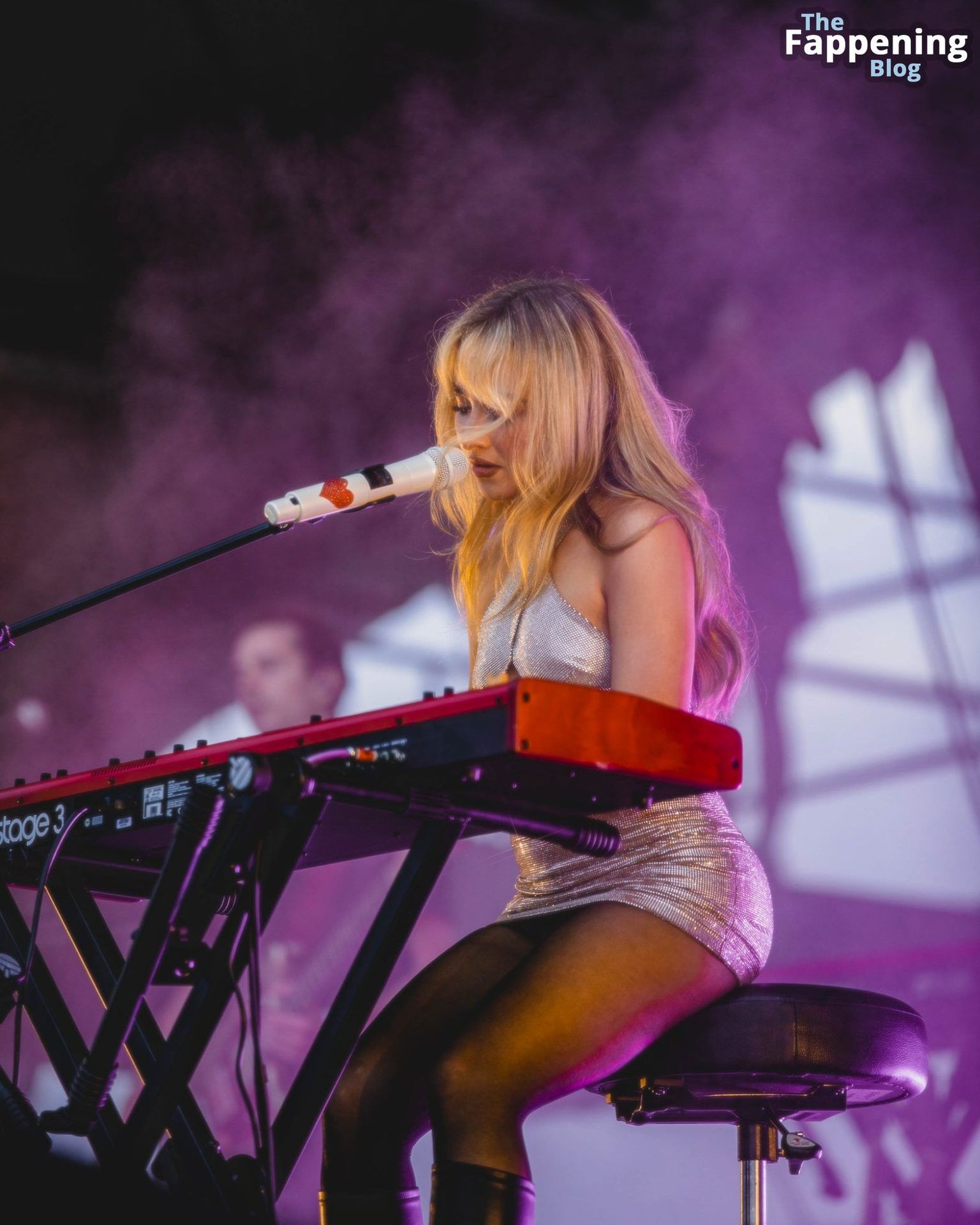 Посмотрите, как Сабрина Карпентер эффектно появилась на фестивале Hangout! Все взгляды прикованы к её безупречным ногам, которые она демонстрирует в соблазнительной мини-юбке. И поверьте, соблазнительная привлекательность её ног в колготках заставит вас хотеть ещё — у неё это отлично получается!