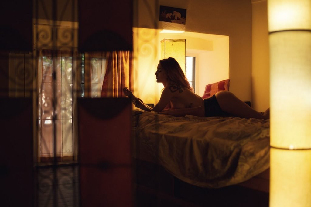 И несколько отвратительных татуировок и татуировка на пояснице снова портят всю сцену.