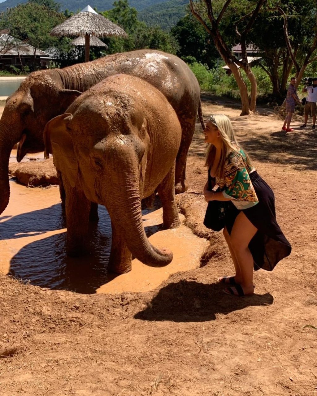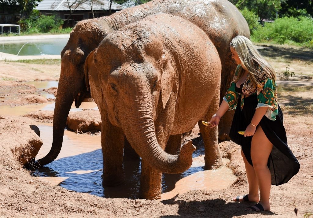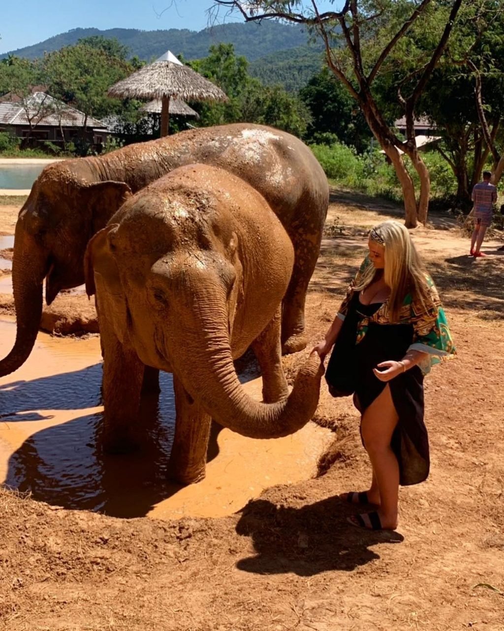 Звёзды TOWIE, Сафрон Лемпрьер, Пит Уикс, Хлоя Симс и Бобби Норрис посещают заповедник слонов Самуи во время пребывания в Таиланде, 03/09/2019.
