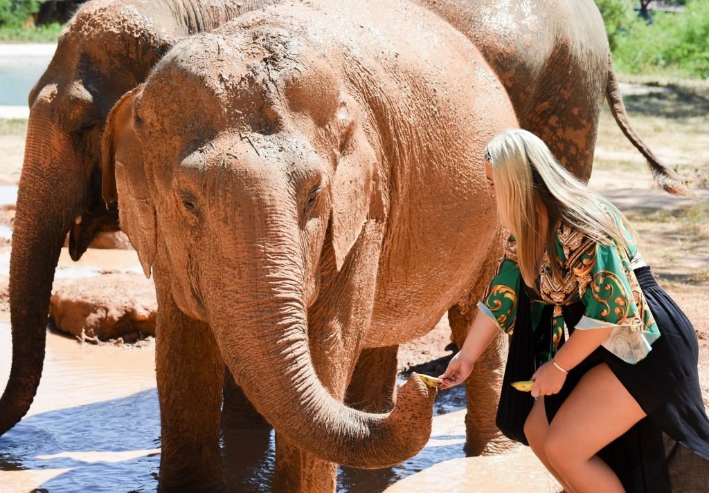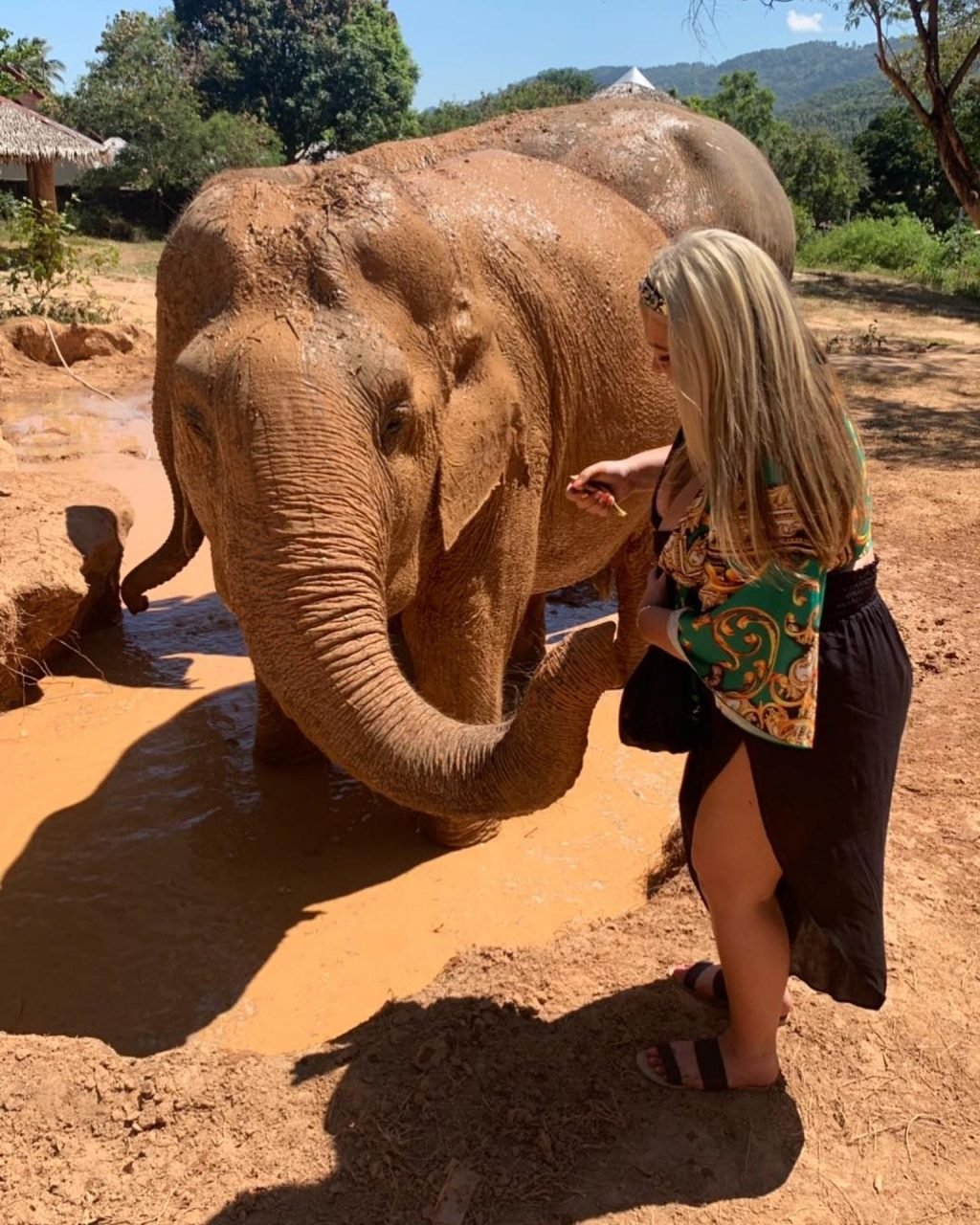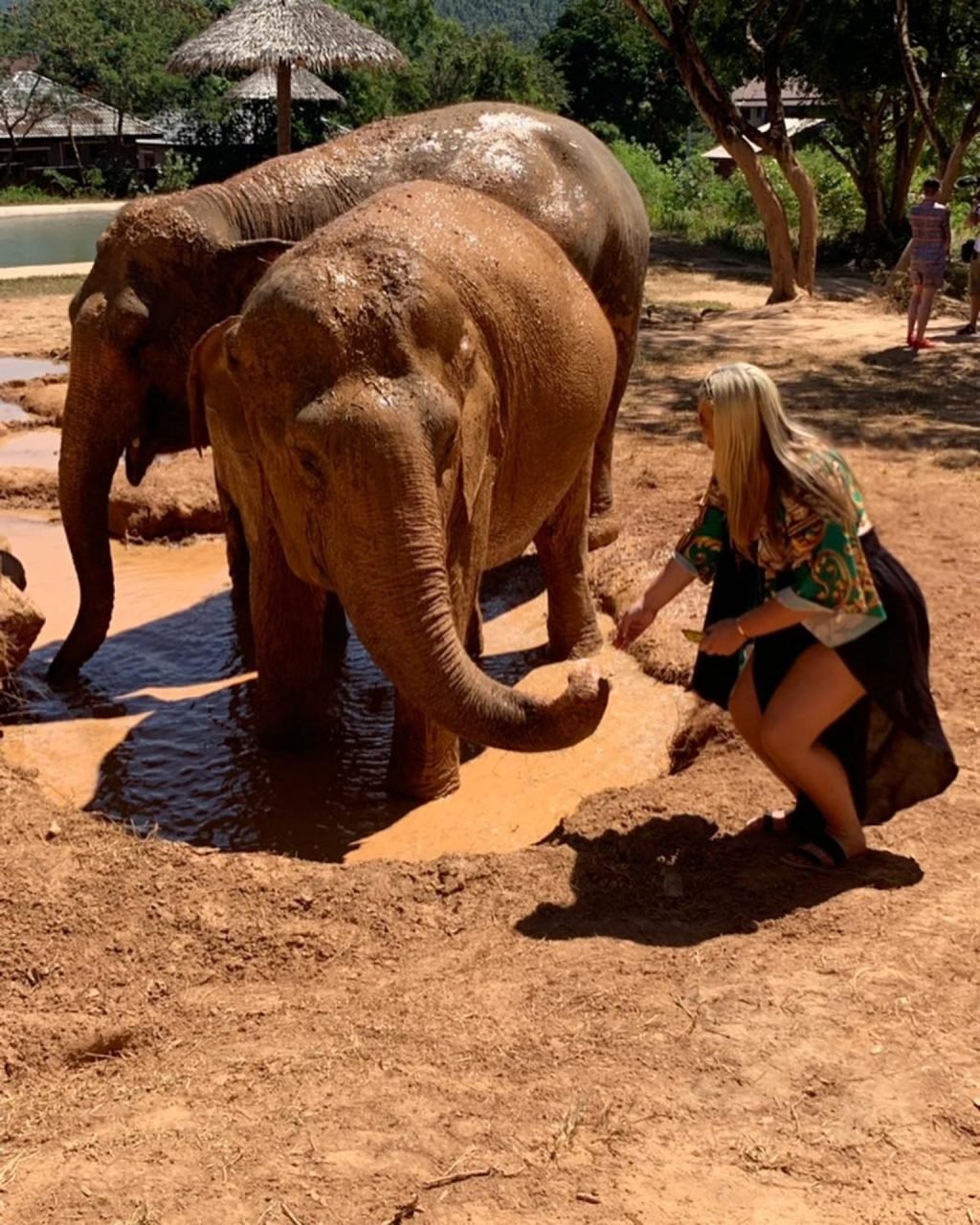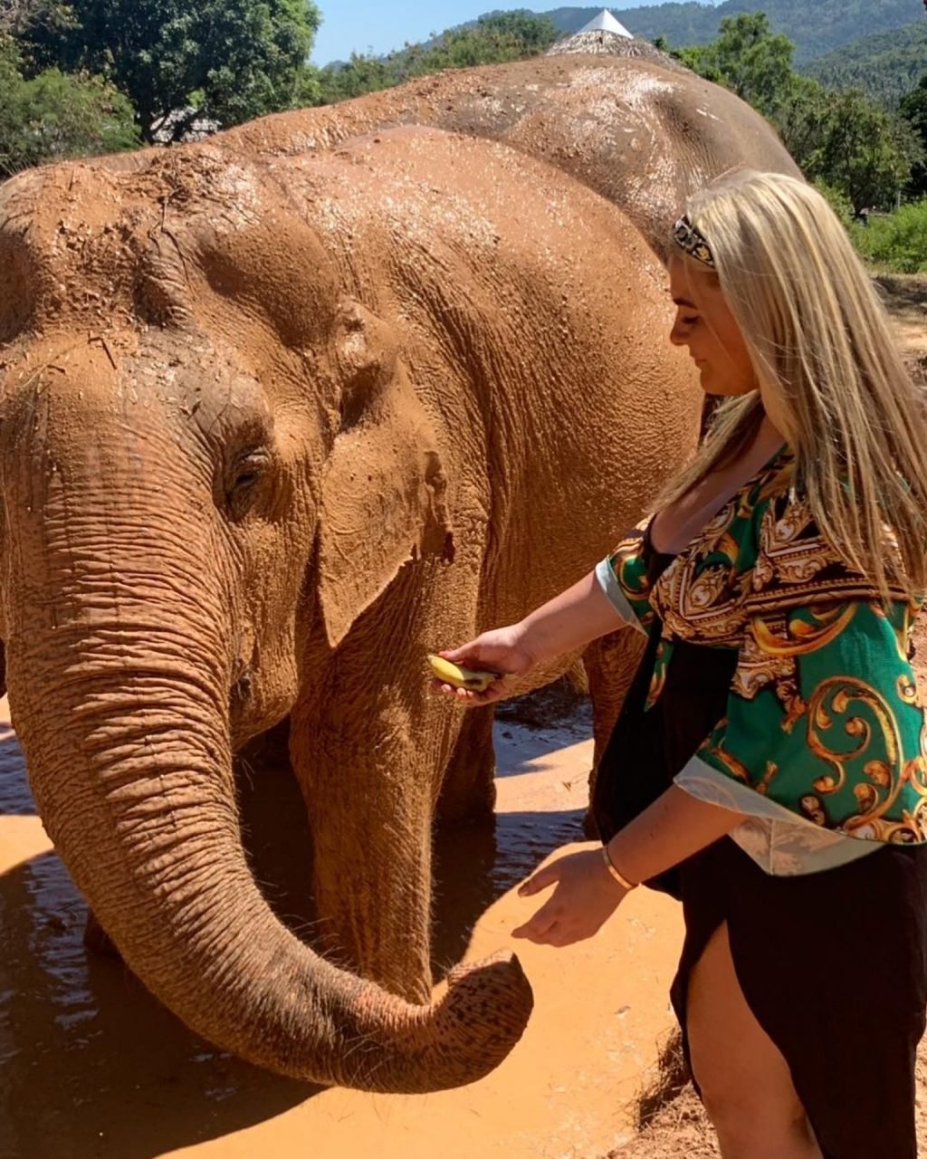 Звёзды TOWIE, Сафрон Лемпрьер, Пит Уикс, Хлоя Симс и Бобби Норрис посещают заповедник слонов Самуи во время пребывания в Таиланде, 03/09/2019.