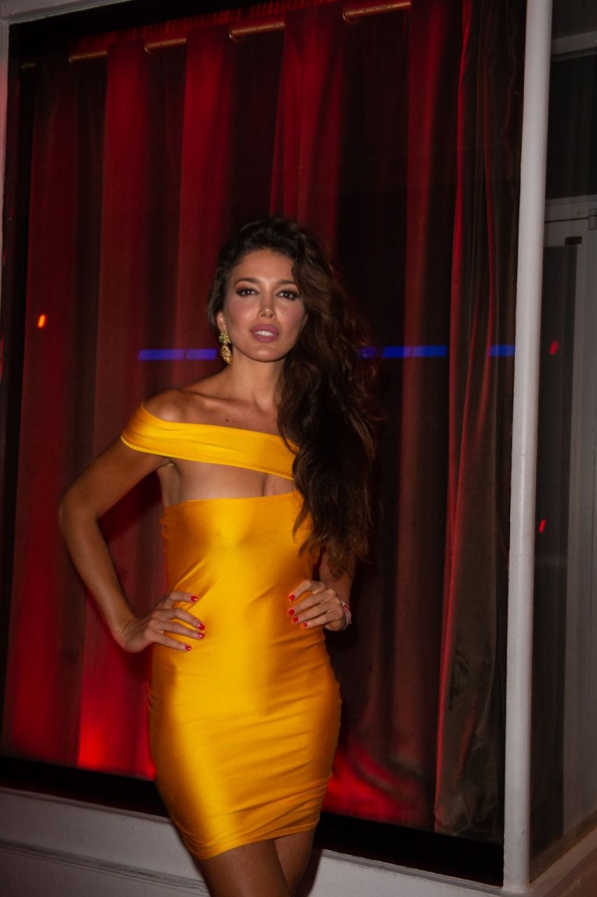 Мисс Вселенная 2012, Сахар Биниаз, в желтом платье на презентации купальников Sports Illustrated 2019 в Майами-Бич, 12.05.2019.