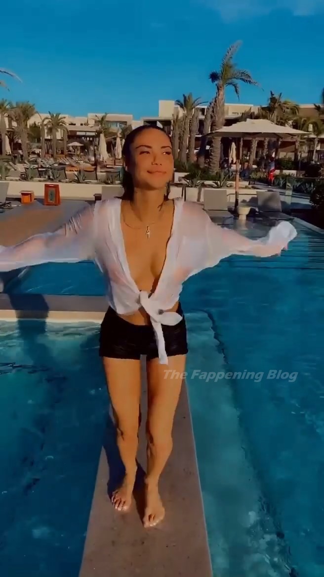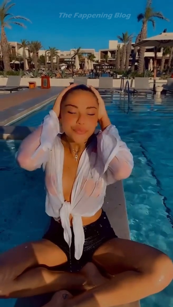 Модель Сахара Рэй наслаждается своим отдыхом в Тулуме, Мексика. Звезда Instagram демонстрирует своё обнажённое тело, позируя в бассейне полностью голой и в белой прозрачной мокрой футболке.