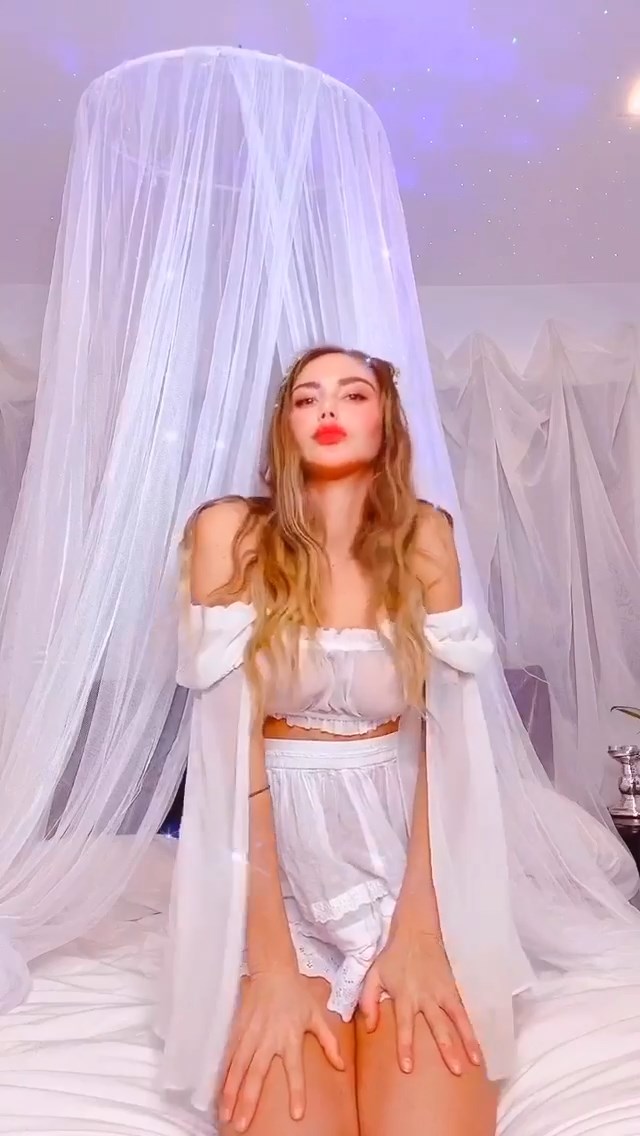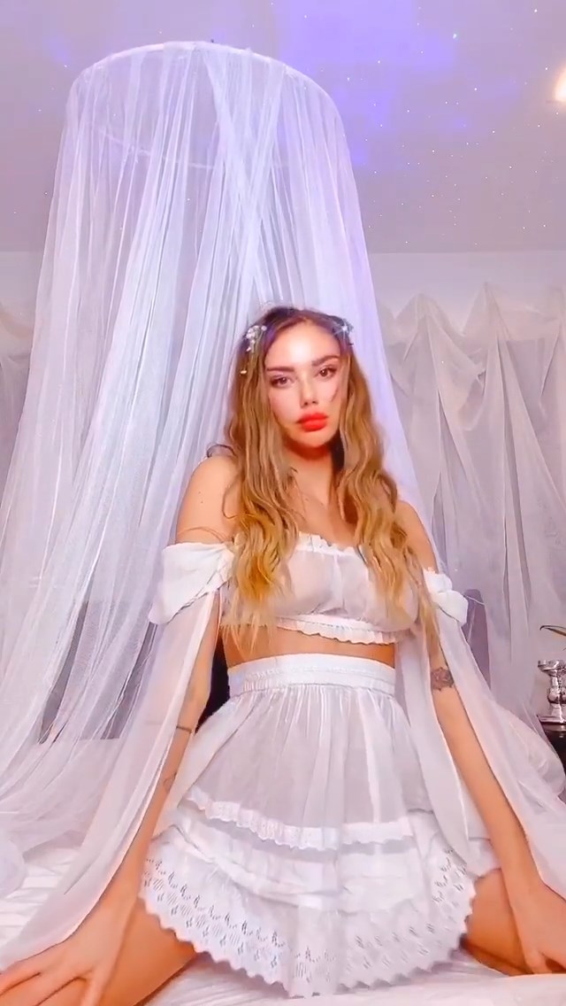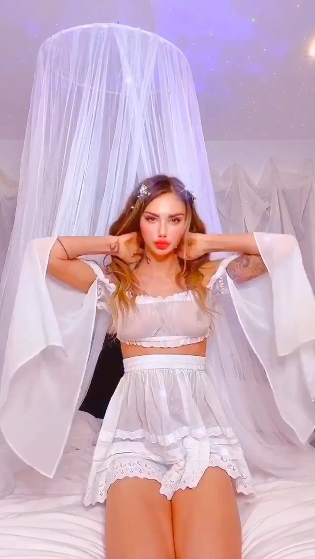 Модель Сахара Рэй демонстрирует свои слегка обнажённые сиськи, позируя в прозрачном белом платье на домашней вечеринке с подругами – Instagram, 13.09.2020.
