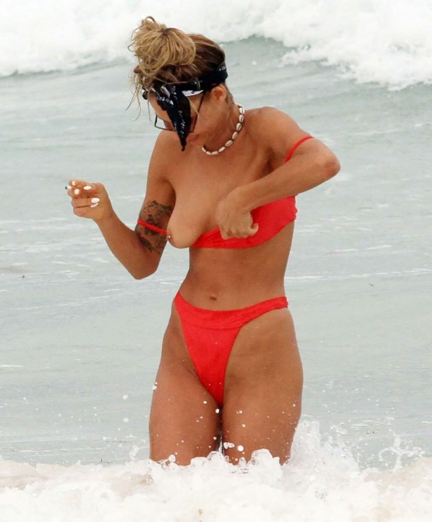 Sahara Ray столкнулась с проблемой в гардеробе на пляже в Канкуне, Мексика, 12.06.2017. Sahara Ray — австралийская модель, дизайнер купальников. Возраст – 24 года.