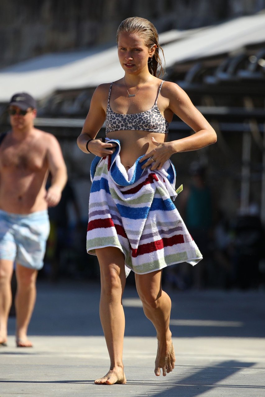 Американская модель Сейлор Бринкли Кук (20) выходит на пляж в леопардовом бикини – Сидней, Австралия, 14.01.2019.