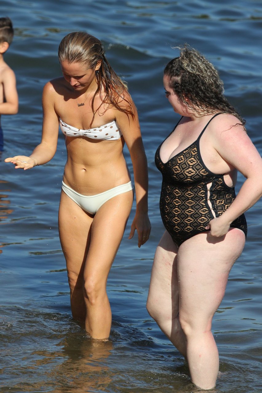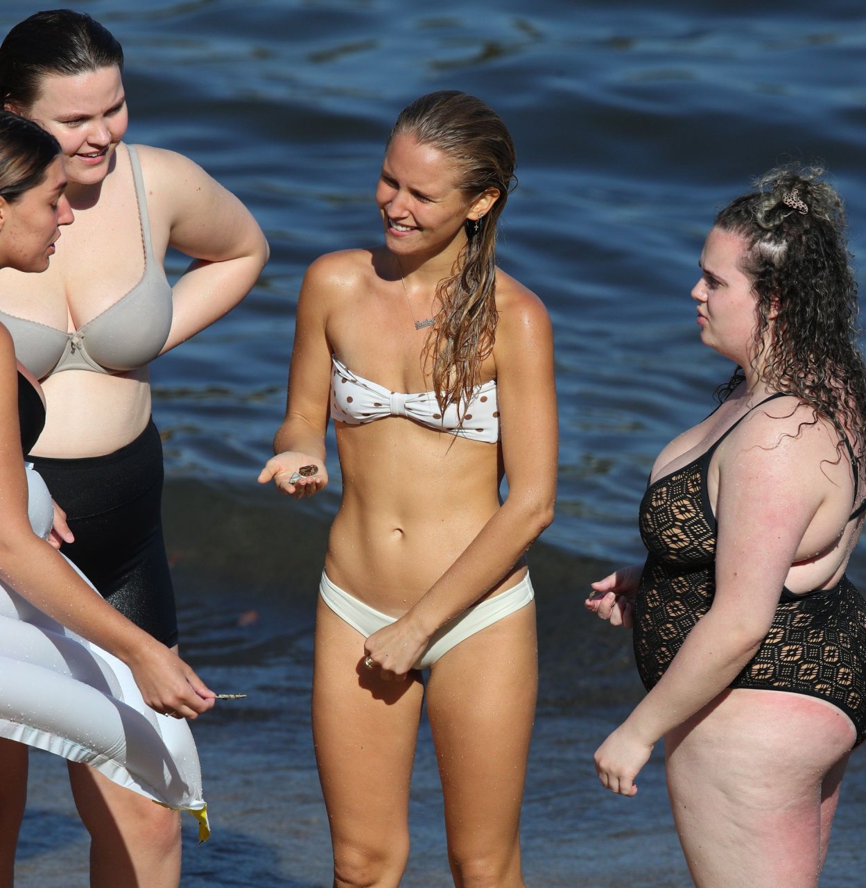 Модель без титулов Сейлор Бринкли Кук была сфотографирована в белом бикини в Сиднее, когда искала ракушки, 17.01.2019.