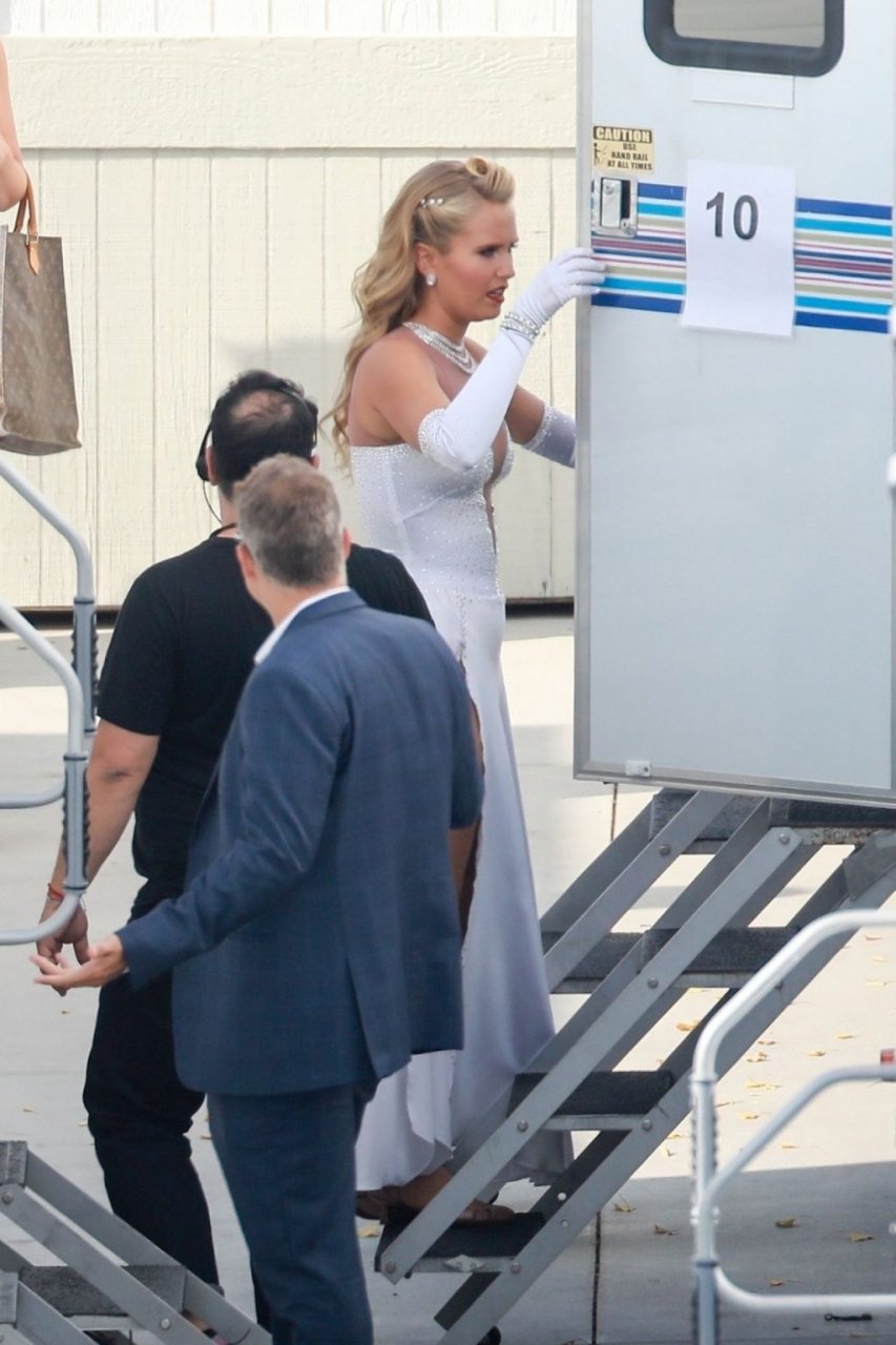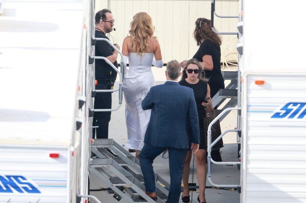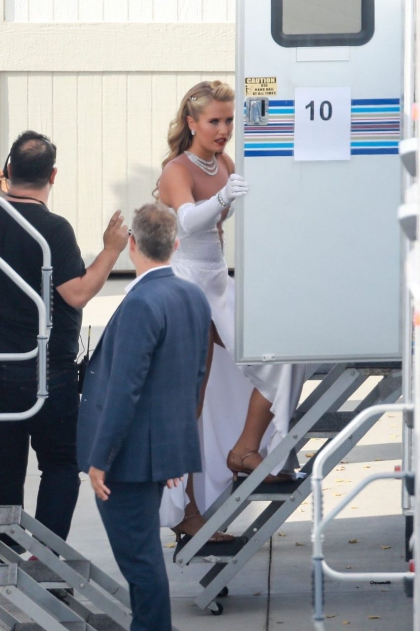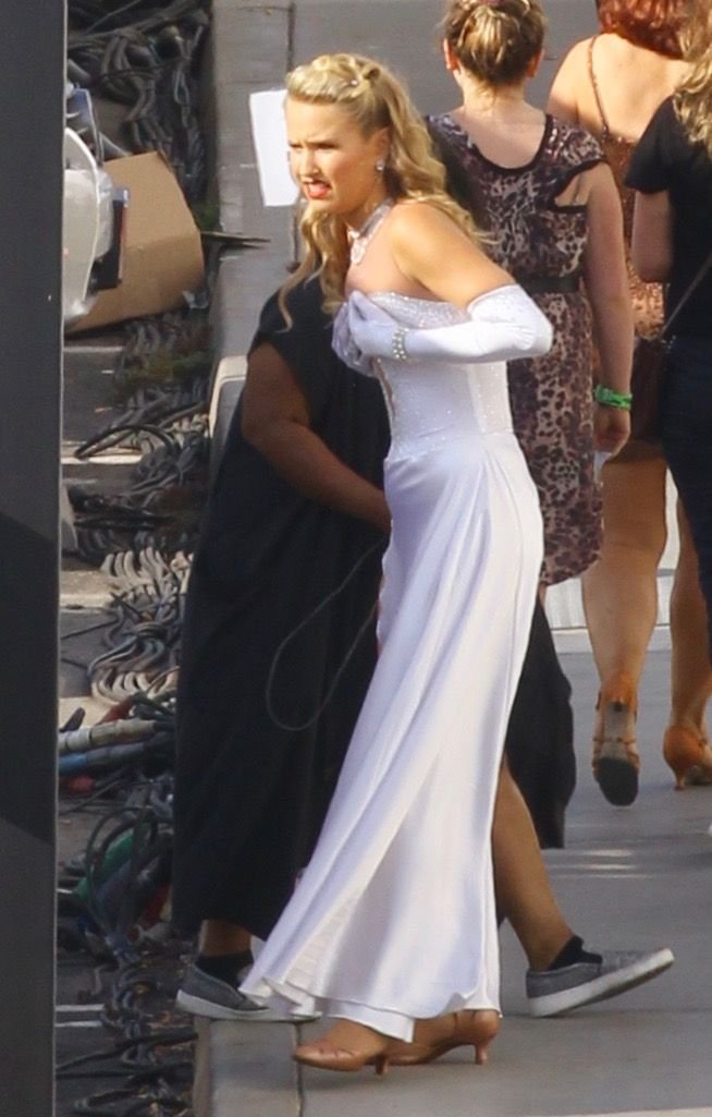 Актерский состав шоу “Танцы со звездами” готовится к своему первому живому эфиру в Лос-Анджелесе, 16.09.2019. Сейлор Бринкли Кук была сфотографирована в белом платье с глубоким декольте.