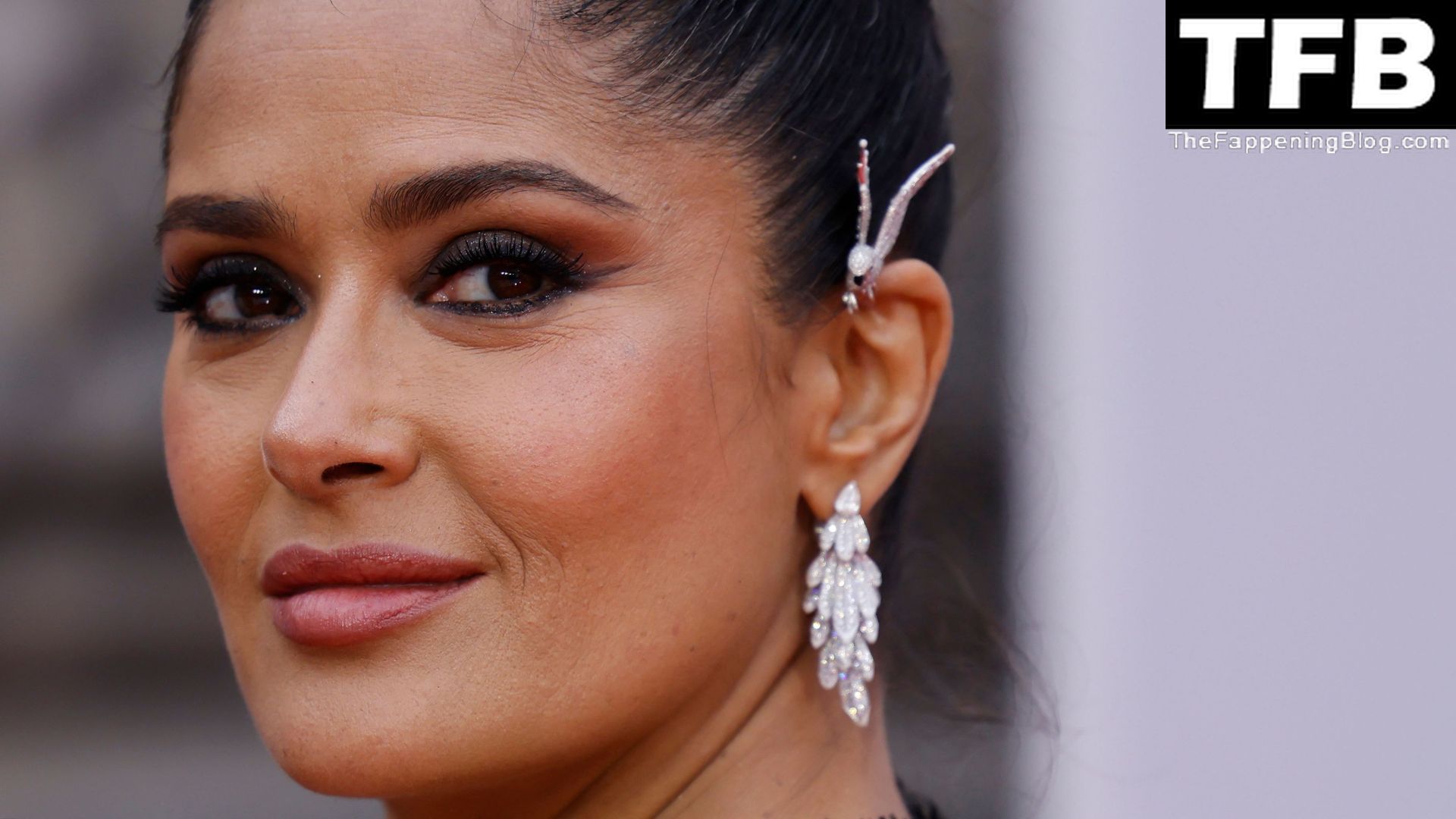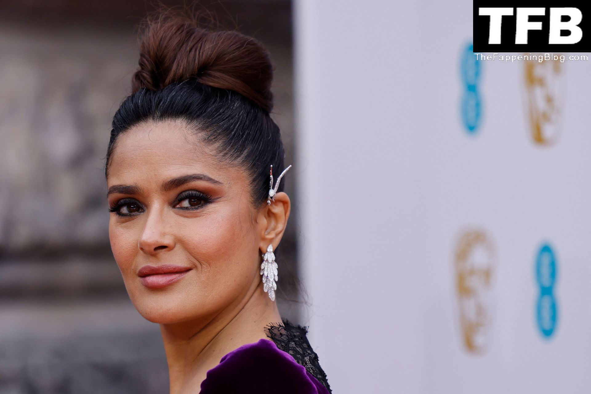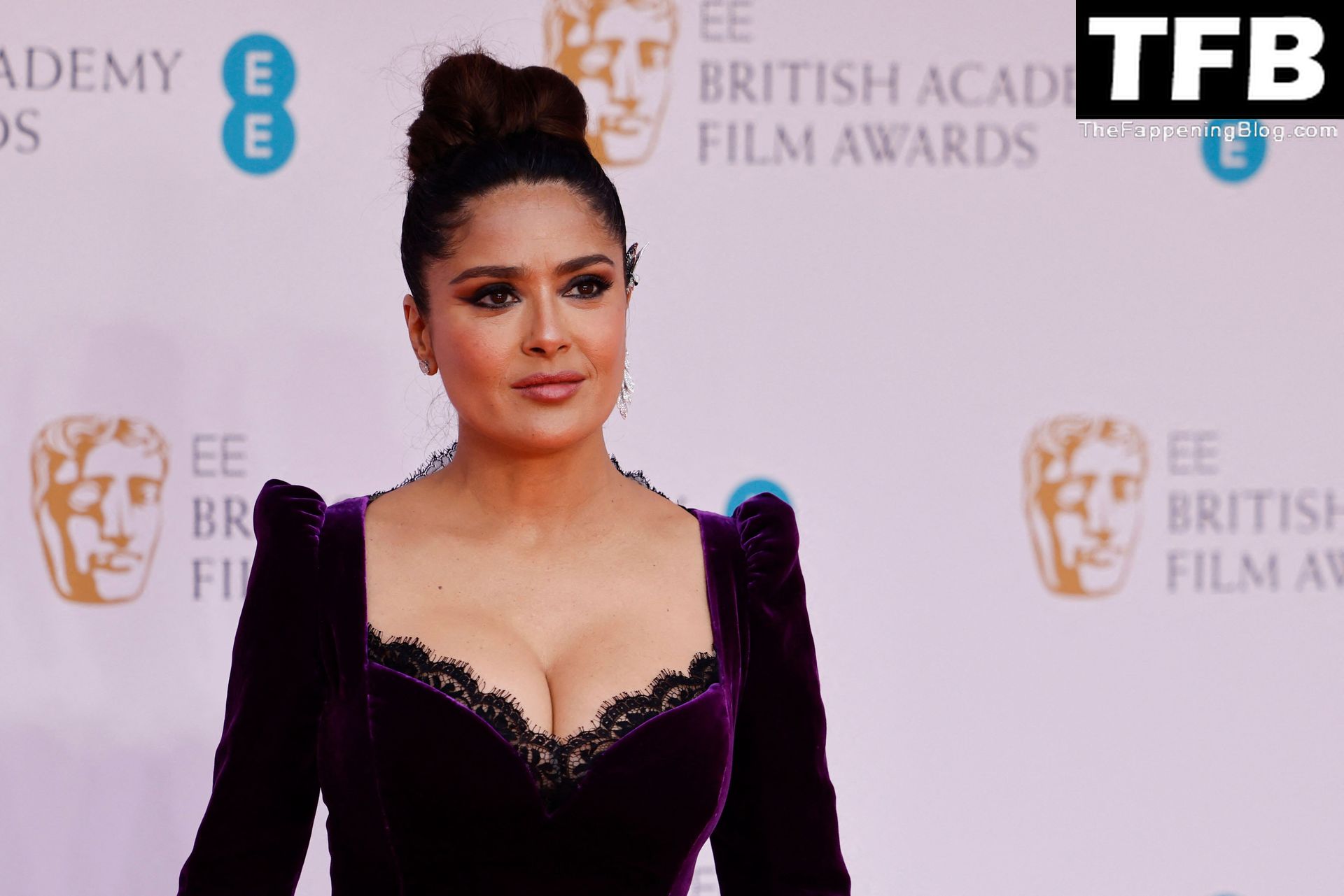 Сальма Хайек демонстрирует свои сексуальные большие груди на 75-й церемонии British Academy Film Awards EE в Лондоне (12 фото)