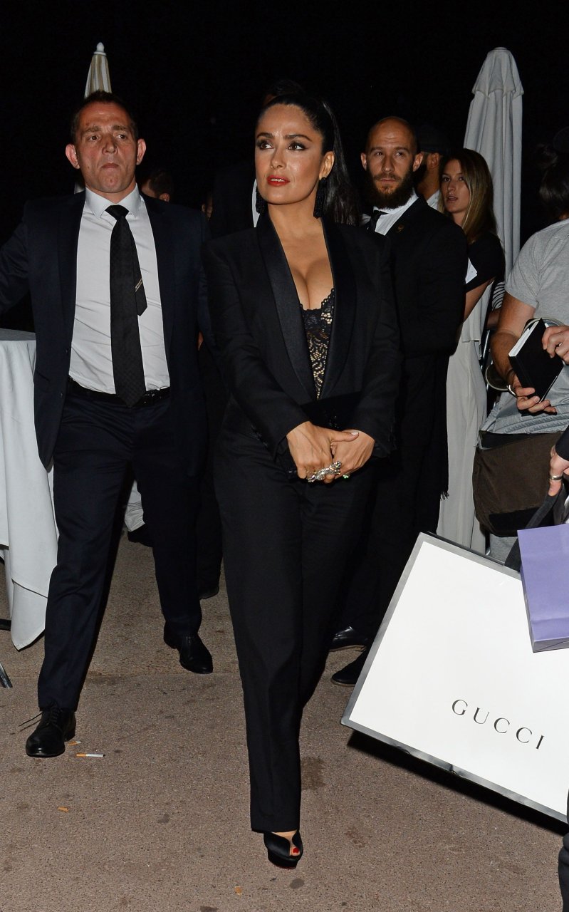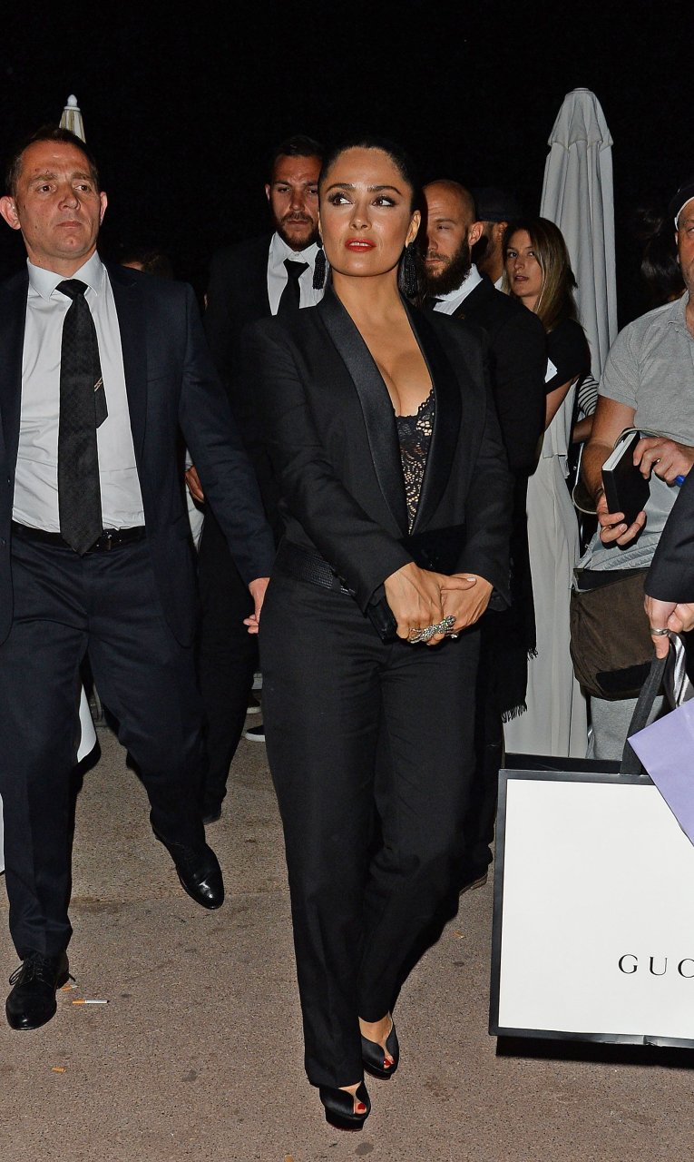 Сальма Хайек присутствует на фотоколле Chopard Trophy и на вечеринке на яхте Пола Аллена в Каннах, 22.05.2017. Сальма Хайек Пино — мексикано-американская актриса (Телохранитель киллера, 2017), режиссёр и продюсер. Возраст: 50.