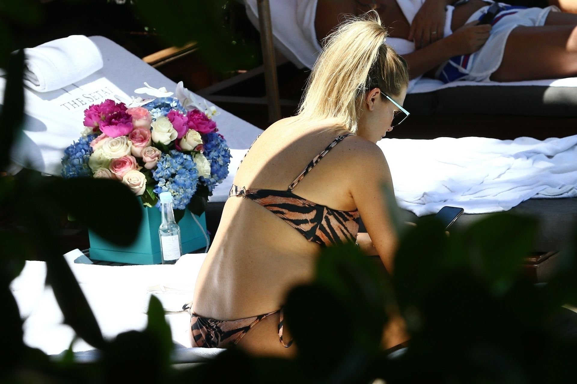 Sports Illustrated модель и звезда The Fappening, Саманта Хупс демонстрирует впечатляющий животик, наслаждаясь солнцем Майами вместе со своим женихом Сальваторе Палелла, 12.05.2019.