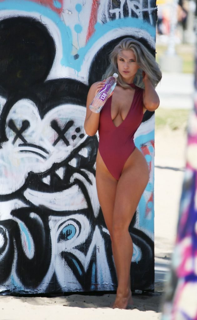 Саманта Кнезел выходит на пляж в сексуальном бордовом купальнике во время фотосессии для 138 Water в Венецианском пляже, 11.04.2018. Саманта Кнезел — американская модель из Флориды.