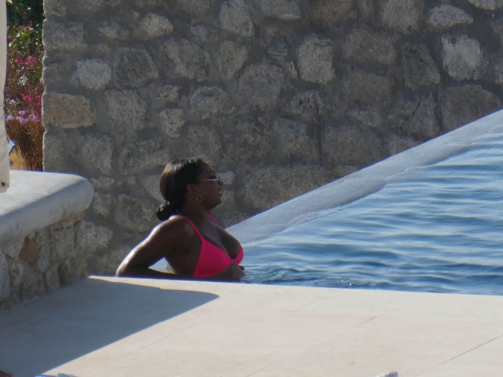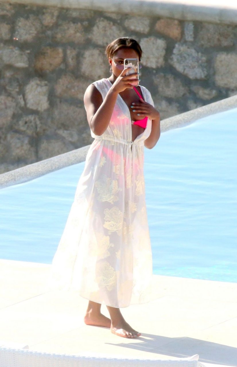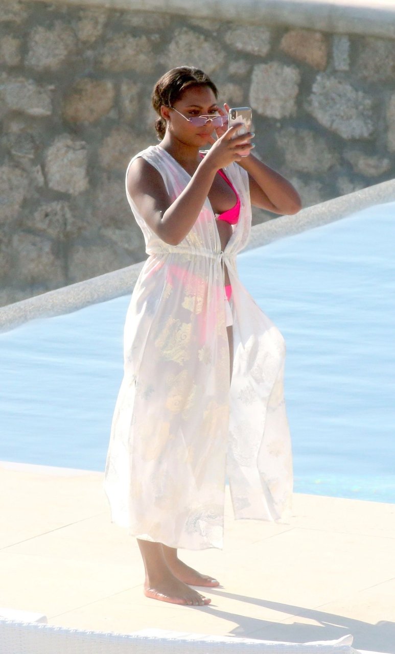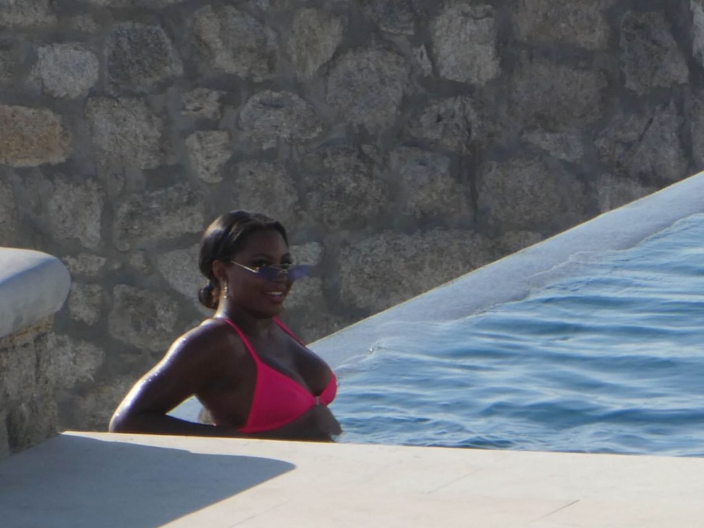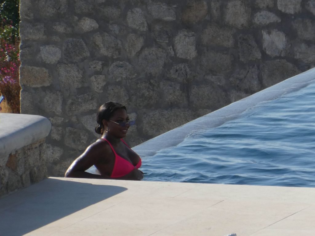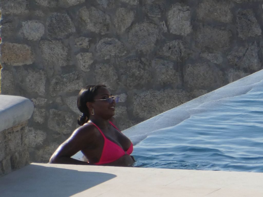 Телевизионная личность Самира Майти была замечена в розовом бикини, отдыхая у бассейна во время отпуска на Миконосе, 08.06.2019.