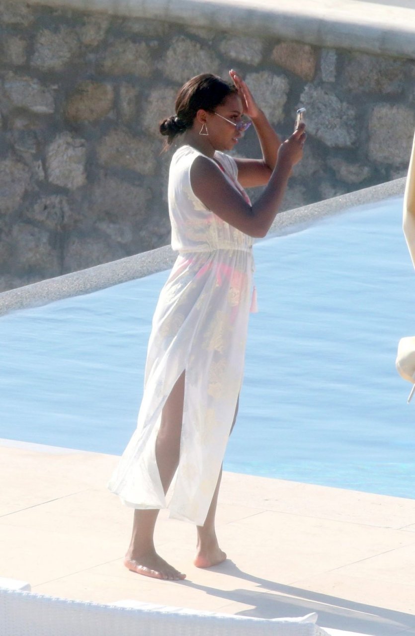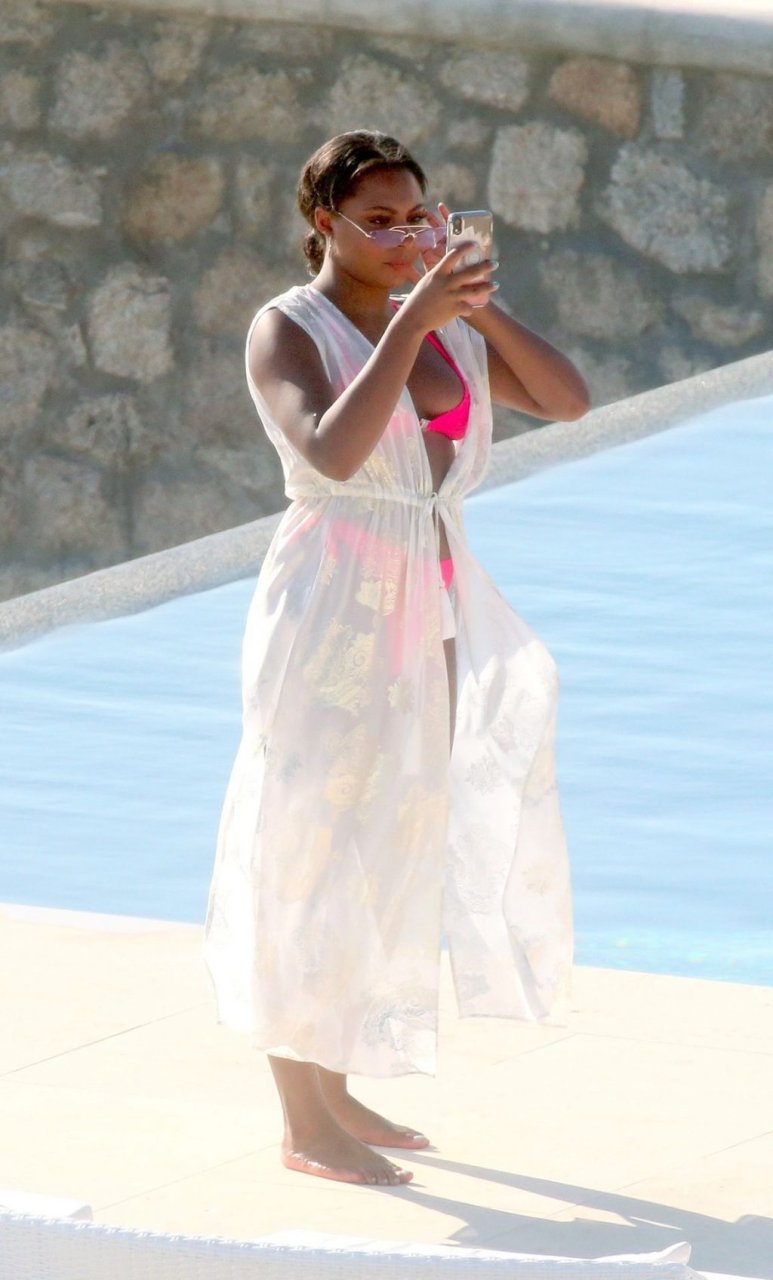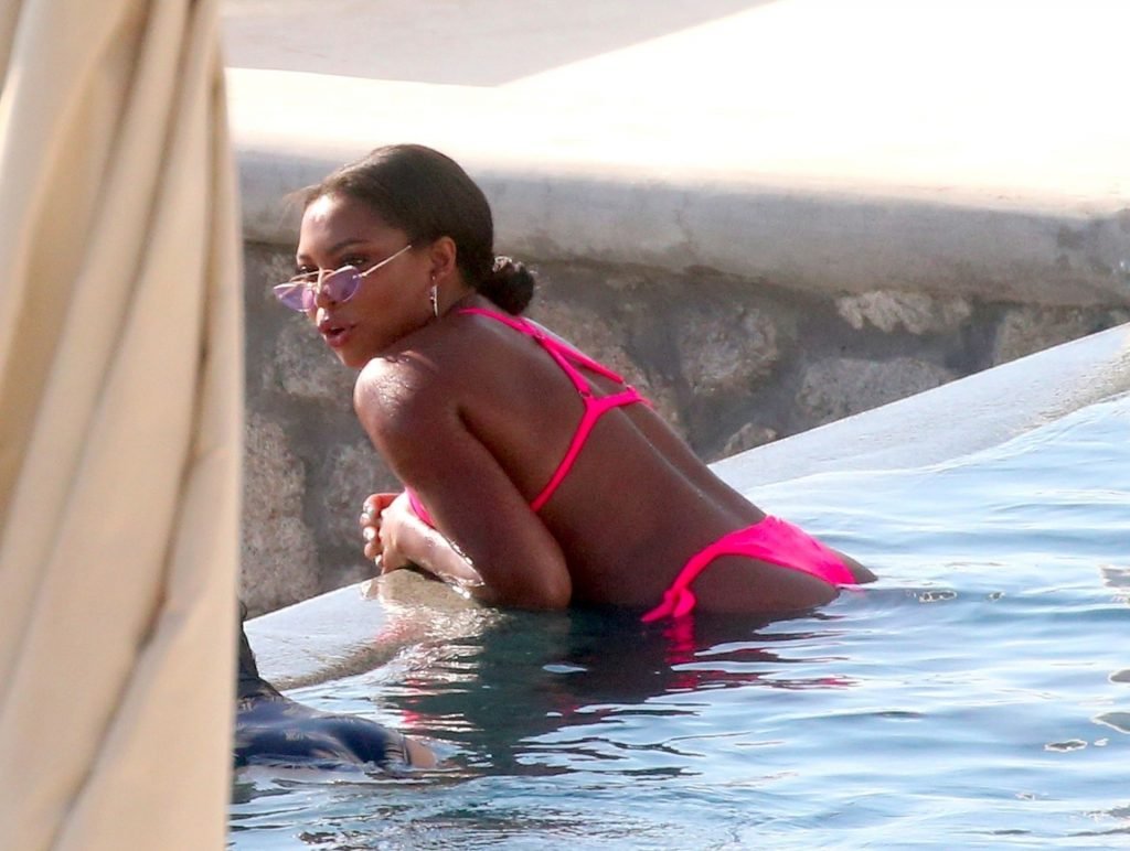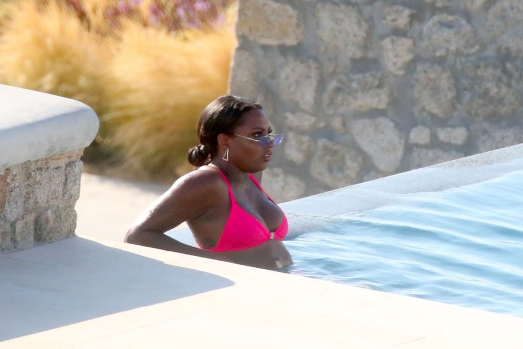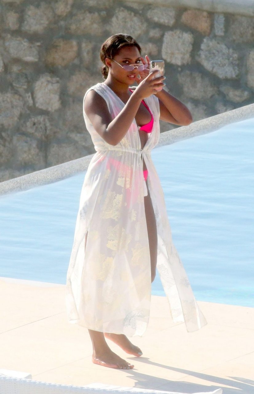 Телевизионная личность Самира Майти была замечена в розовом бикини, отдыхая у бассейна во время отпуска на Миконосе, 08.06.2019.