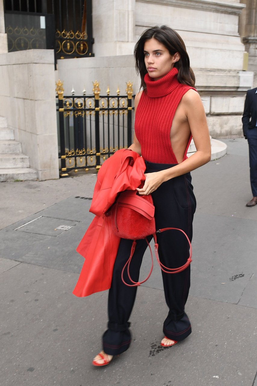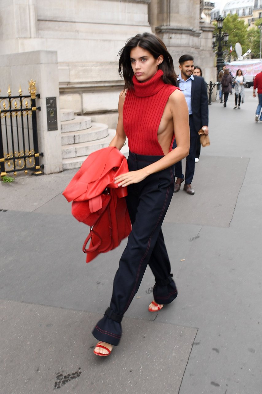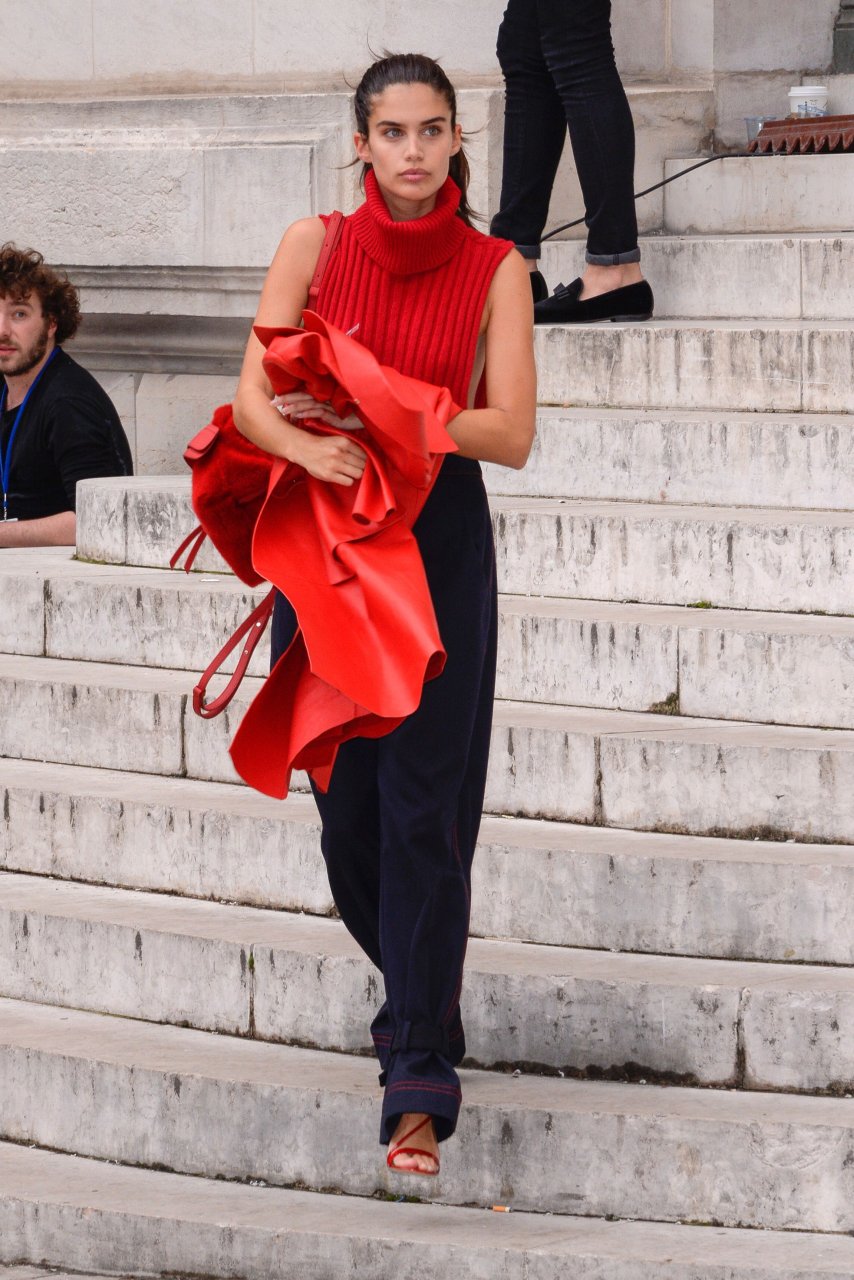 Модель Сара Сампайо прибывает на показ Balmain весна/лето 2018 во время Недели моды в Париже, Франция, 28.09.2017.