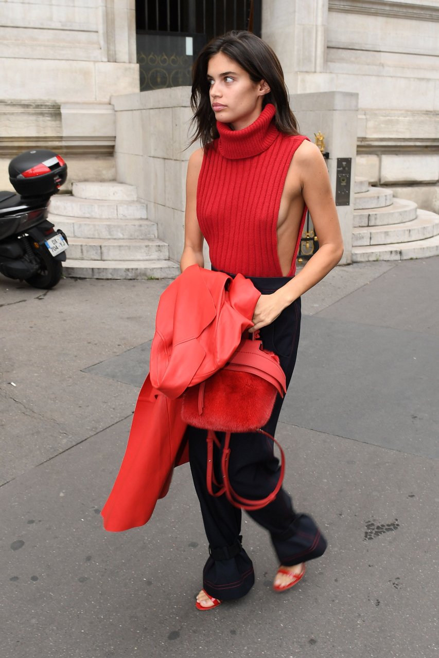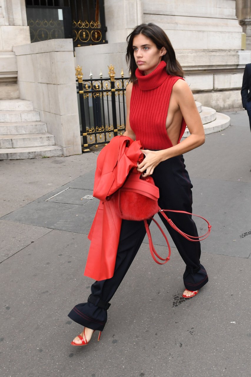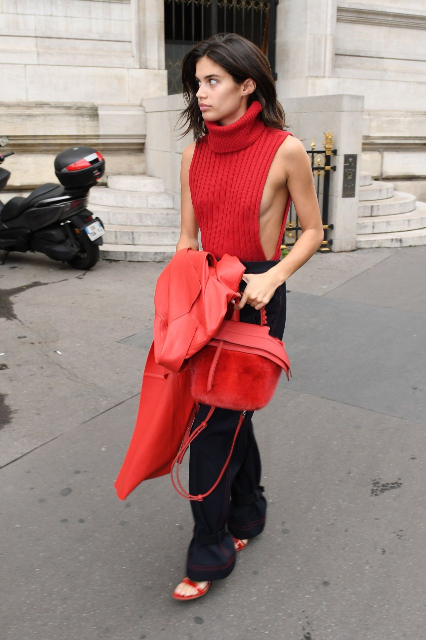 Модель Сара Сампайо прибывает на показ Balmain весна/лето 2018 во время Недели моды в Париже, Франция, 28.09.2017.
