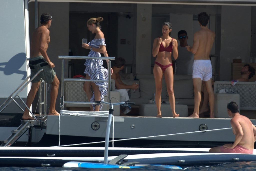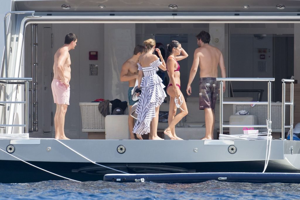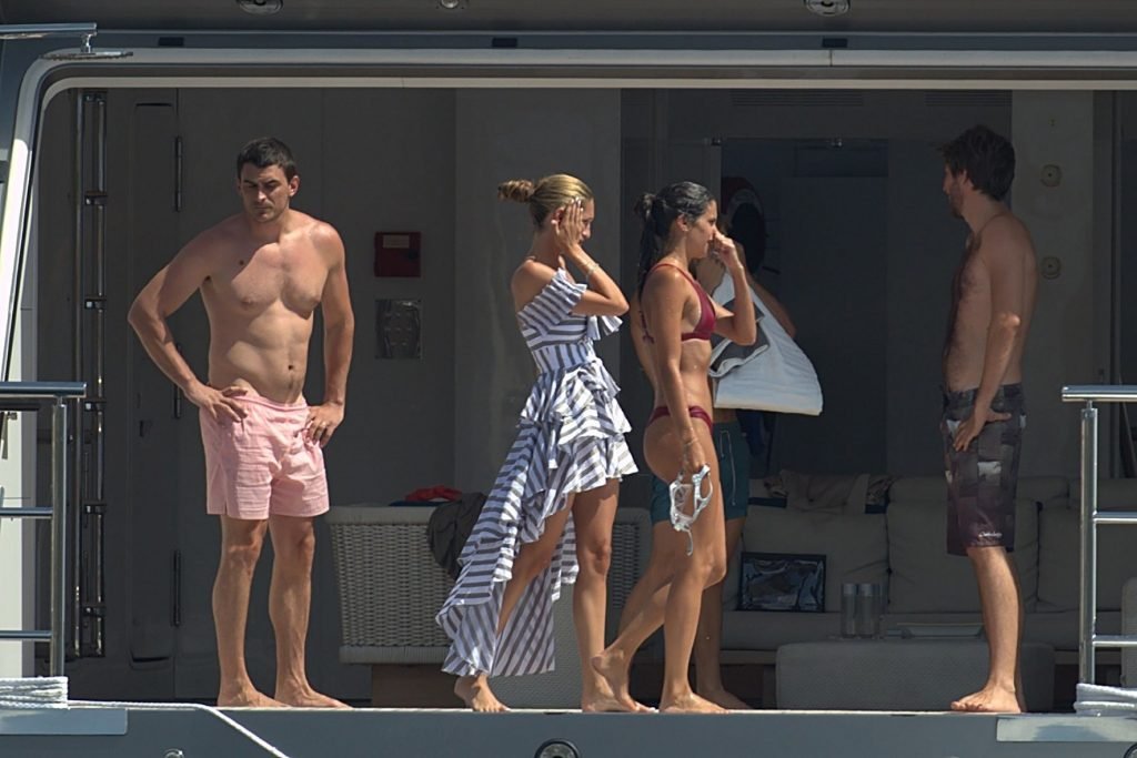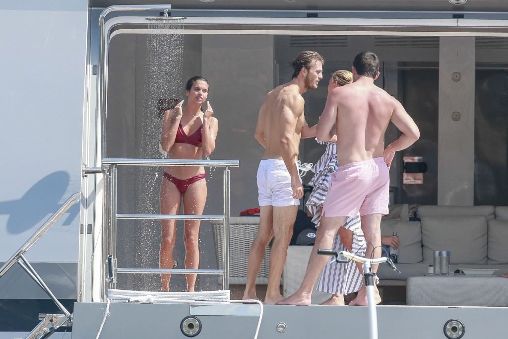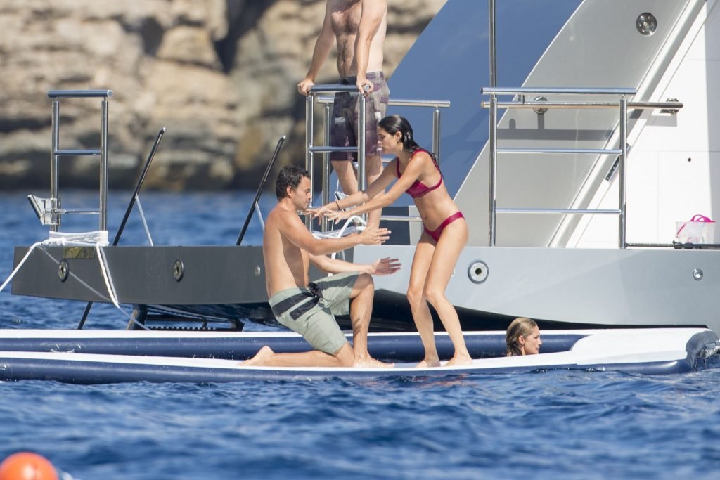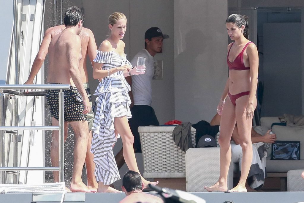 Сара Сампайо наслаждается купанием на борту яхты с друзьями в Ибице, 08/06/2017. Сара Сампайо — португальская супермодель и актриса (Биллионы). Возраст – 25.