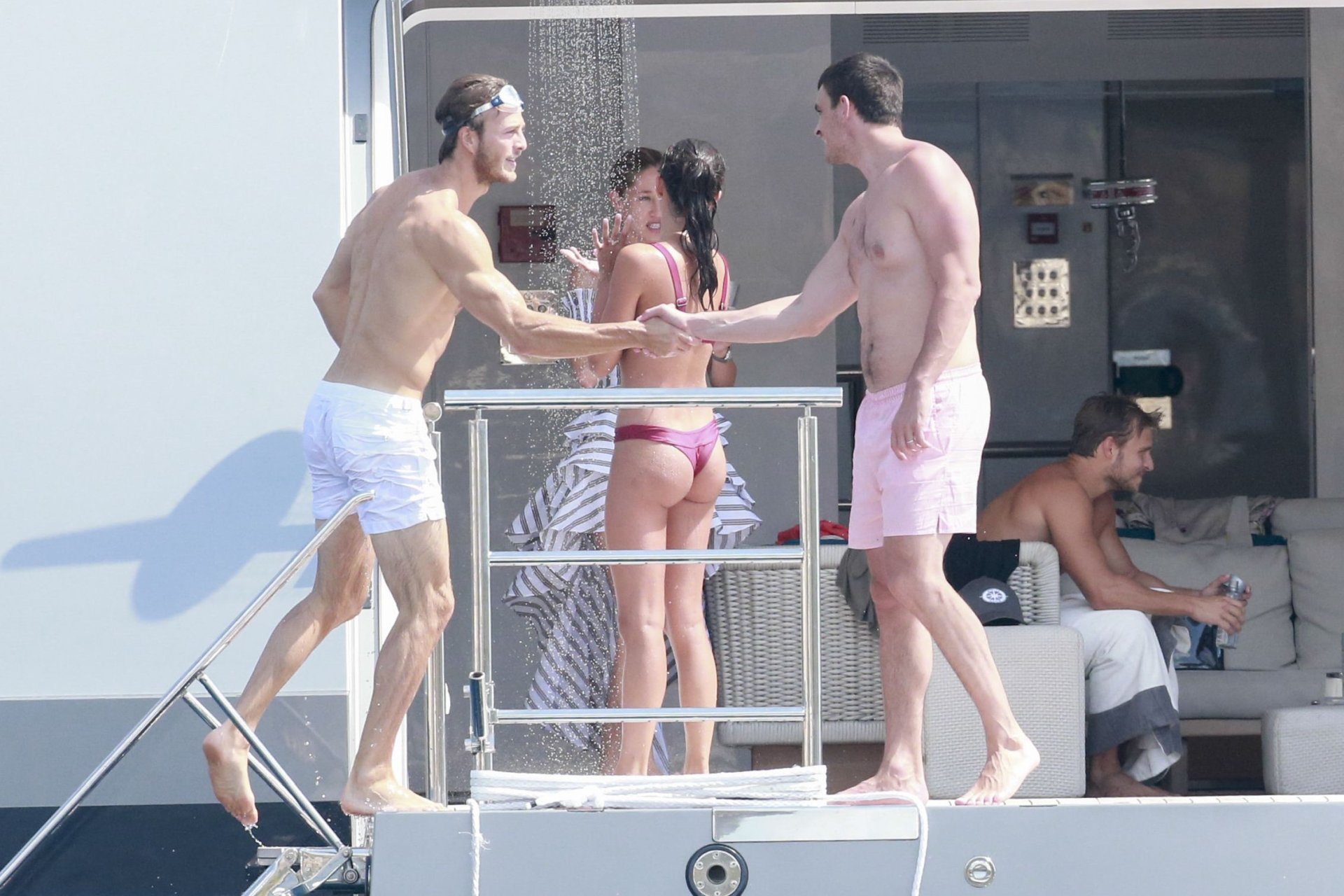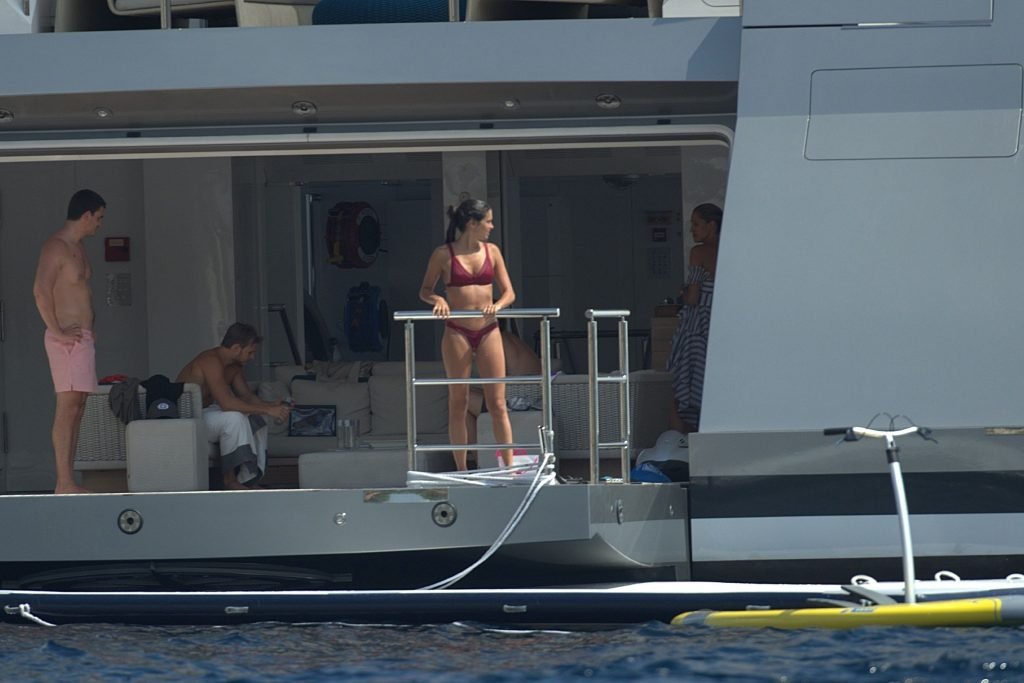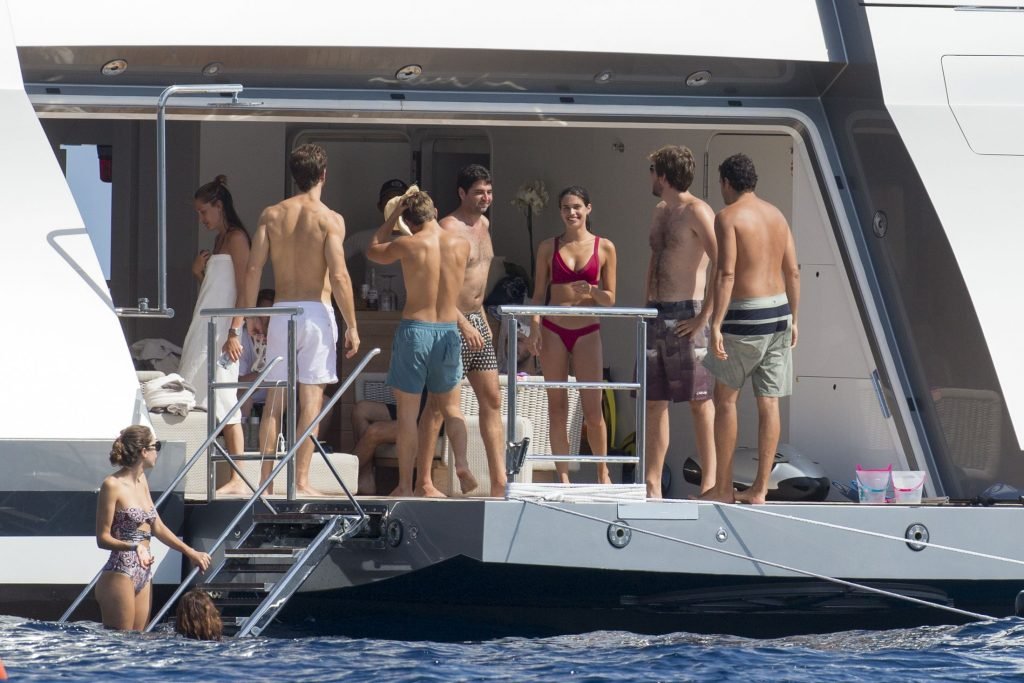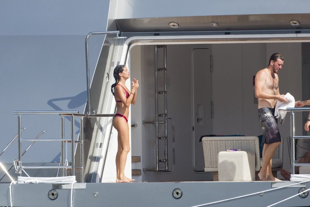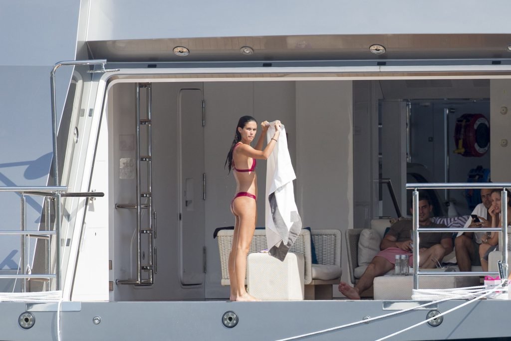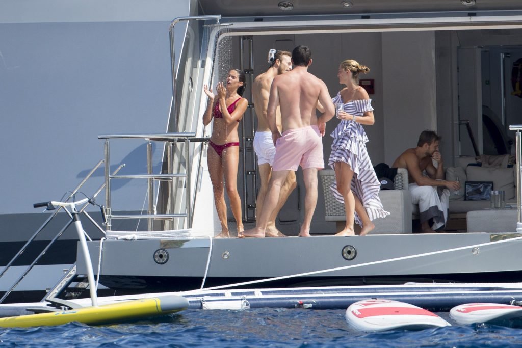 Сара Сампайо наслаждается купанием на борту яхты с друзьями в Ибице, 08/06/2017. Сара Сампайо — португальская супермодель и актриса (Биллионы). Возраст – 25.