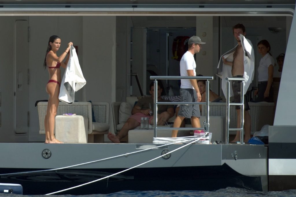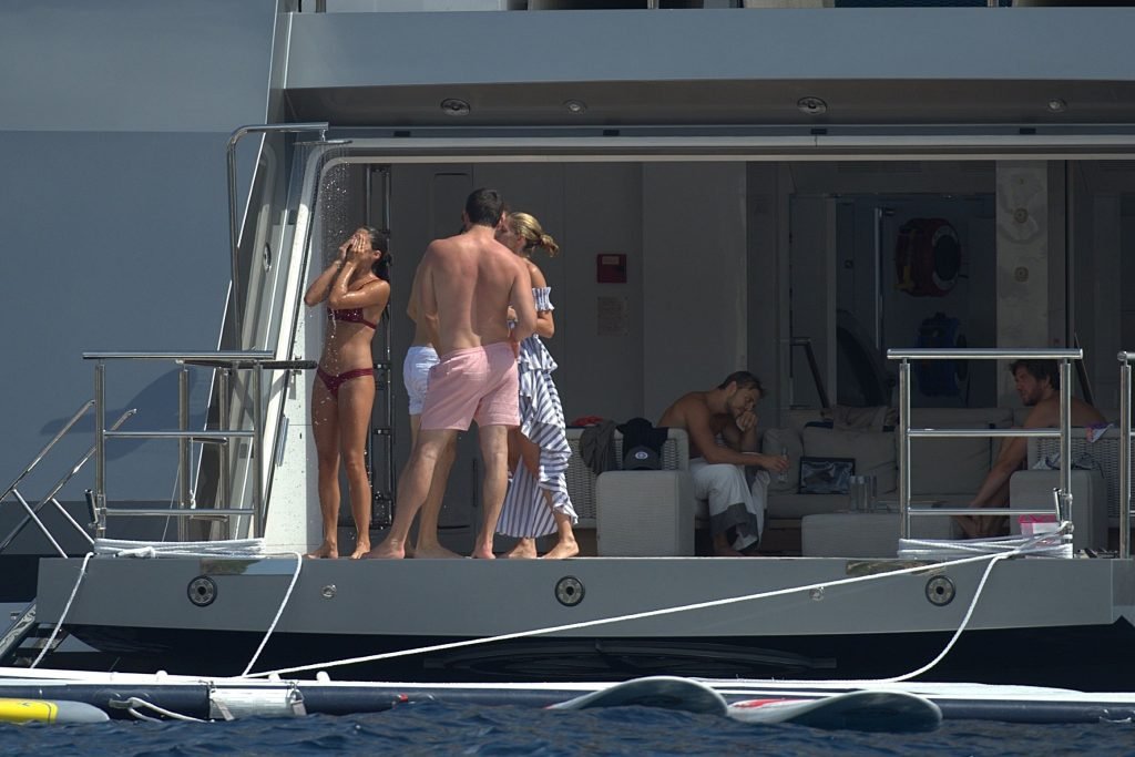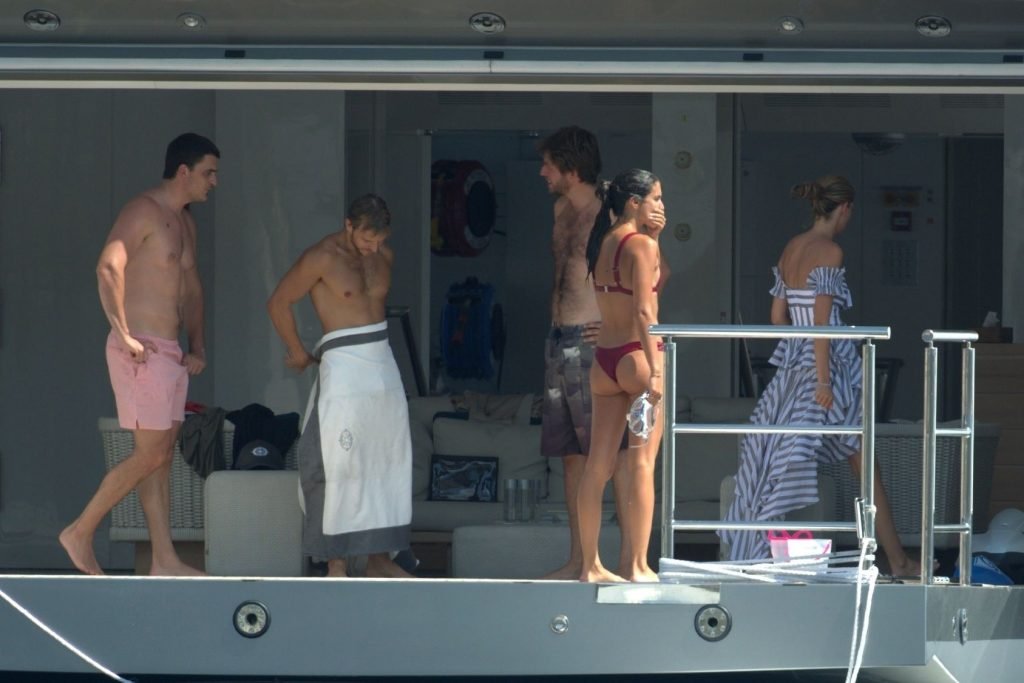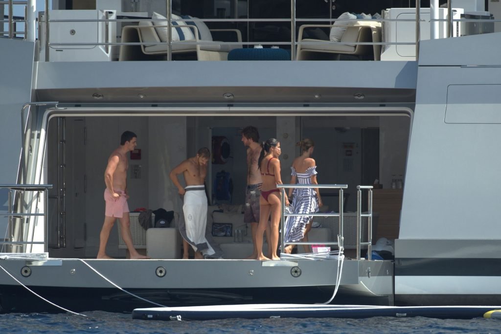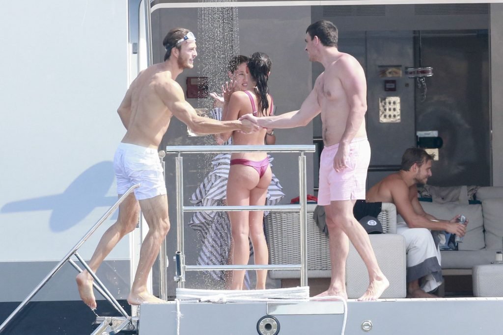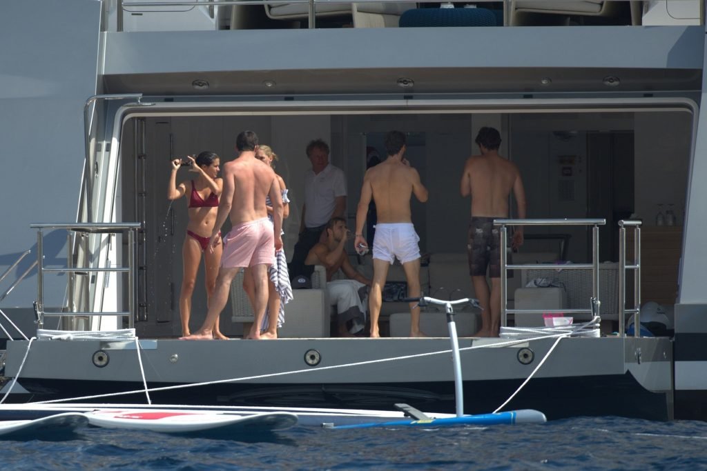 Сара Сампайо наслаждается купанием на борту яхты с друзьями в Ибице, 08/06/2017. Сара Сампайо — португальская супермодель и актриса (Биллионы). Возраст – 25.